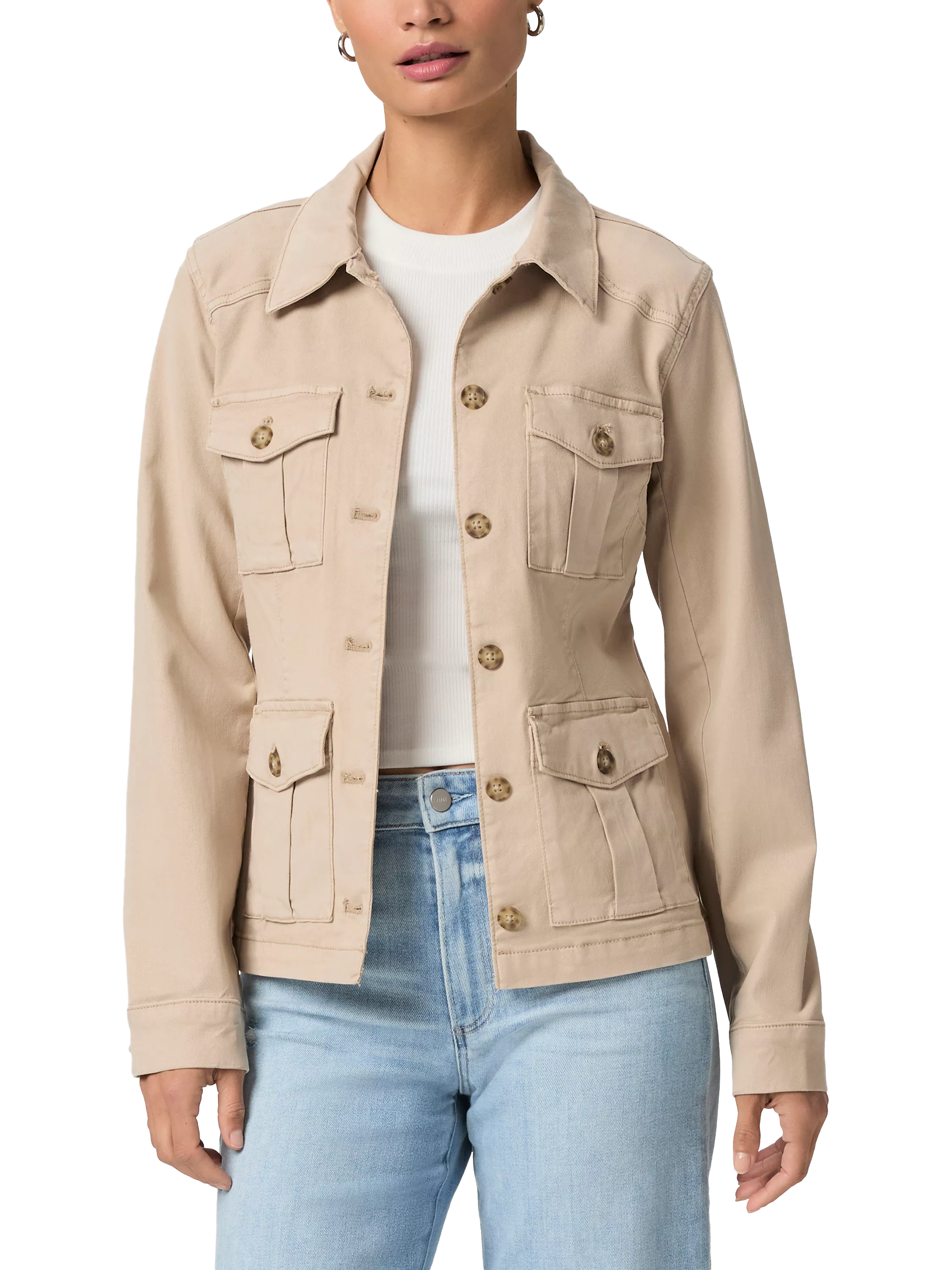 Crafted from soft stretch twill fabric, Stacey is a new everyday jacket you'll be wearing on repeat. In a vintage-inspired soft sandy beige, this button-up jacket is designed with 4 front pockets with a rounded yoke and a full length.