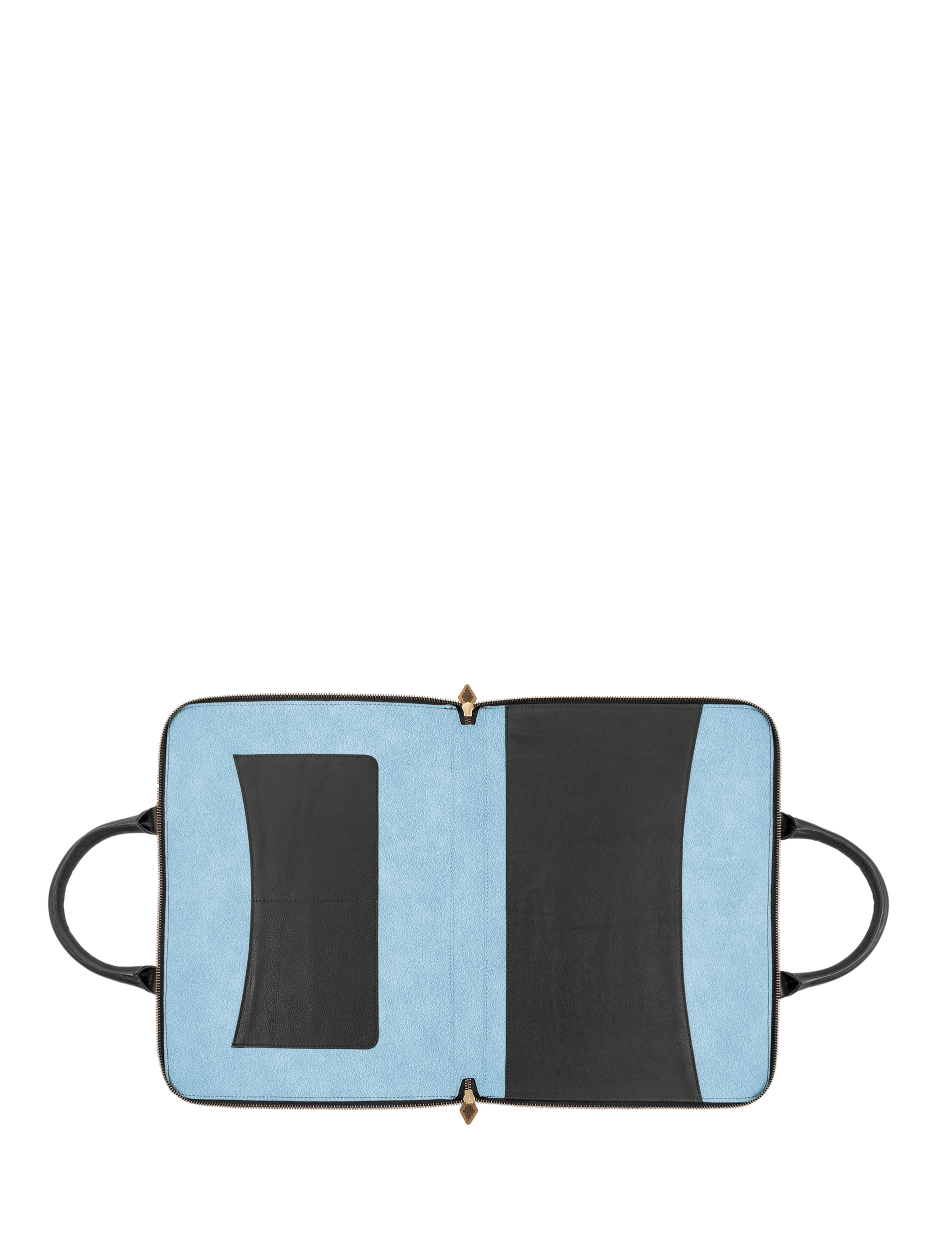 Designed for the professional, the Clara briefcase is an ideal companion for those constantly on the move - heading to the office or attending crucial meetings, the Clara offers a sleek and practical solution to carry all essentials. Meticulously handcrafted, the Clara is made from top-quality Argentine leather that has been vegetable tanned. Its interior features a soft and protective light blue suede lining, ensuring your 16" laptop, tablet, notebook, and important A4 documents are safeguarded.