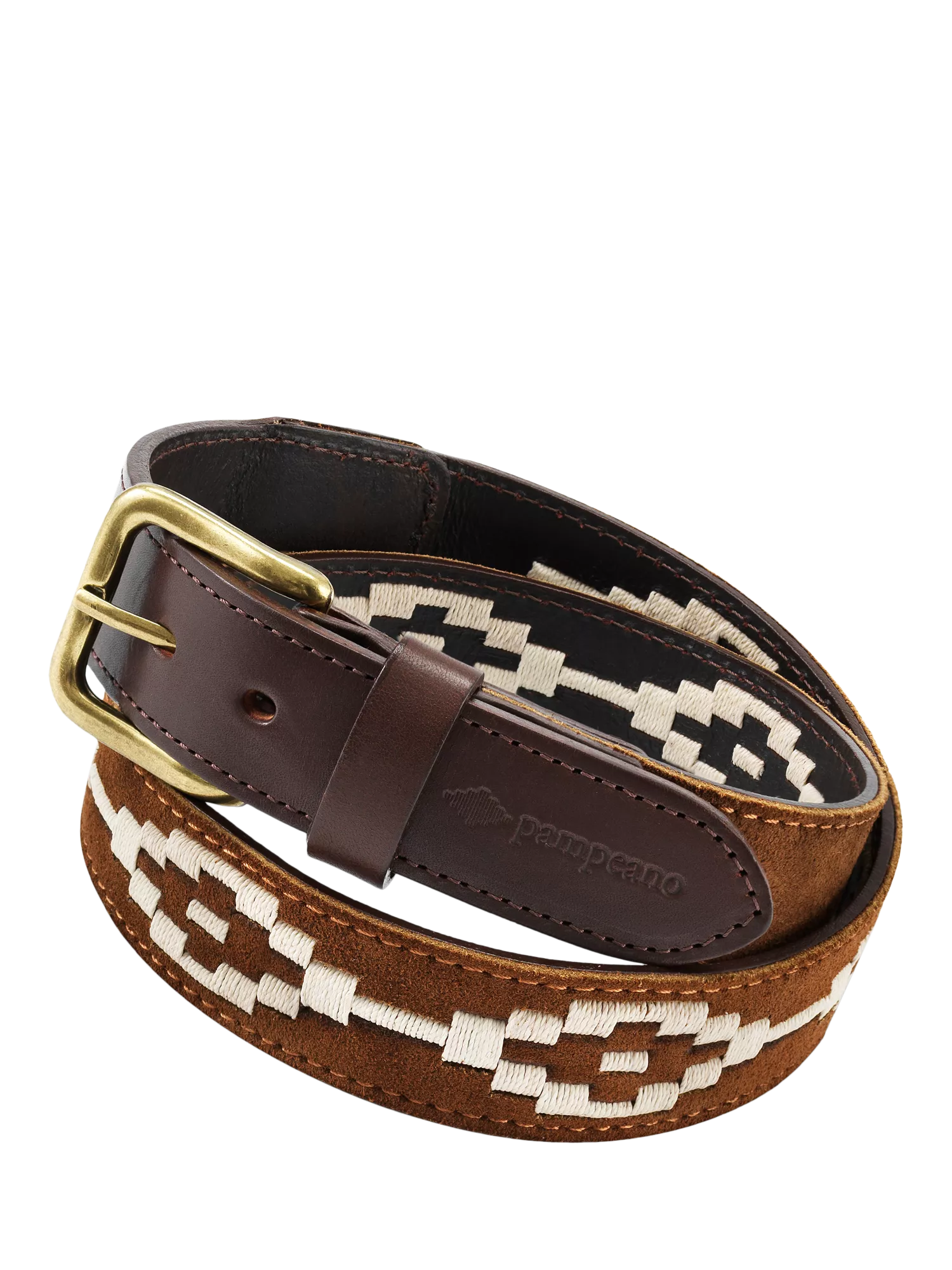 Channel authentic, sophisticated, South American style with the premium leather and suede Confianza Pampeano belt. The classic traditional colour combination of the sumptuously soft suede and the intricately hand stitched thread is a timeless look which will never go out of style. This premium accessory is made from only the best Argentine cow leather, which has undergone a traditional vegetable tanning process to ensure its butter soft quality, along with authentic South American suede, and sturdy wax-dipped saddlery thread. This gloriously soft and comfortable Pampeano belt is adorned with an intricate design inspired by the peaks and valleys of the Andes Mountain range, which has inspired generations of local artisans in Argentina. Confianza is a special Latin American form of mutual trust.