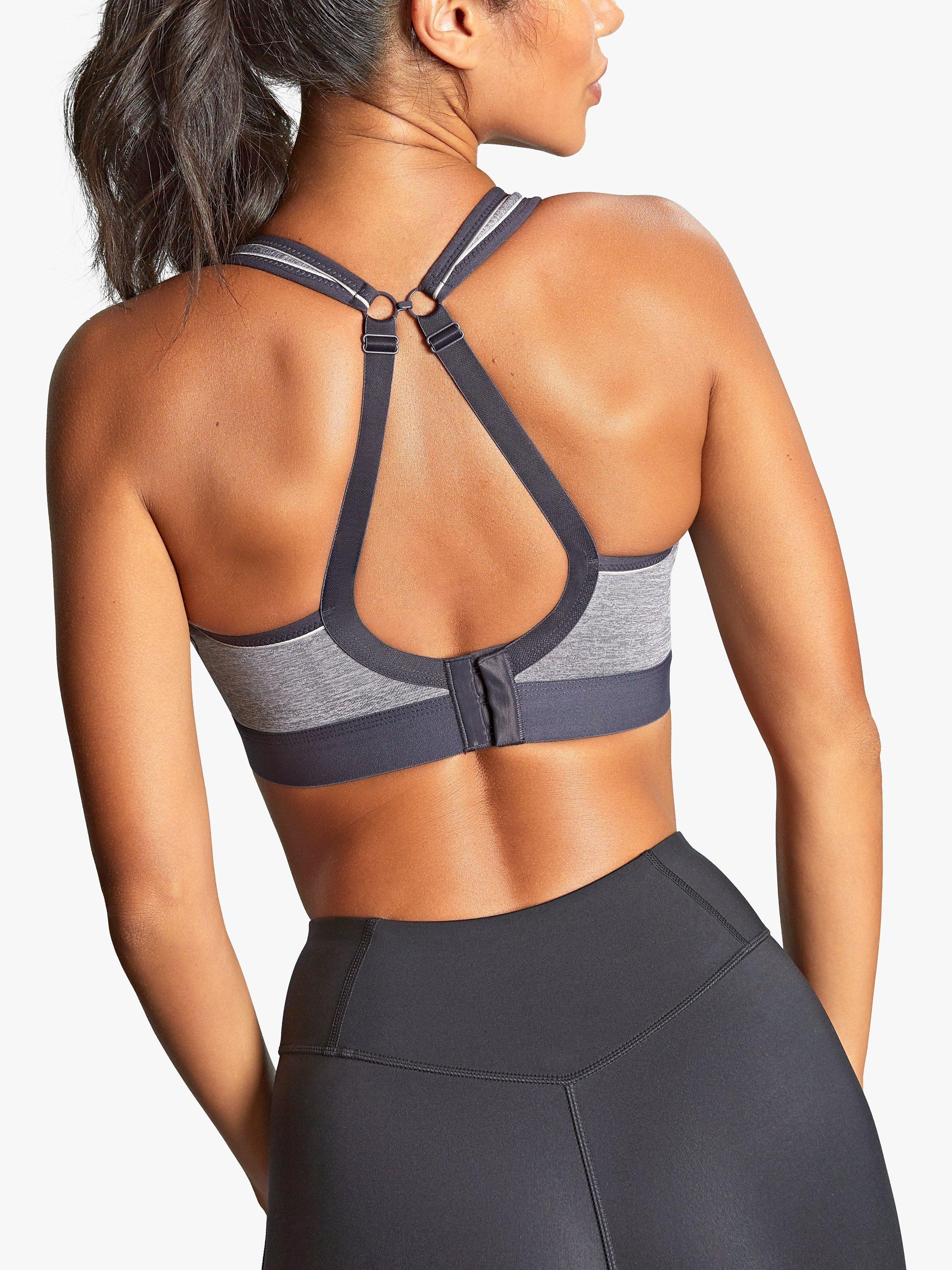 The Panache non-wired sports bra features a fashion-forward solid teal paired with a soft pink shade for a nostalgic, sporty aesthetic. With a longer underband for extra support, seamfree inner cups that individually encapsulate each breast, and a cushioned hook and eye and straps, this sports option gives amazing support. An additional racer back option is offered with a J hook, and breathable performance fabric keeps you dry and comfortable throughout every workout.