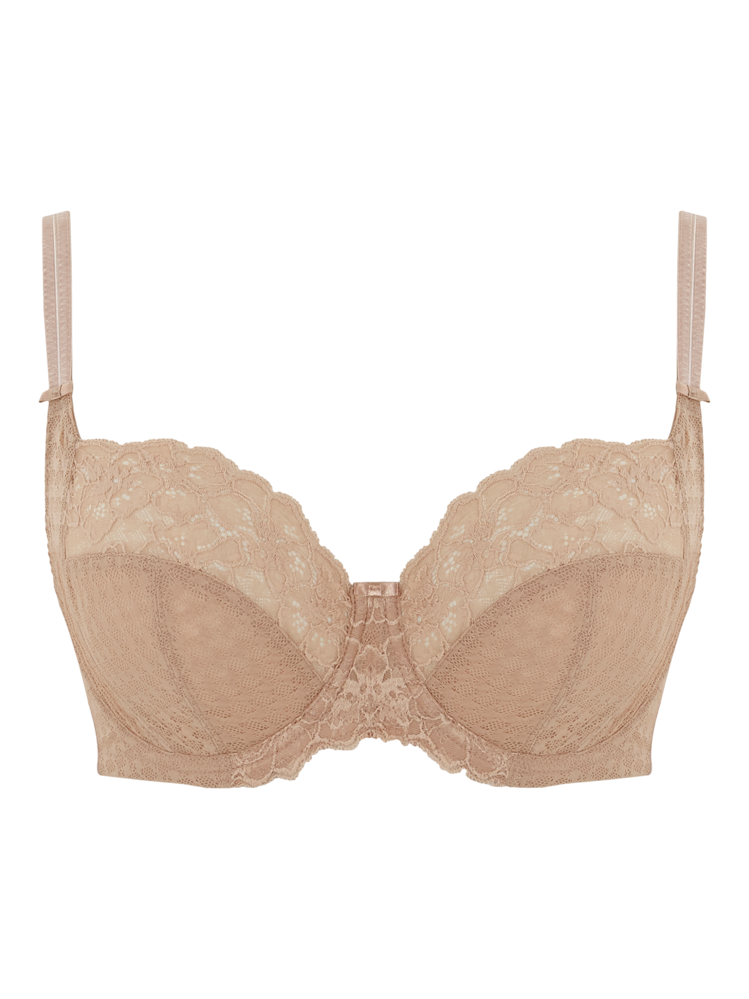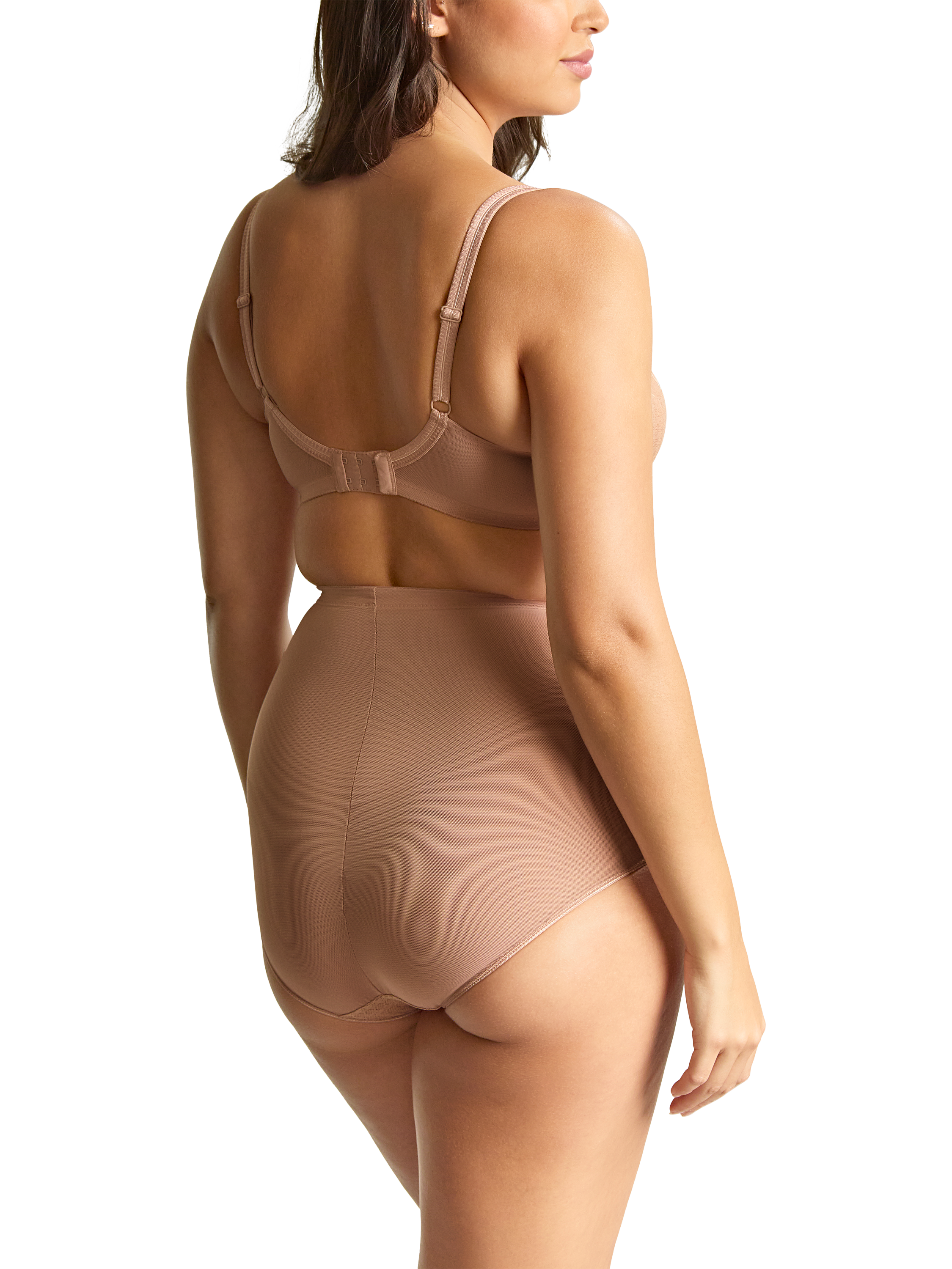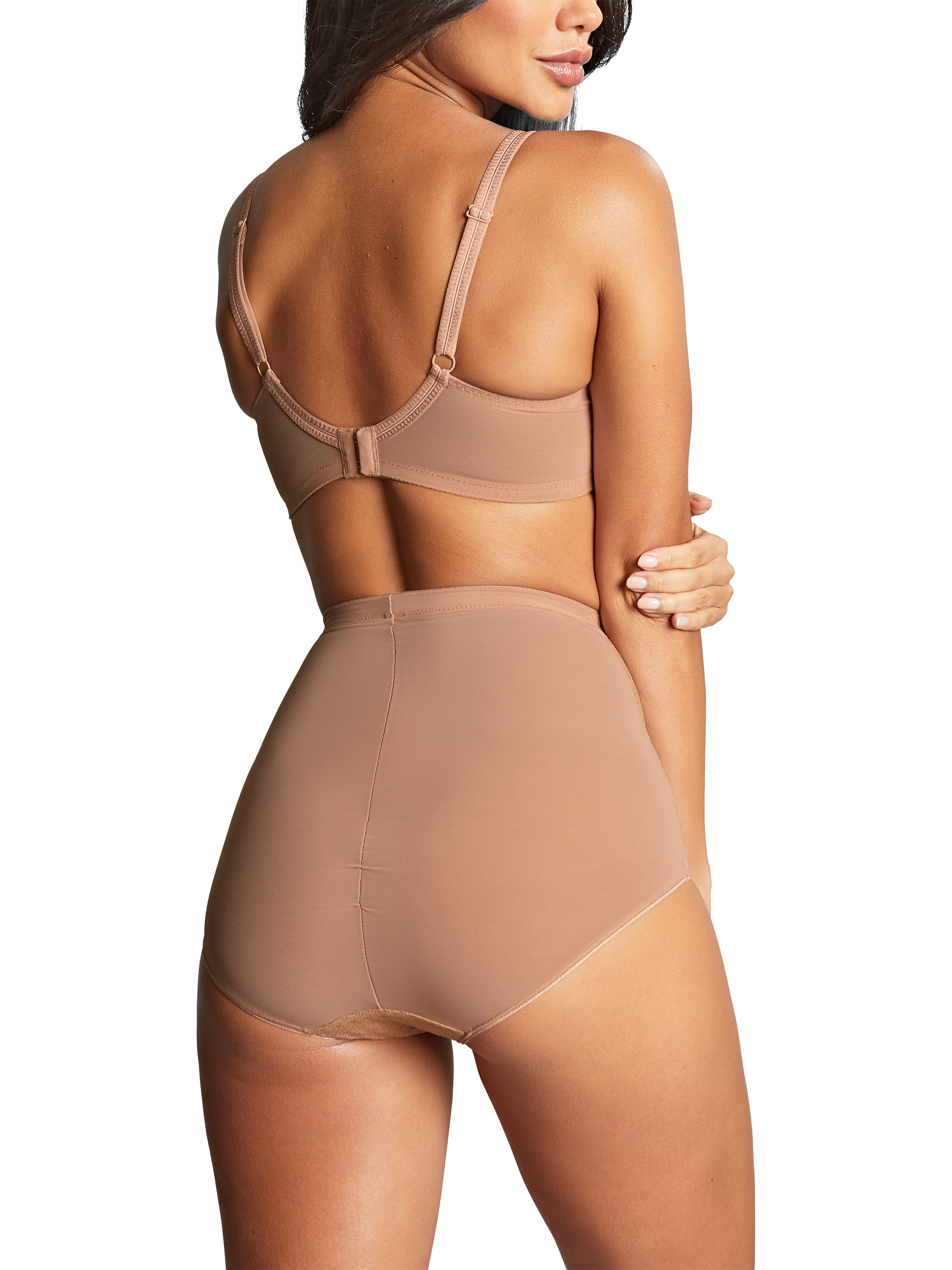 The four-part cups are finished with a stretch lace top cup which moulds to the bust shape without digging in. Side panelling ensures forward projection to give a flattering silhouette under clothes.