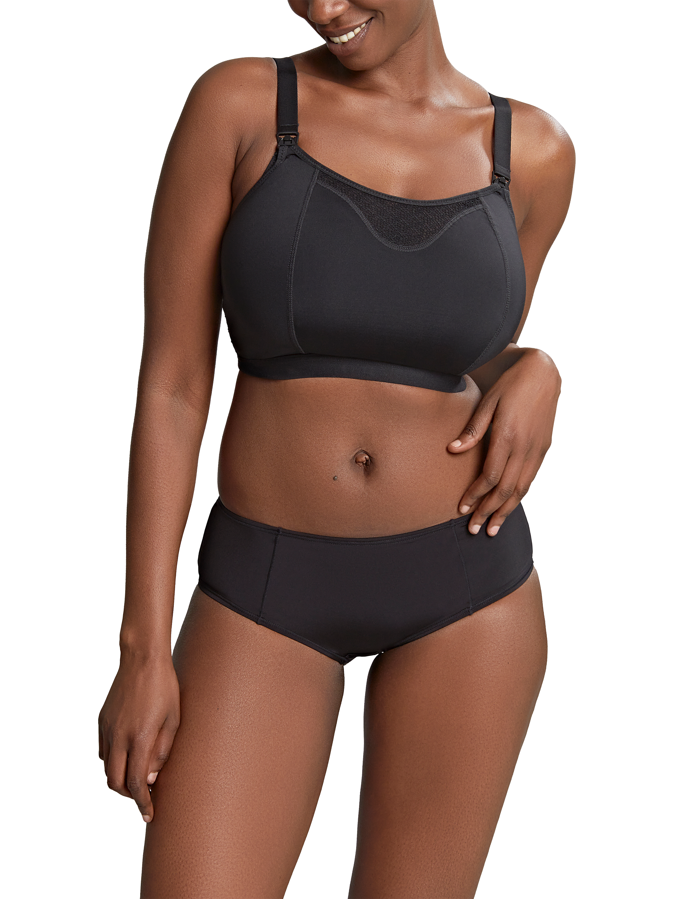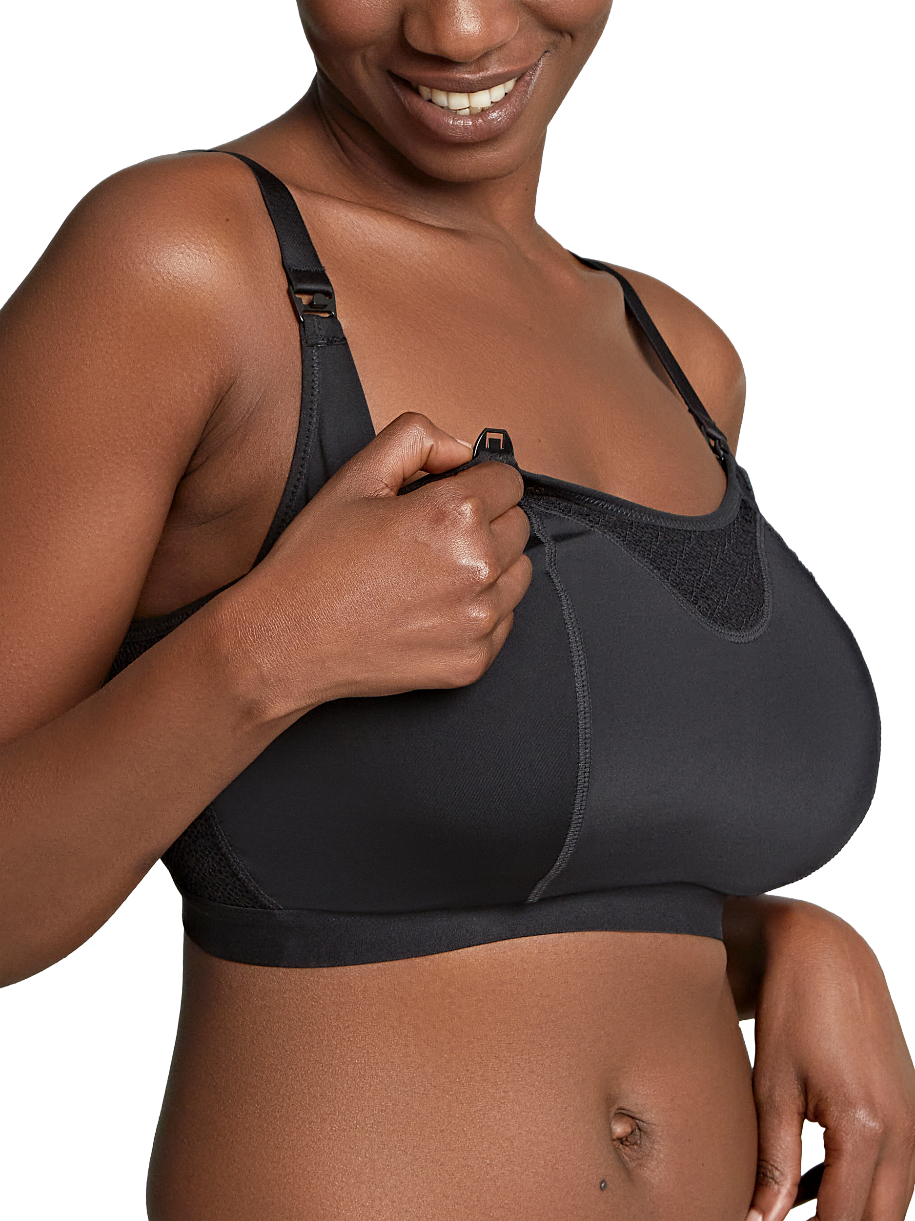 Part of the Panache Nursing bra family, Katherine has a fashion-forward crop top style with a moulded inner cup, soft inner side sling and feeding clip at the apex. With pretty lace detail and extended hook and eye for adjustability throughout pregnancy, Katherine is a great, supportive, non-wired maternity style.