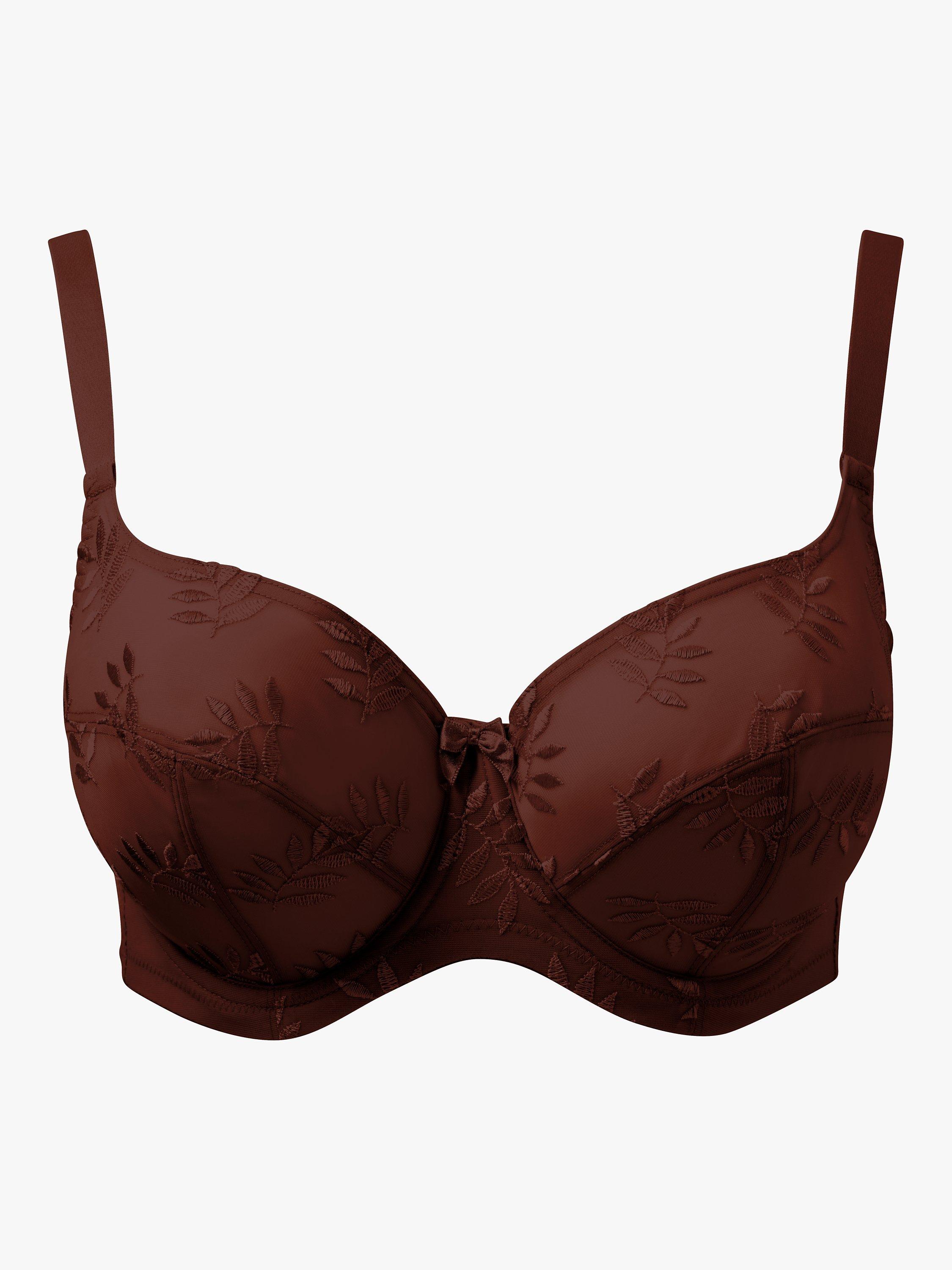 Made from an opaque mesh, the bra is crafted with a three-part cup that lifts and offers coverage over the bust. Wide wires separate the bust in the centre to give a flattering silhouette, while the Austrian-designed leaf embroidery adds subtle detail.