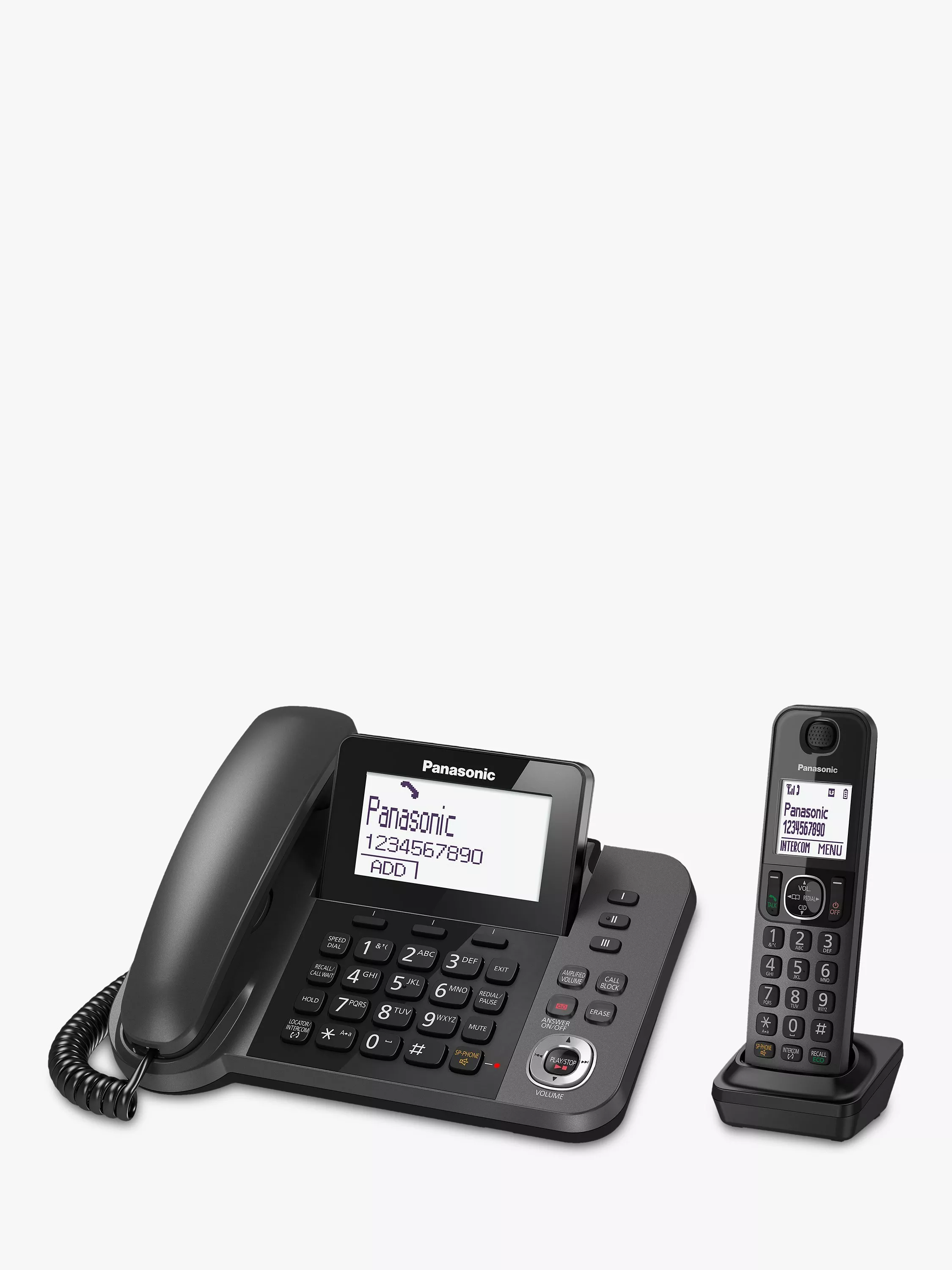 The Panasonic KX-TGF320EM features a 2-in-1 design that makes it ideal for home offices. Consisting of a smart black corded phone to sit on your desk and a cordless handset that you can use as you move around the office. Simple and easy to use, it also features a dedicated Nuisance Call Block registration button to help you cut out unwanted calls.