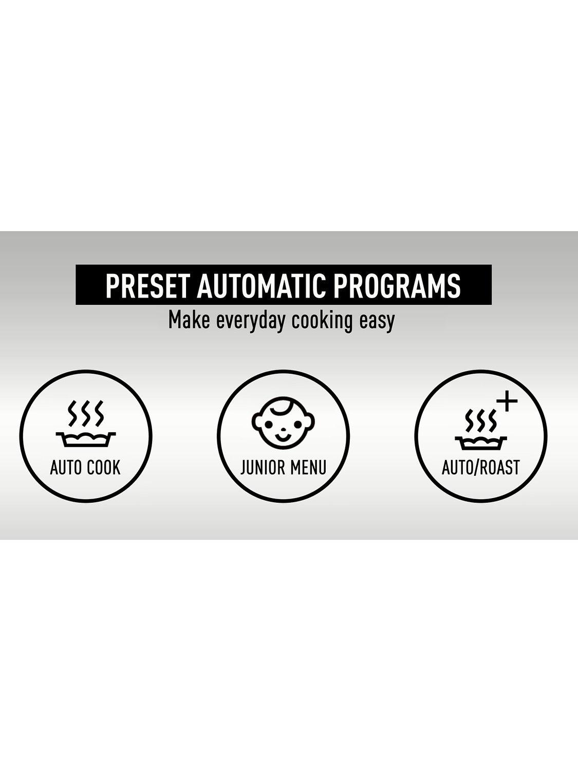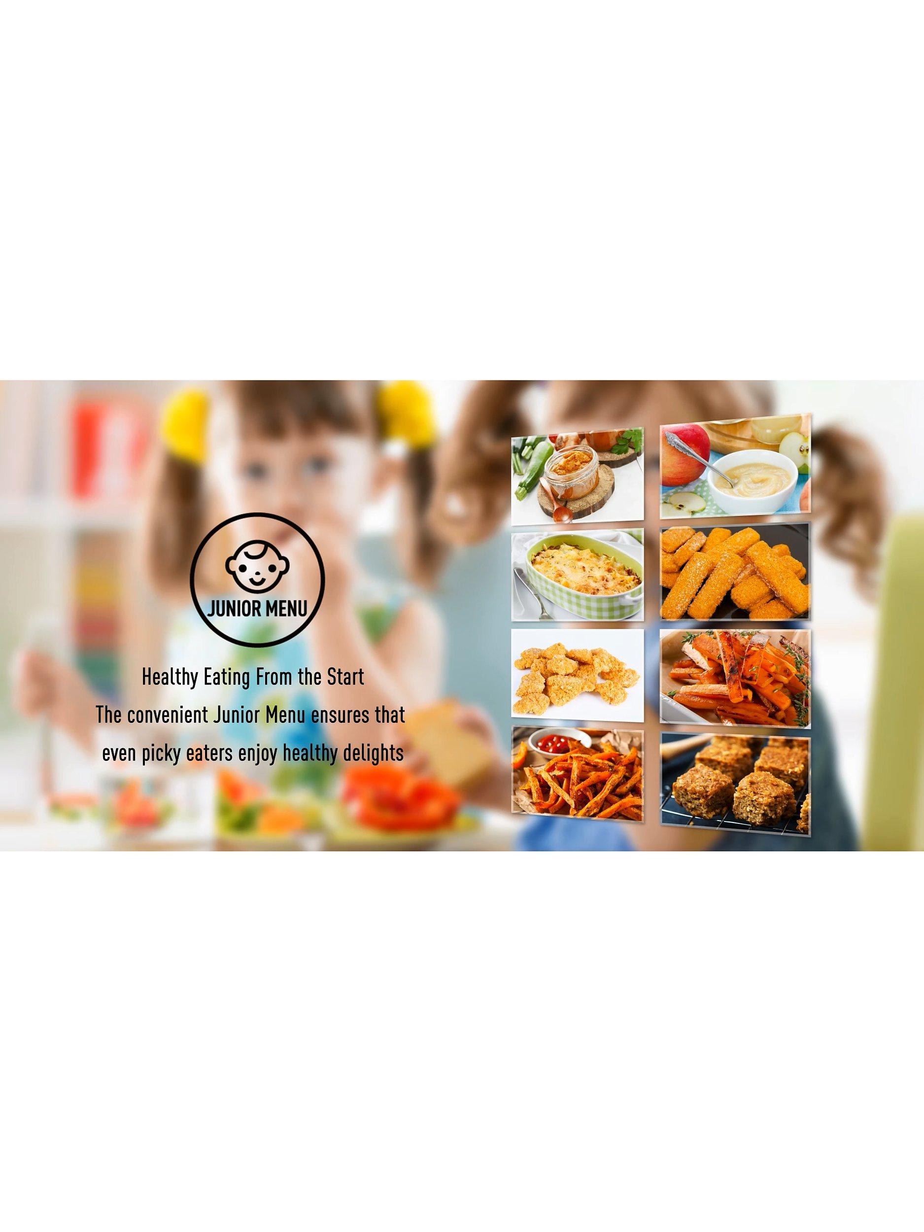Choose from 29 auto programmes to help with the preparation of healthy homemade meals. These include pre-programmed 'junior menus' so little ones can join in the healthy eating. There's also automatic programmes for fruit purees, pasta bakes, healthy flapjacks and more, ensuring there’s options for even picky eaters.