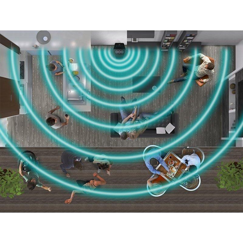 This speaker has four 6cm tweeters, four 8cm mid-range woofers and two 16cm super woofers to deliver insane sound. Also, with the clever positioning of each unit, you’ll get 180 degree expansion. This way, the top-notch audio will fill the whole room.