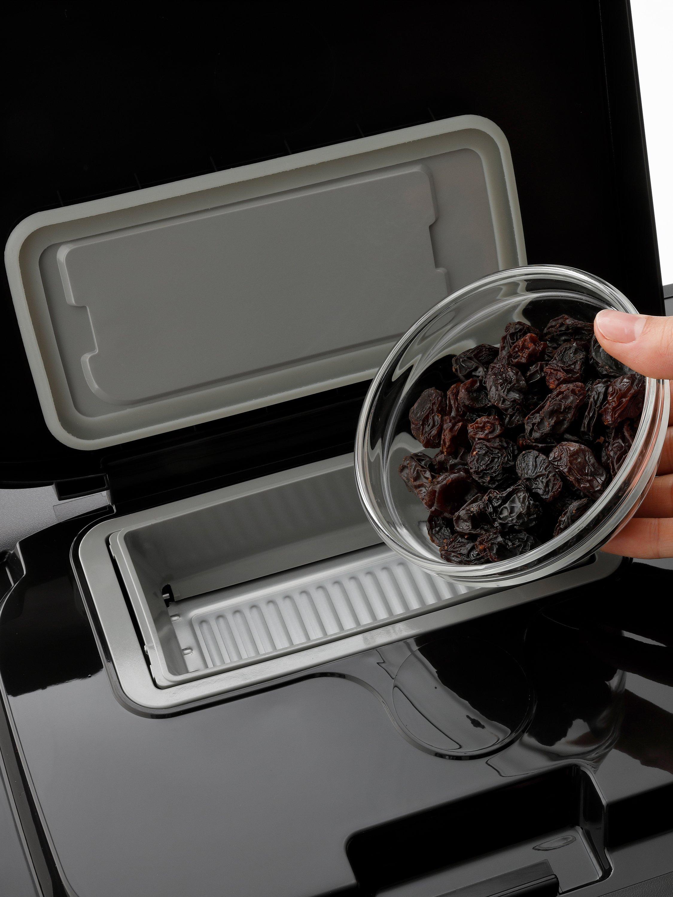 The automatic raisin/nut dispenser mixes additional ingredients such as nuts, seeds, olives, dried fruit, chopped cured meets and more at just the right time to help ensure they are evenly distributed throughout the loaf. They are placed in the tray in the lid and after the mixing stage they are incorporated into the dough at just the optimum time.
