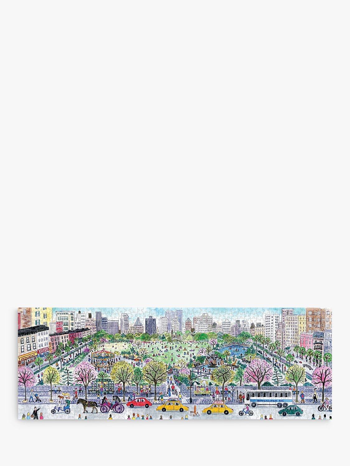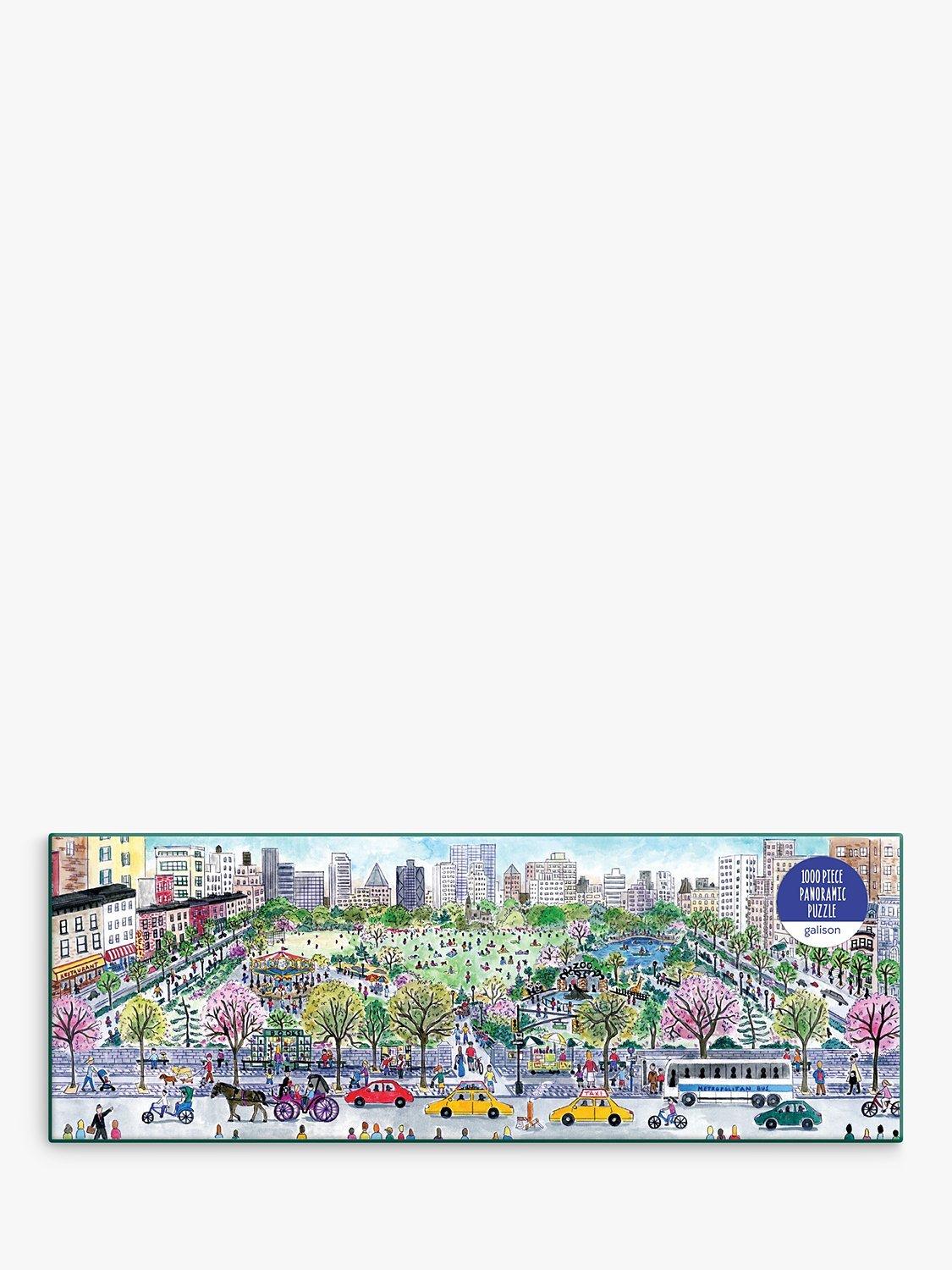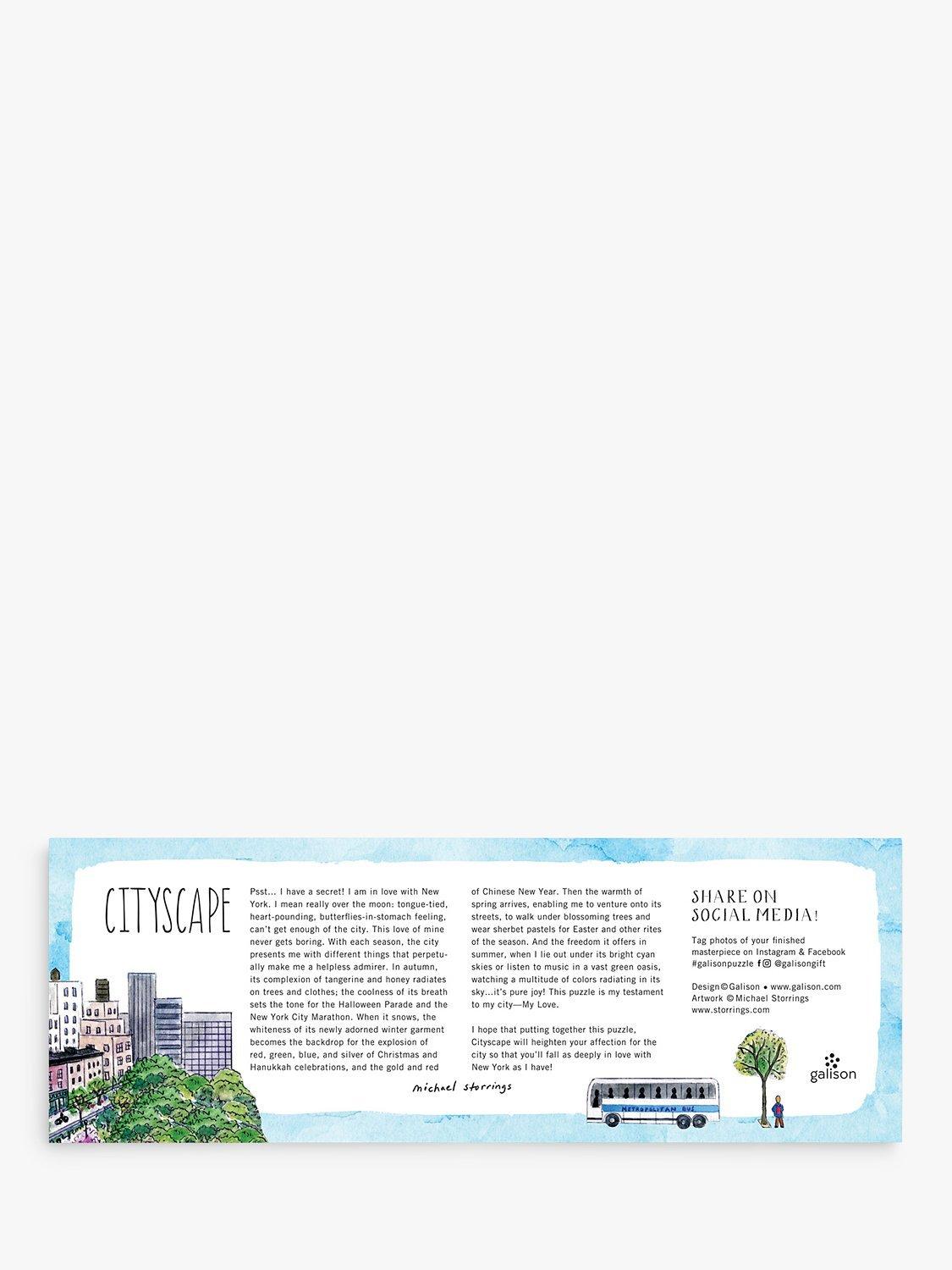 The Cityscape 1000 Piece Panoramic Puzzle from Galison features a charming landscape city illustration by bestselling artist Michael Storrings.