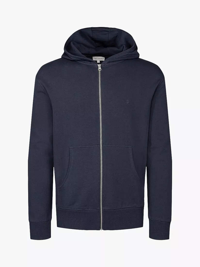 The Element zip front hoodie from Panos Emporio is constructed using pre-shrunk 100% GOTs Certified Organic cotton, to ensure no shrinking when washing at home. With a relaxed fit with a discrete emboidered logo on chest and hood, it features a YKK zipper.