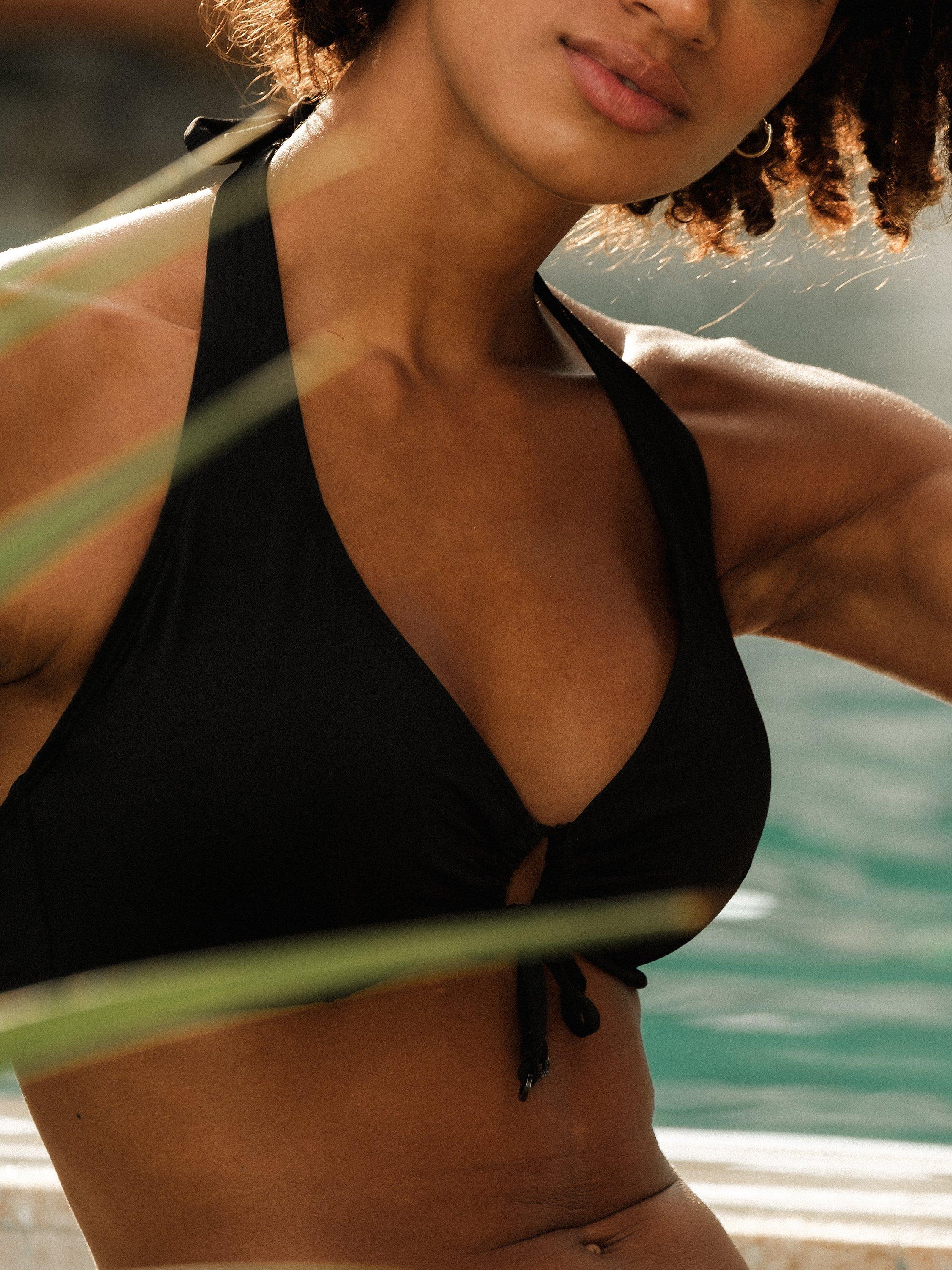 A summertime staple, whether for the pool or a dip on the ocean, this moulded bikini top from Panos Emporio is designed with a plunging neckline and self-tie straps that you can adjust to ensure confidence as you move in the water.