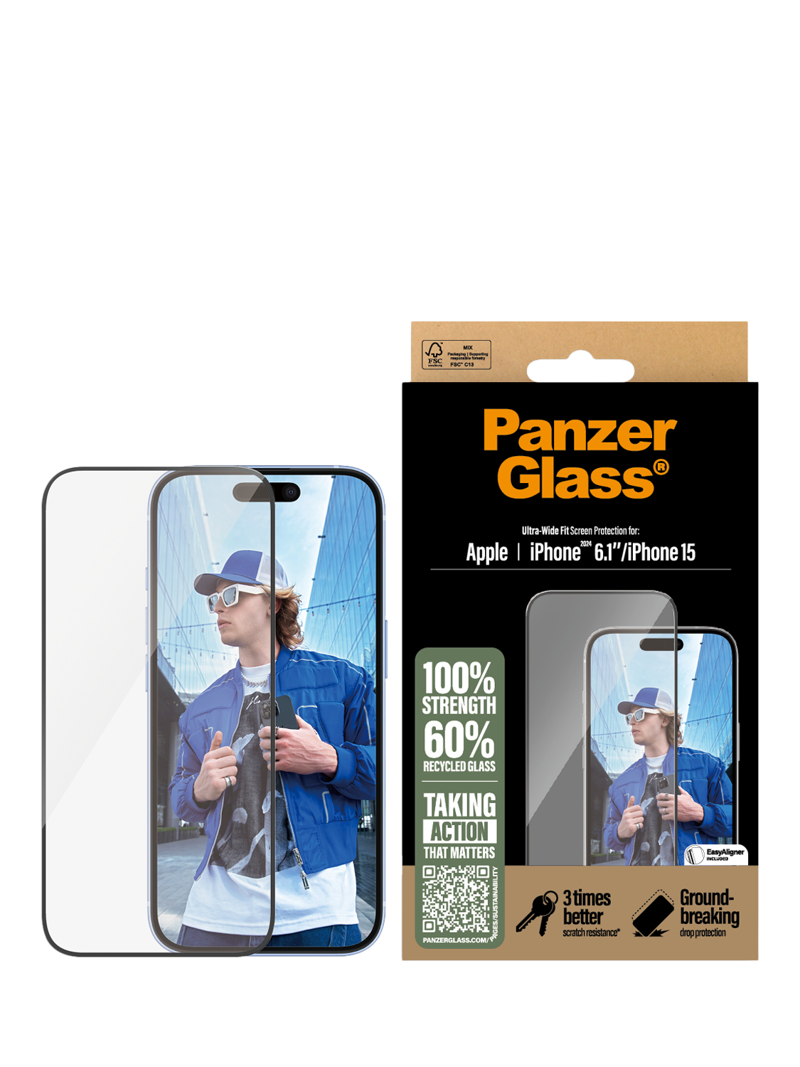 The screen protector comes with an EasyAligner that makes installation so simple you can do it perfectly on the first attempt… even if you’re all thumbs. The Ultra-Wide Fit screen protector covers the entire front surface of your phone, while still leaving room for a case, providing a complete and crystal-clear view of your screen.