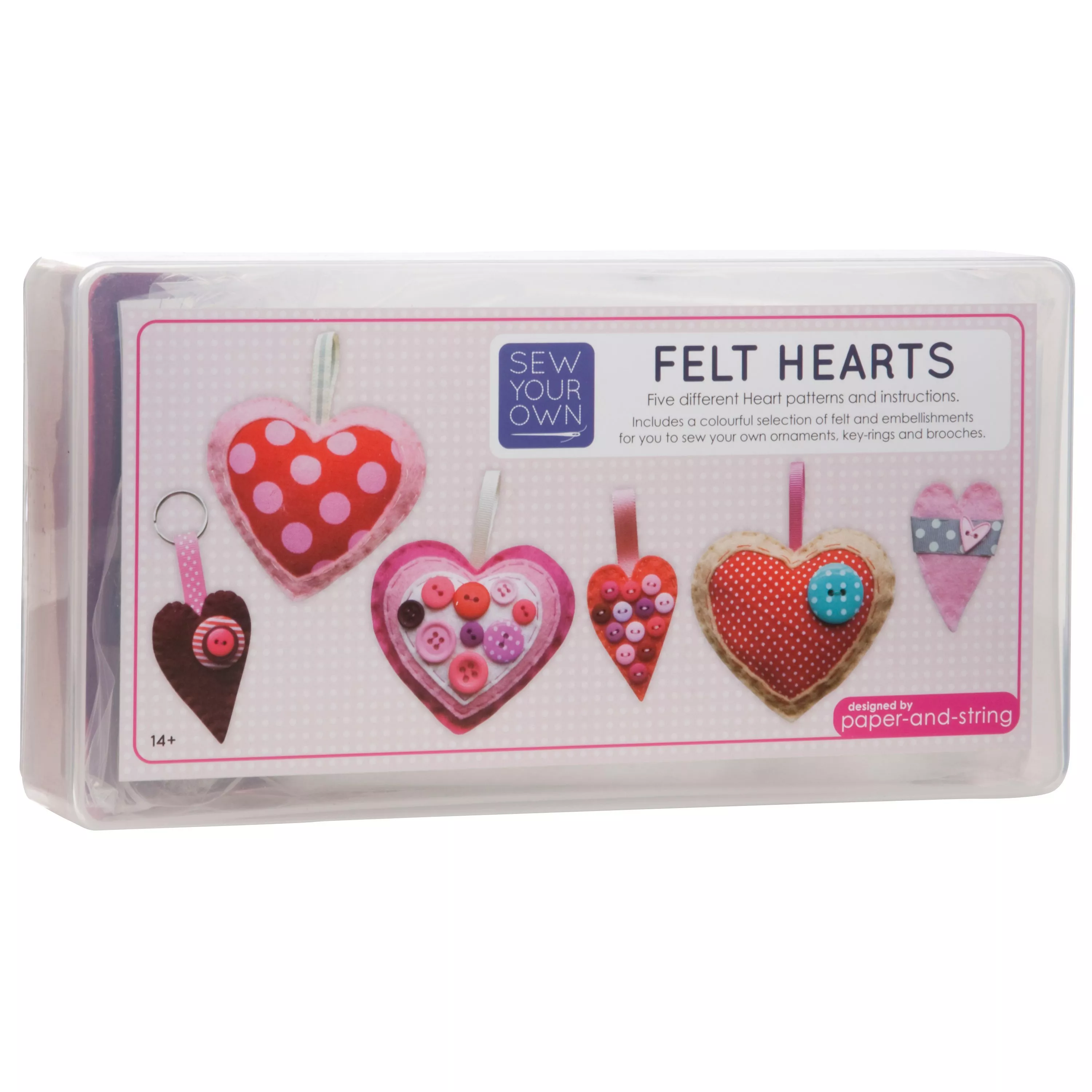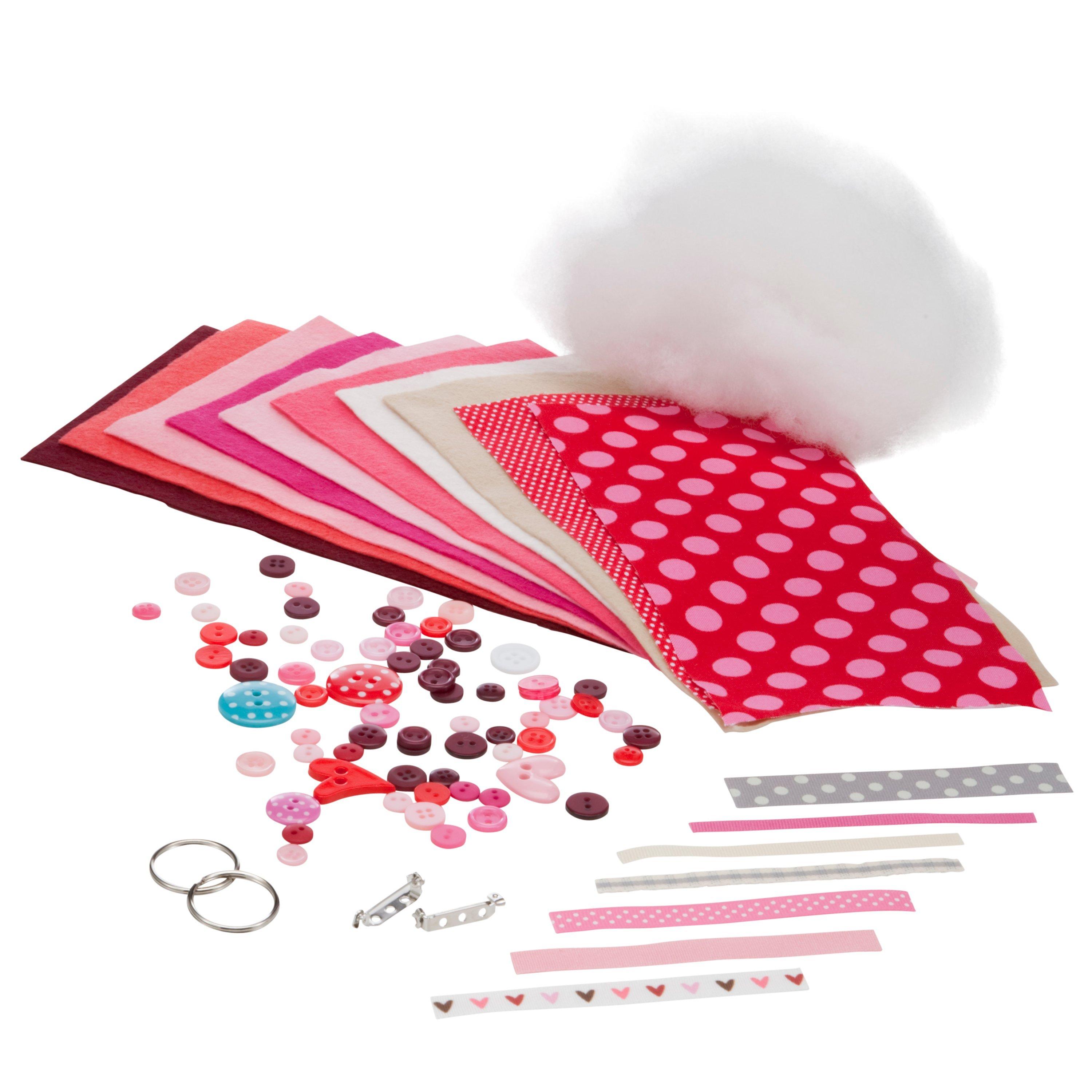 Sew your own selection of hearts with this fabulous craft kit. Make a decoration, key ring or brooch for a loved one from a selection of felt and fabric.