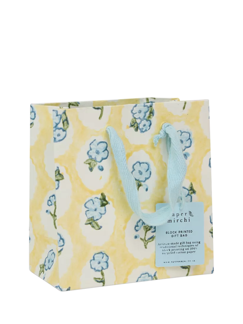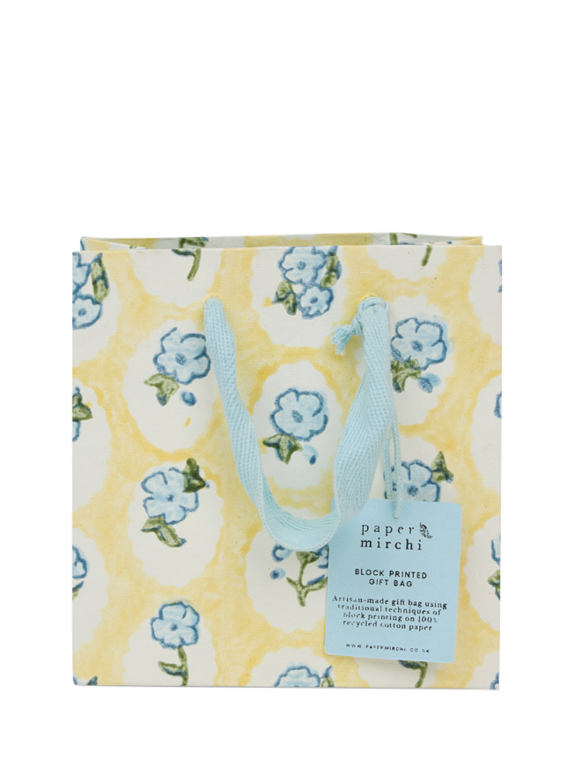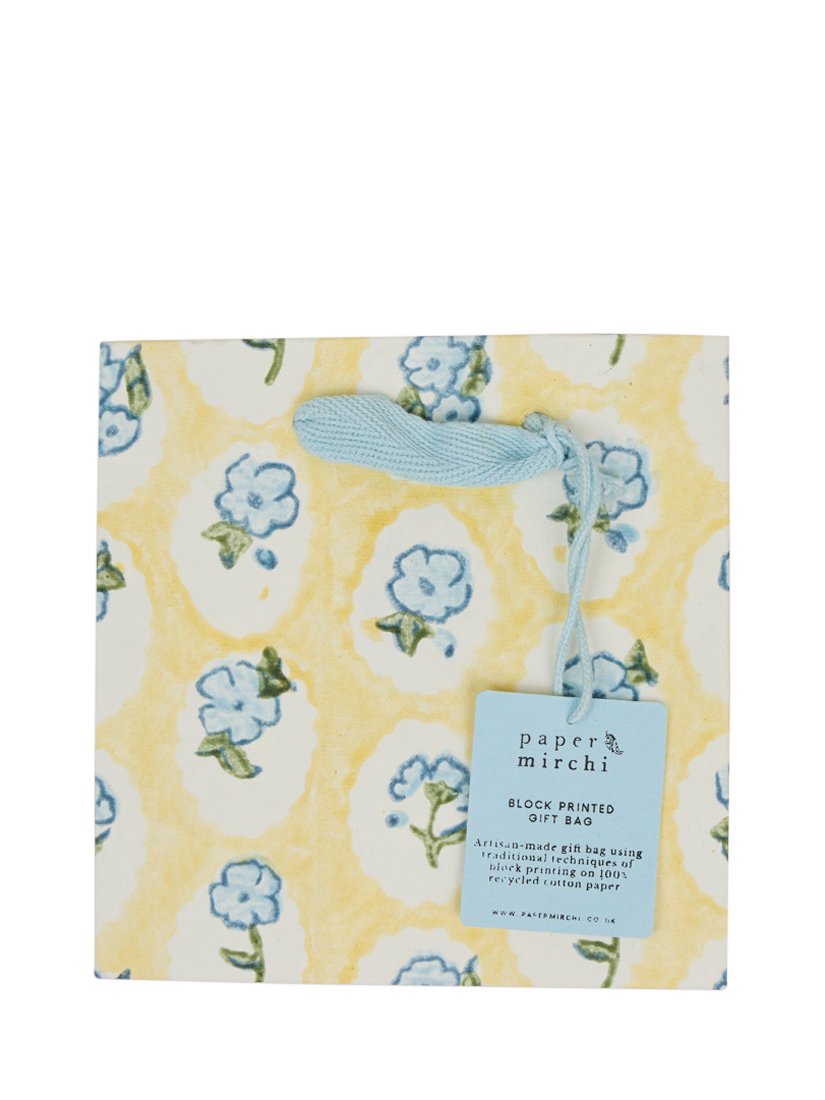 Paper MirchiFloral Block Print Gift Bag, Multi Yellow