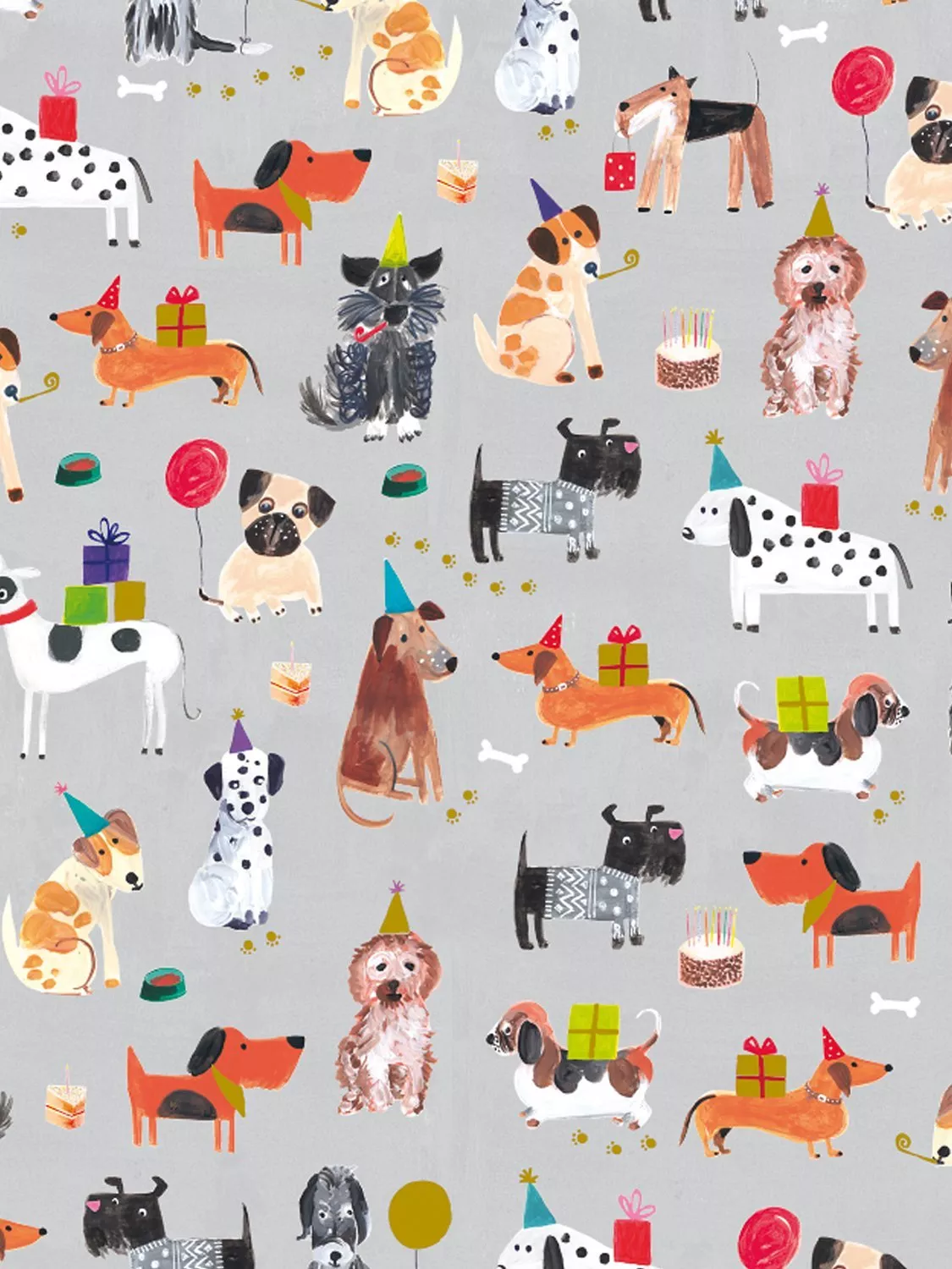 These pooches are ready to party! Celebrate your loved ones special day by wrapping their present in this adorable dog-themed wrapping paper from Paper Salad.