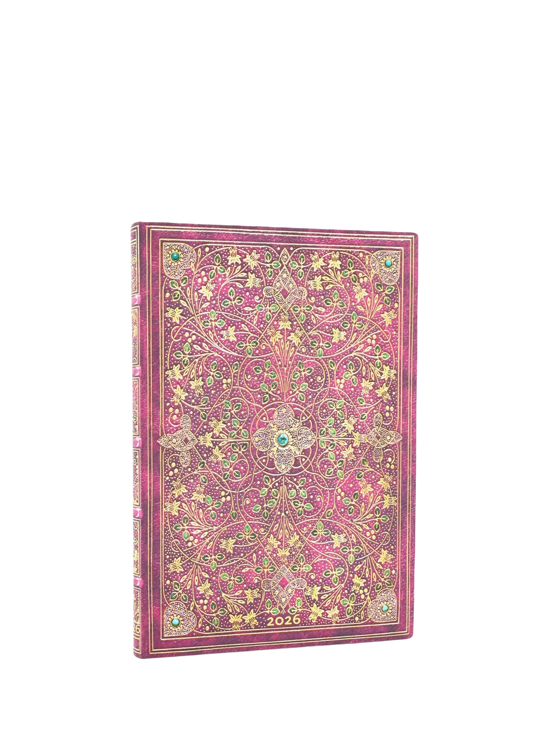 This glorious design comes from Sangorski & Sutcliffe, a world-renowned British bindery celebrated for their jewelled bindings. Originally crafted in 1922 to house Rudyard Kipling’s “Recessional” poem, written in 1897 for Queen Victoria’s Diamond Jubilee, it incorporated real turquoise, aquamarine and ruby gemstones.