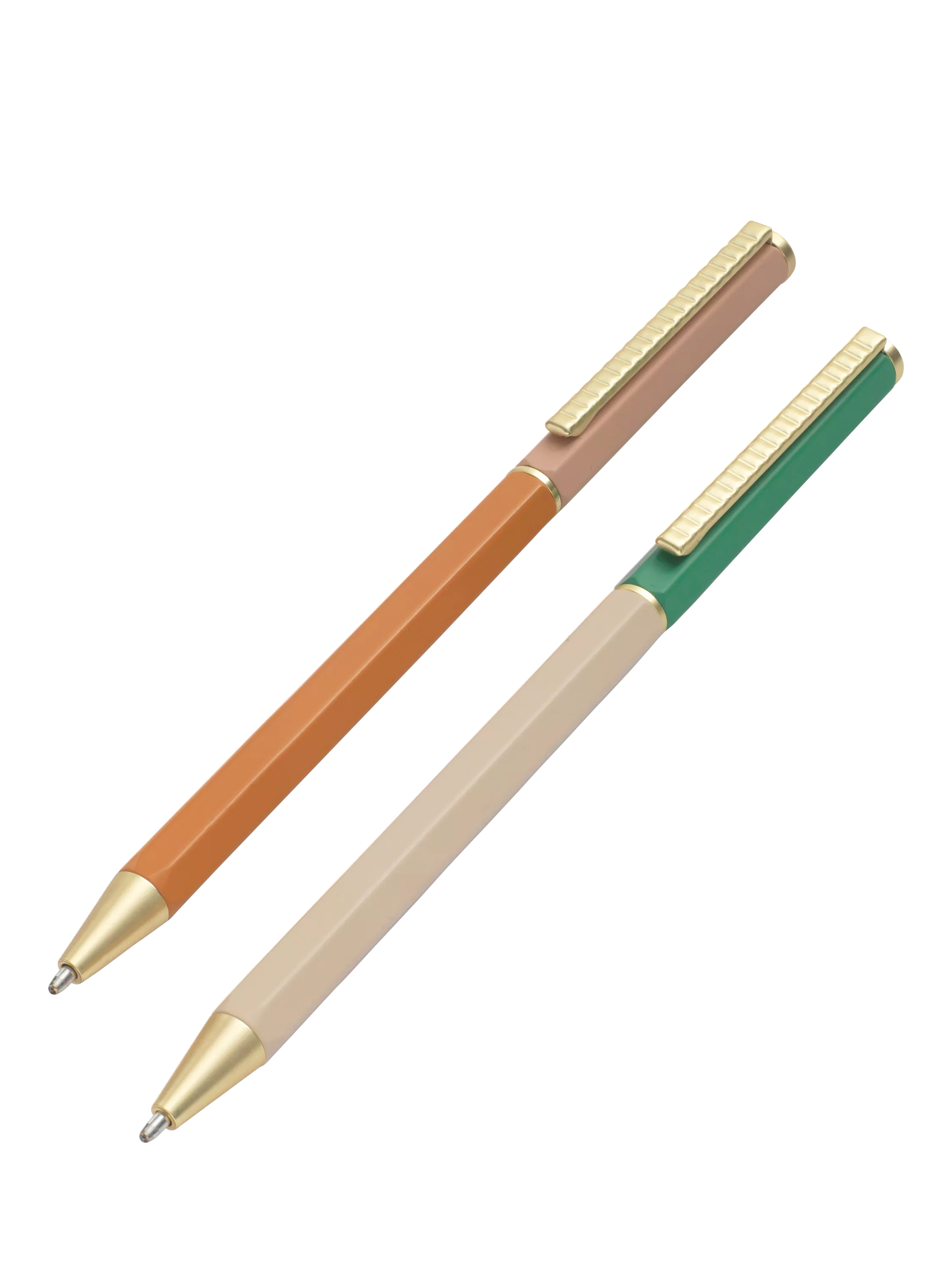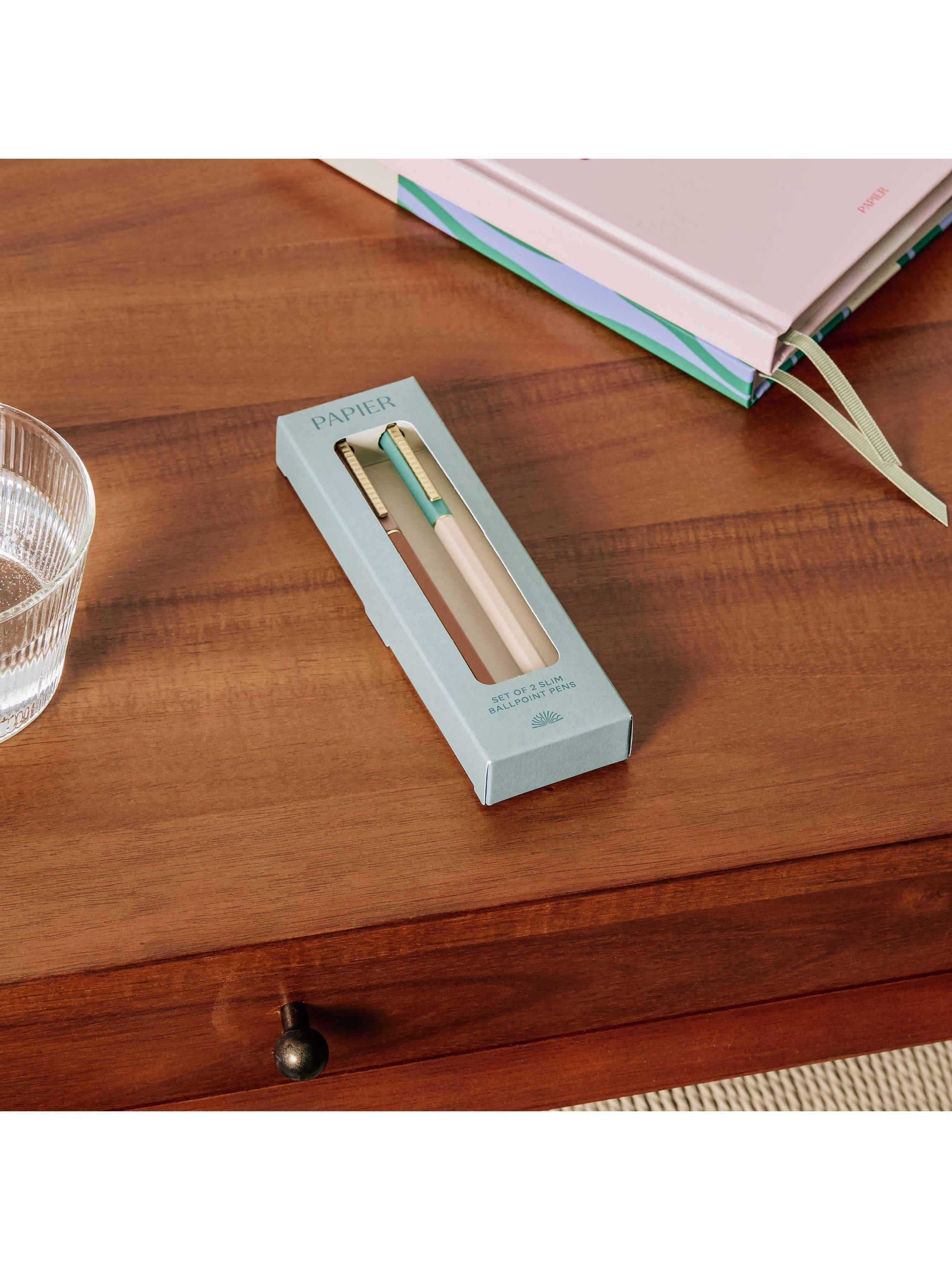 Put pen to paper with something sleek and chic. Papier's Slim ballpoint pen set includes two premium pens, ready for writing notes, plans, goals and more. Lightweight with a golden shine, they're a delightful addition to any desk.