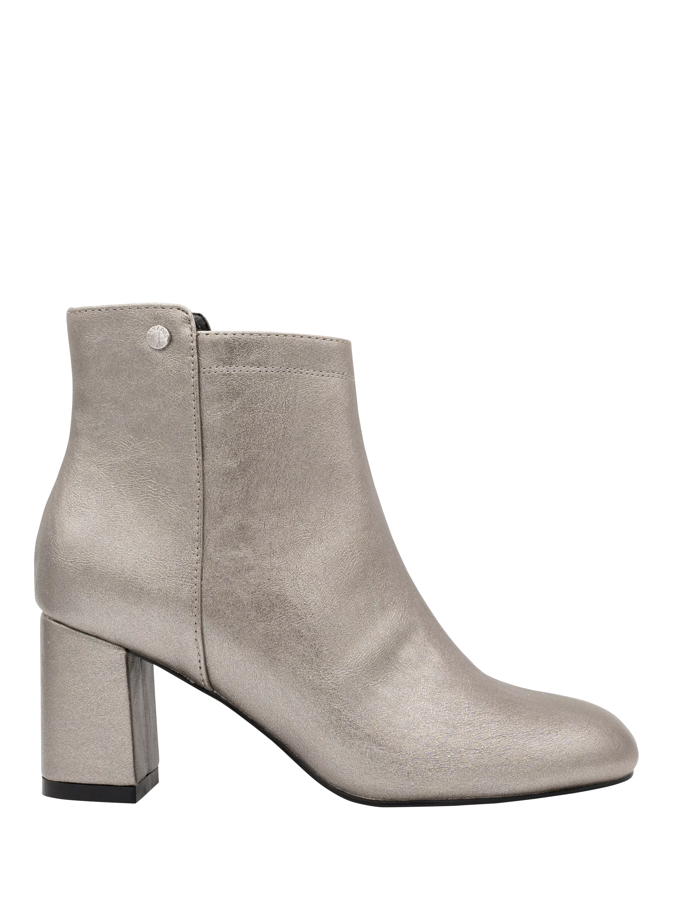 Pulling on for autumnal appeal, this pair of ankle boots from Paradox London have durable metallic uppers. Elevated on a block heel, they are finished with a closed almond-shaped toe.