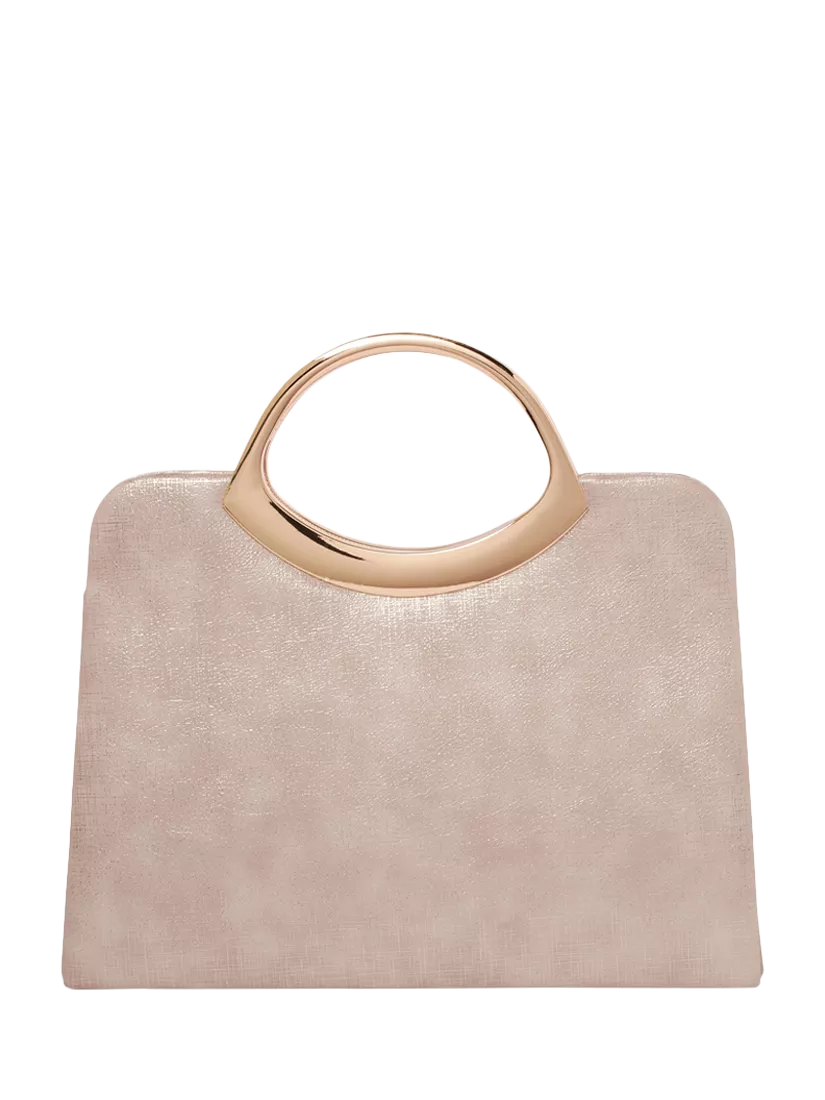Make a sophisticated statement with Paradox London's Darya handbag. This structured design showcases modern elegance with its distinctive metallic curved top handle, creating a striking silhouette that commands attention.
