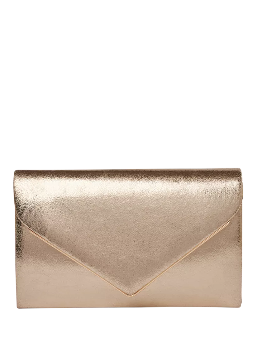 The Delyssa clutch bag makes an elegant statement with its distinctive hardware detail. The clean lines of this refined evening bag are elevated by a sleek metallic accent on the flap closure, creating a perfect harmony between modern design and classic sophistication.