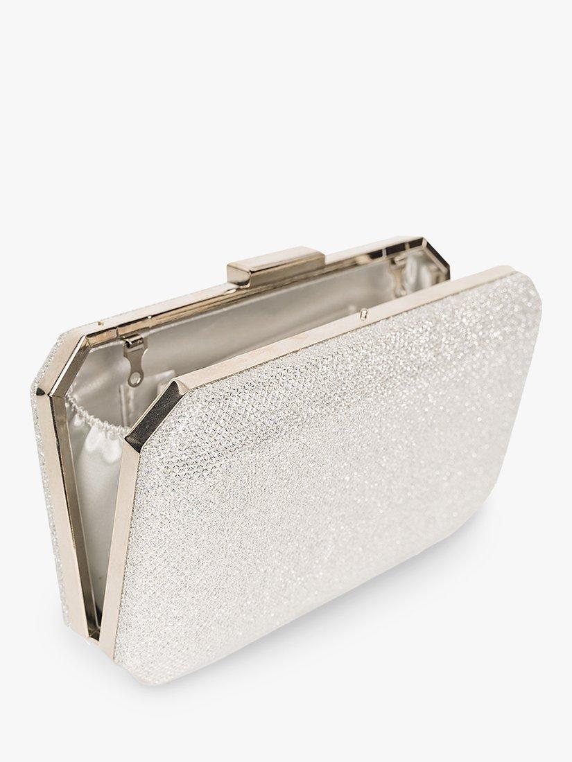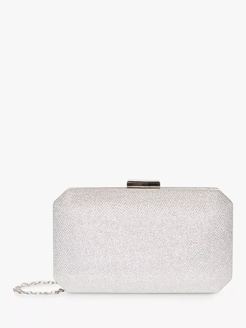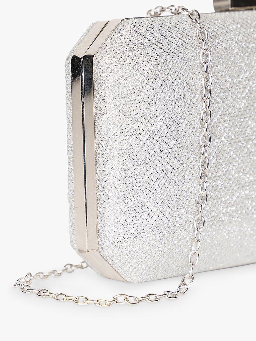 Securing with a clasp fastening, the bag has a sparkling finish and comes complete with a detachable chain strap for easy hands-free convenience.