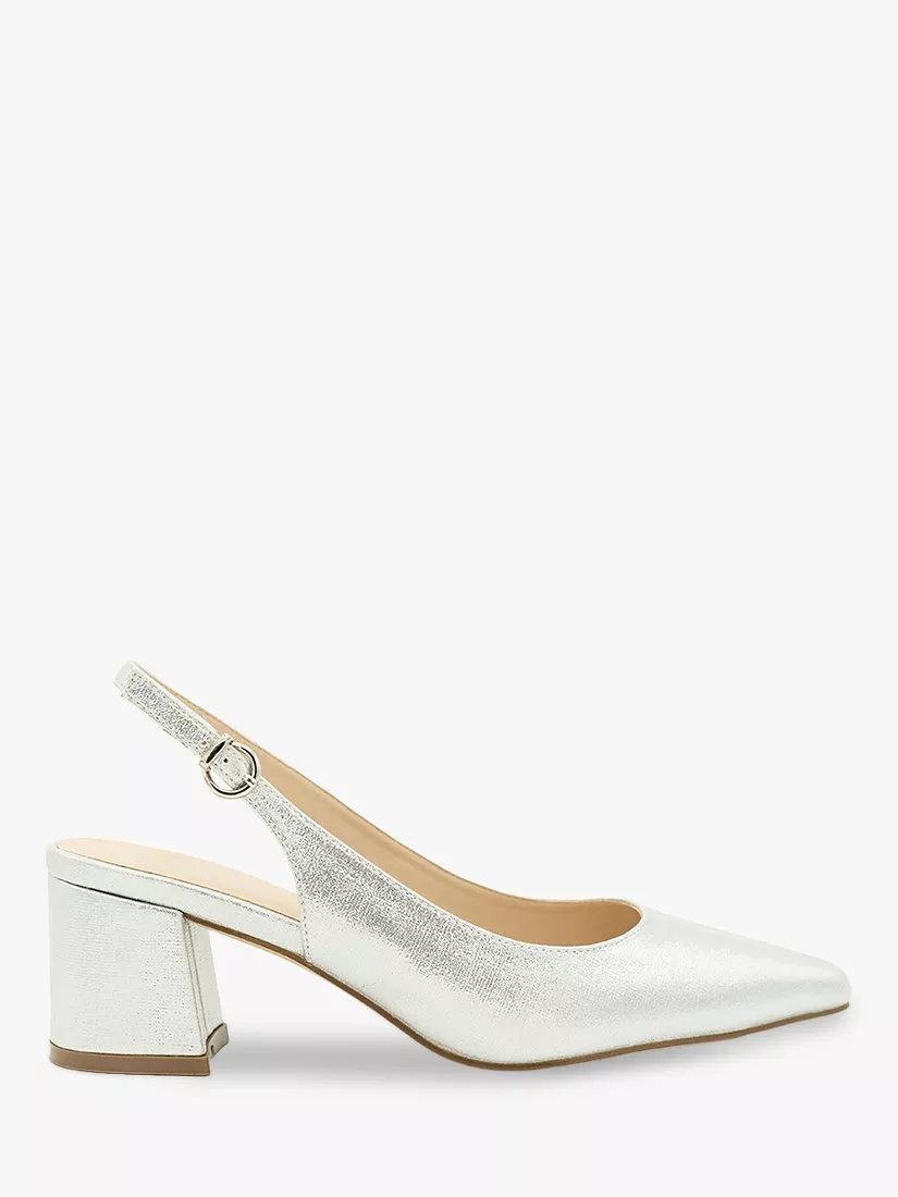 Set on a block heel, they are finished with a pointed toe that elongates the profile.