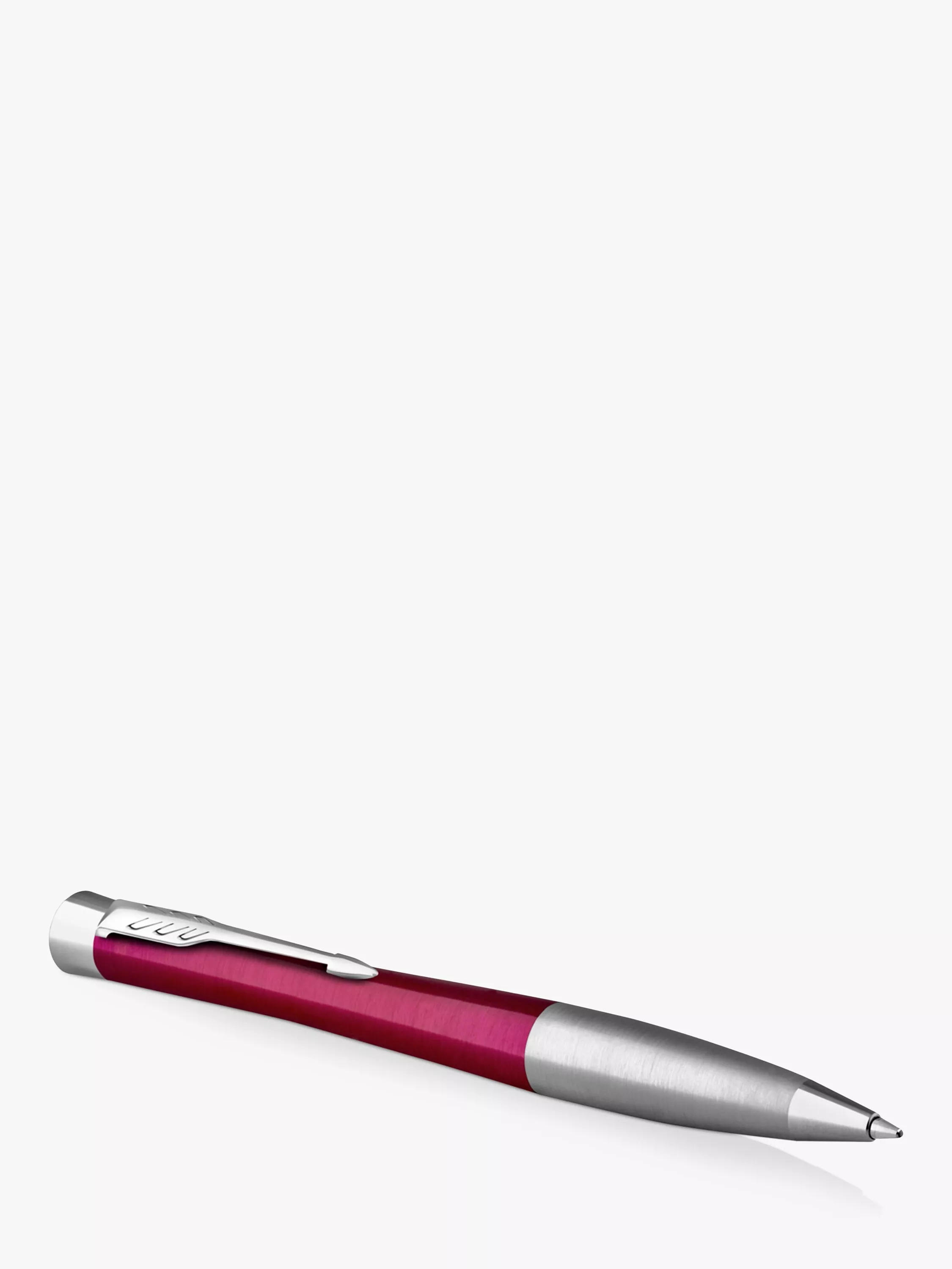 Eye catching and dynamic, the PARKER Urban Twist Ballpoint Pens deliver a boldly modern look that dares to be noticed. With its curved silhouette and improved weight, you enjoy a perfectly balanced writing experience that complements your style. This PARKER ballpoint pen features a vibrantly bright glossy magenta lacquer finish accented with striking chrome trim and shell. Retracting with a twist, the ballpoint tip and Quinkflow ink ensure an exceptionally smooth and reliable writing experience. Designed with flowing curves, the Urban Twist Ballpoint Pens inspire confidence behind every word.
