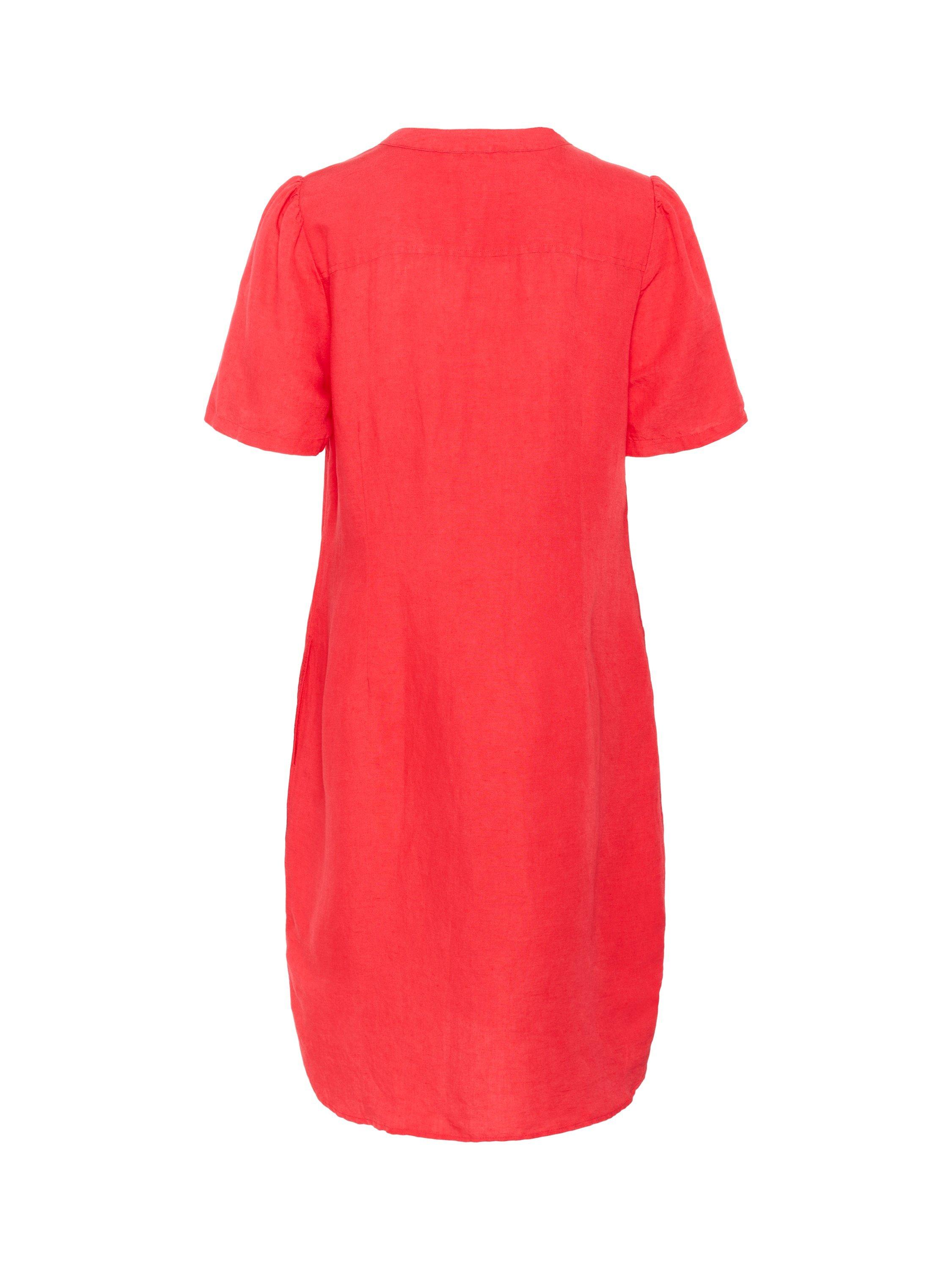 This Aminase linen-blend dress features a relaxed, loose fit, providing a comfortable and airy feel on warm days. With short sleeves and an elegant V-neck, it's perfect for both everyday wear and holidays. Style with sandals for an effortless summer look.