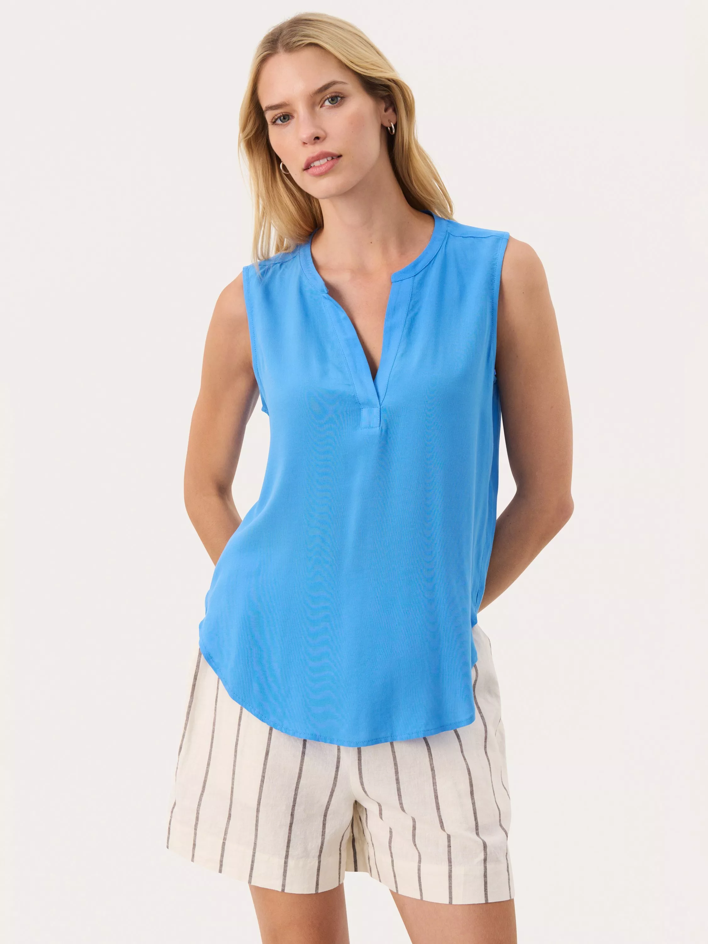 This Andia sleeveless blouse blends relaxed and elegant design. Featuring a V-neckline and soft, lightweight fabric, it's ideal for warm days. Pair it with jeans or a skirt for a stylish everyday outfit.