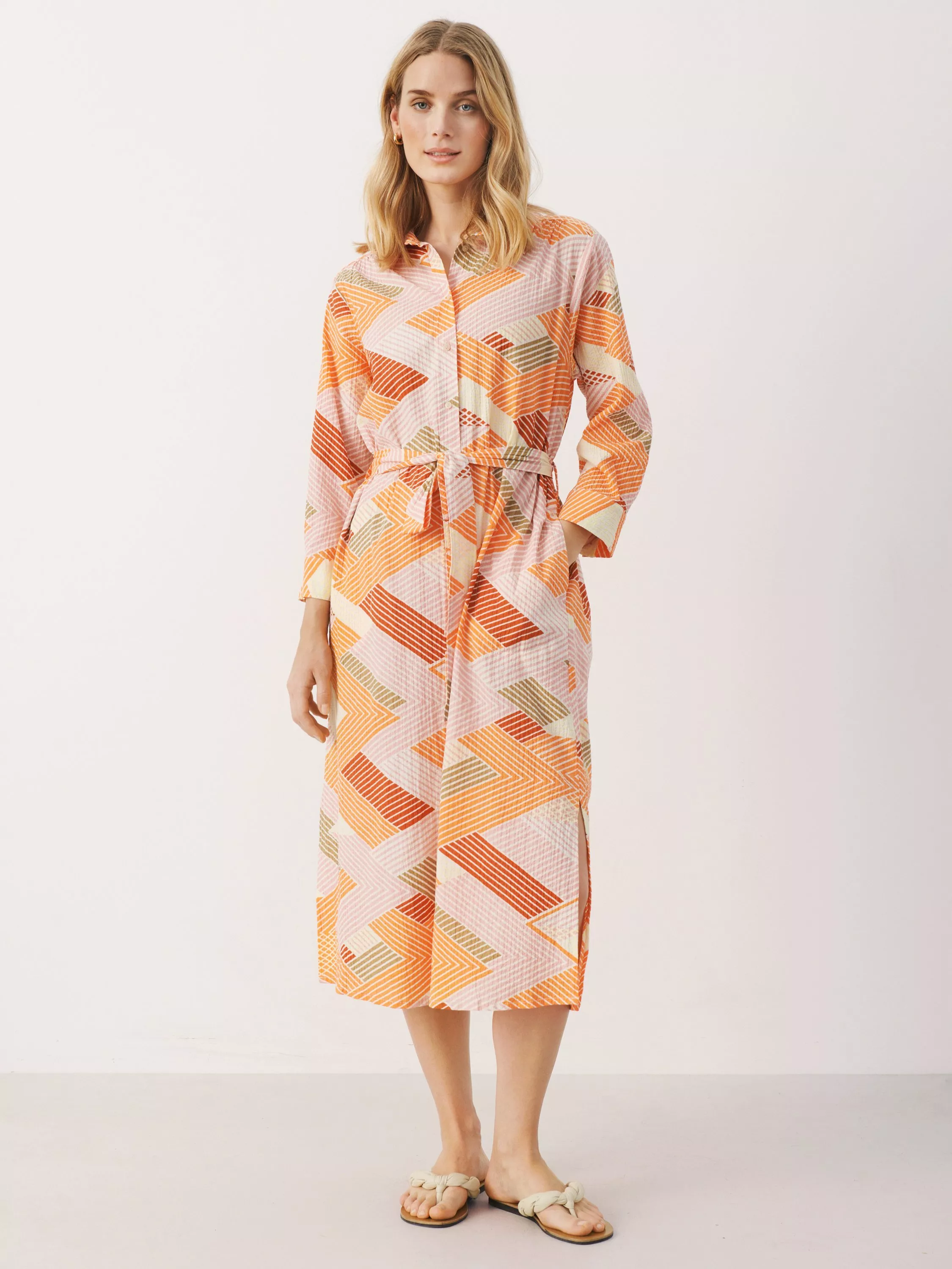 An instant classic thanks to its shirt styling, this mid-length dress from Part Two is fabricated in a soft cotton blend. Topped with a collar and three quarter length sleeves, it comes in a retro zigzag stripe pattern.