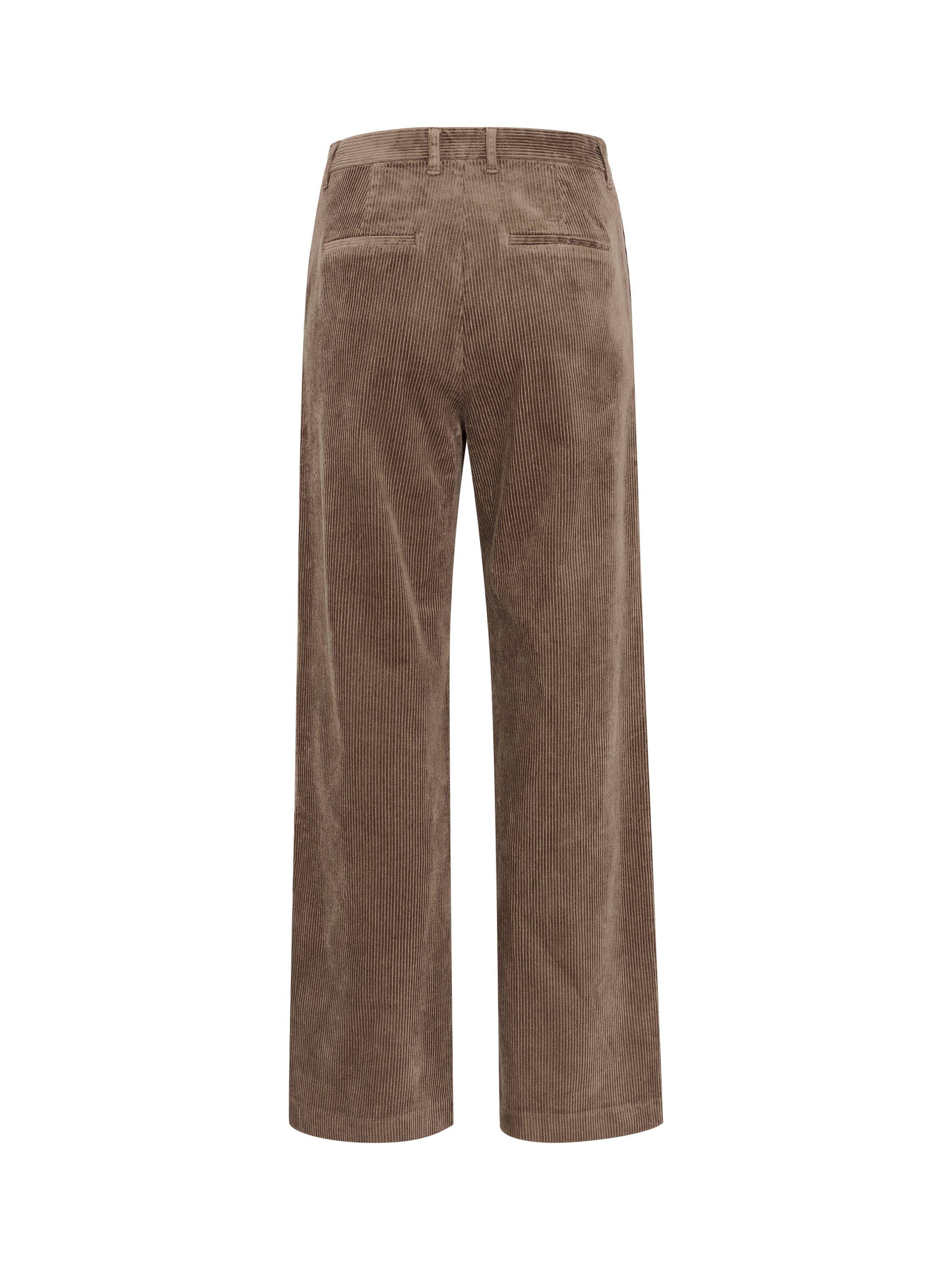 The Clarisse trousers are a casual pair of corduroy trousers, that looks great with a button up shirt or a simple T-shirt. They are high-waisted and have a regular fit with straight legs. The trousers have hidden front pockets and jetted back pockets.