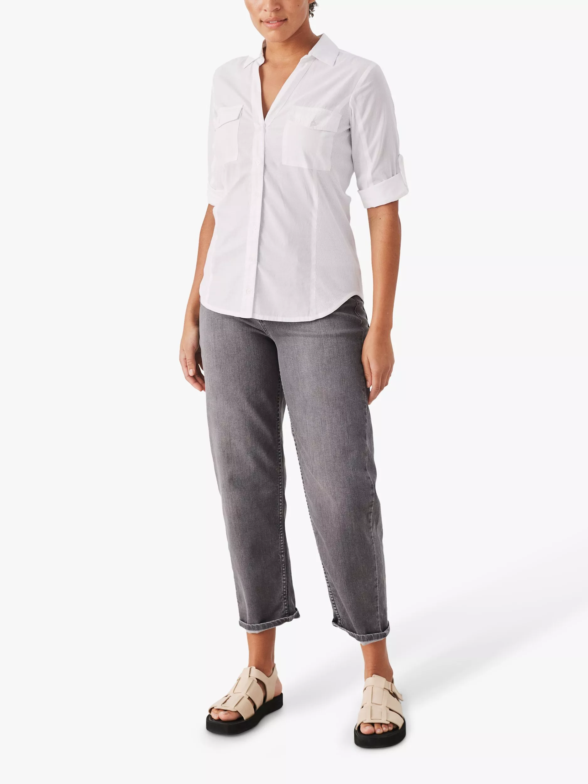 Framed with a collar neckline and tab sleeves, it is light and breathable in cotton and will slot seamlessly into your everyday staples as the weather warms.