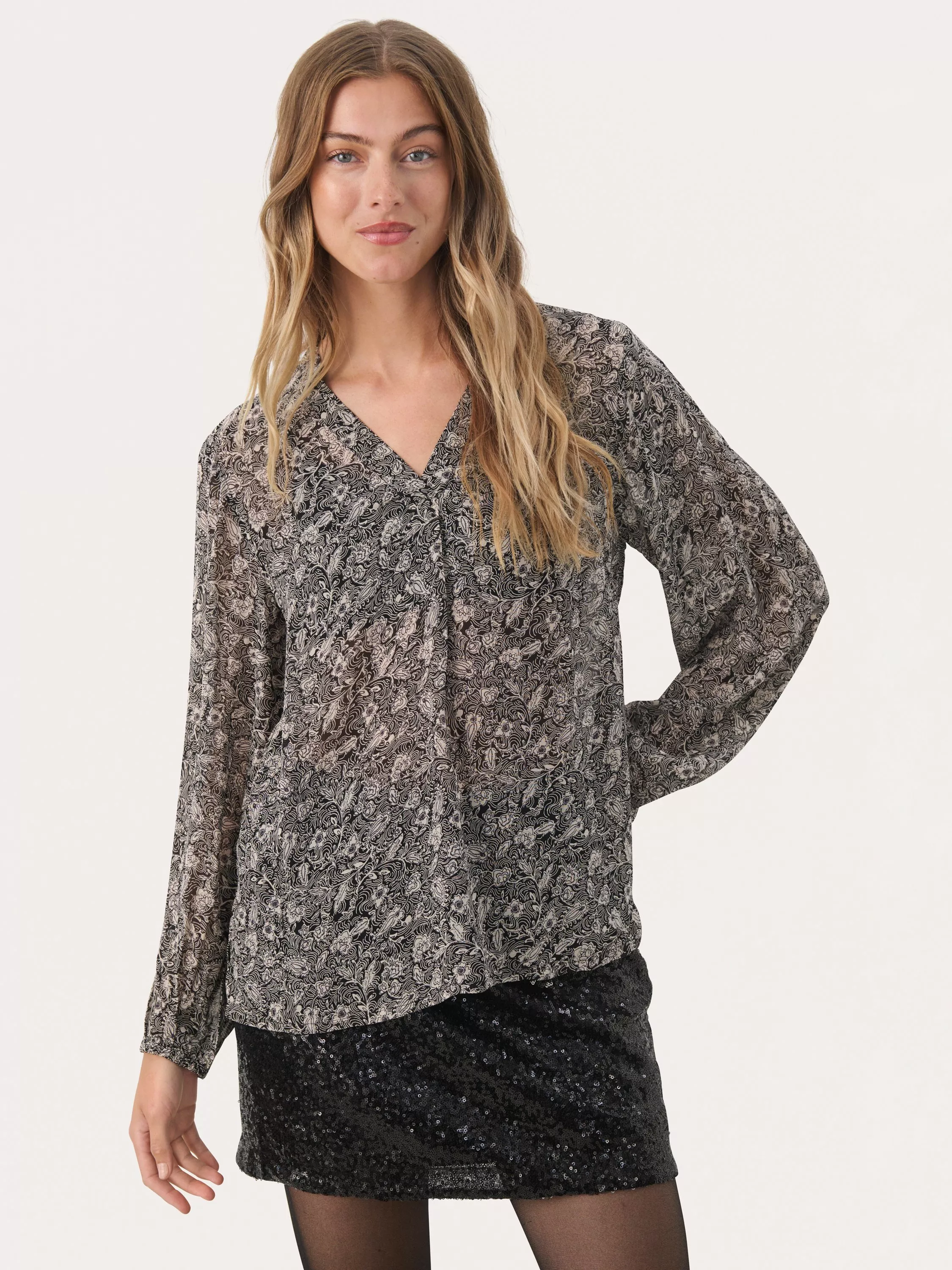 Enhance your everyday wardrobe with the stylish Ditte Blouse. Featuring a charming leaf print and a comfortable regular fit, this V-neck blouse pairs seamlessly with both office attire and casual weekend looks.