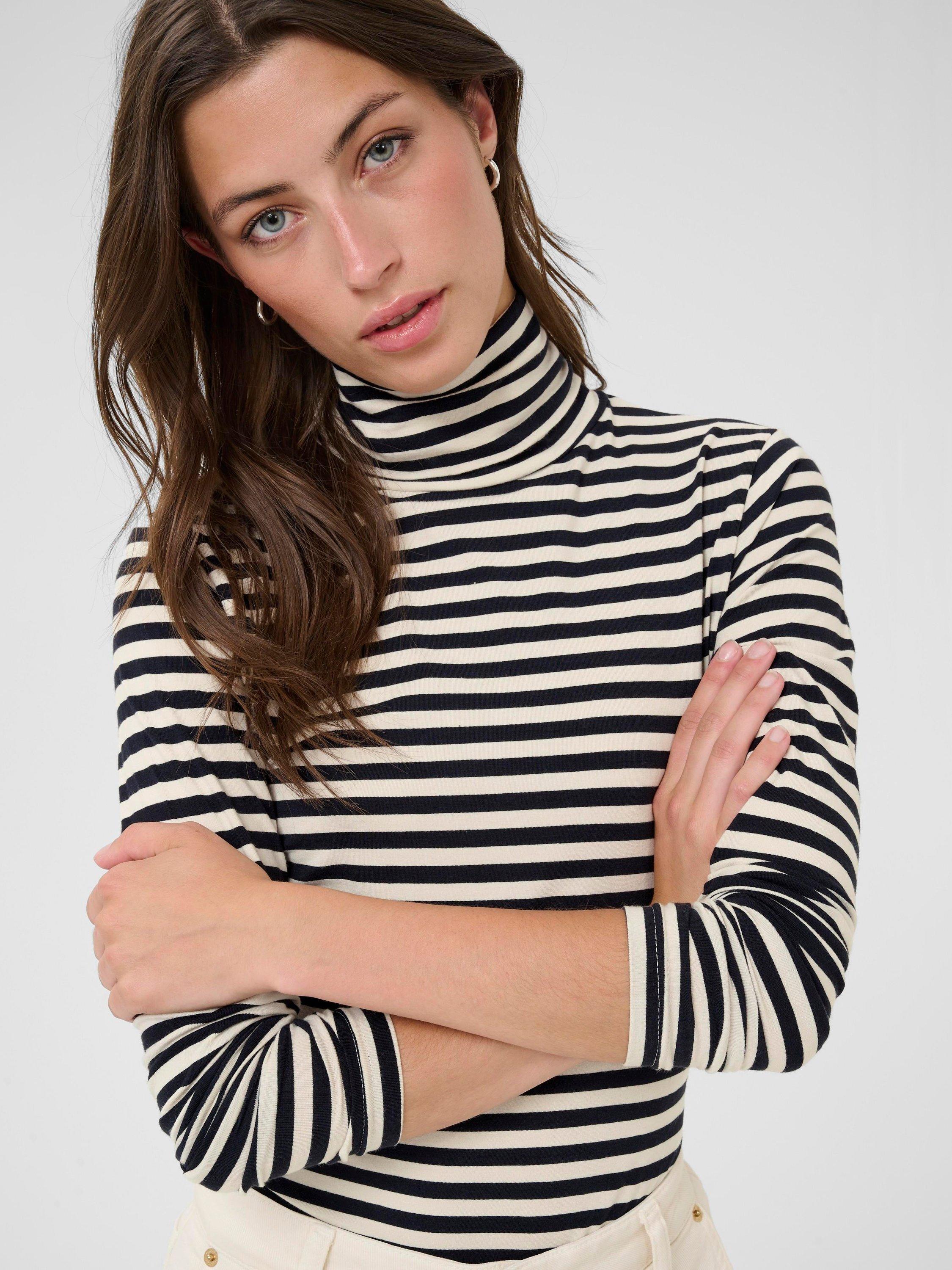 This striped roll-neck T-shirt by Part Two adds a lively touch to your everyday look. The slim fit moves with you, offering all-day comfort that never gets in your way, whether you are on the go or relaxing.