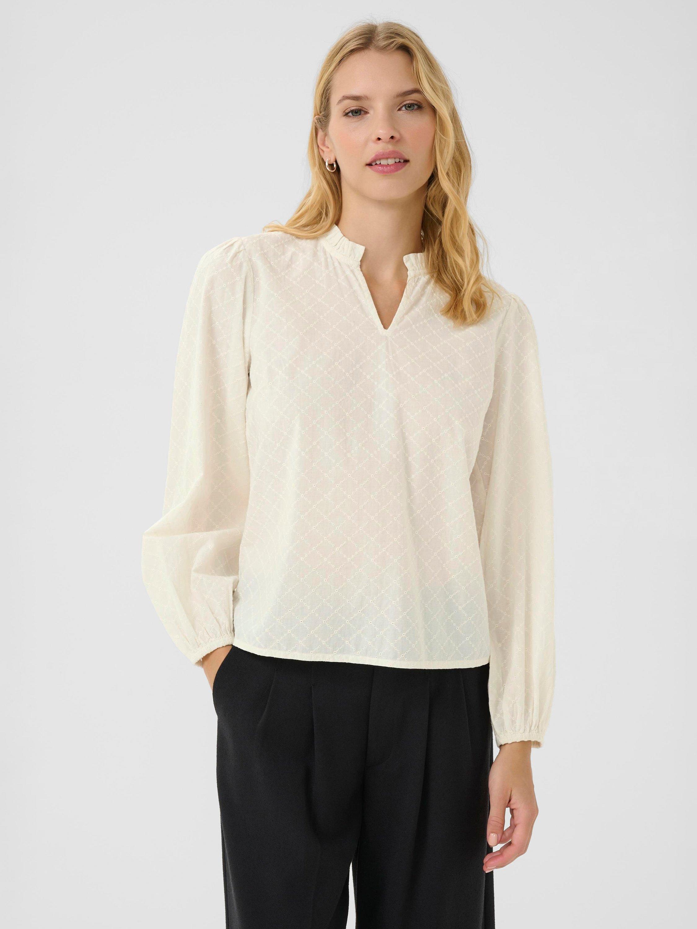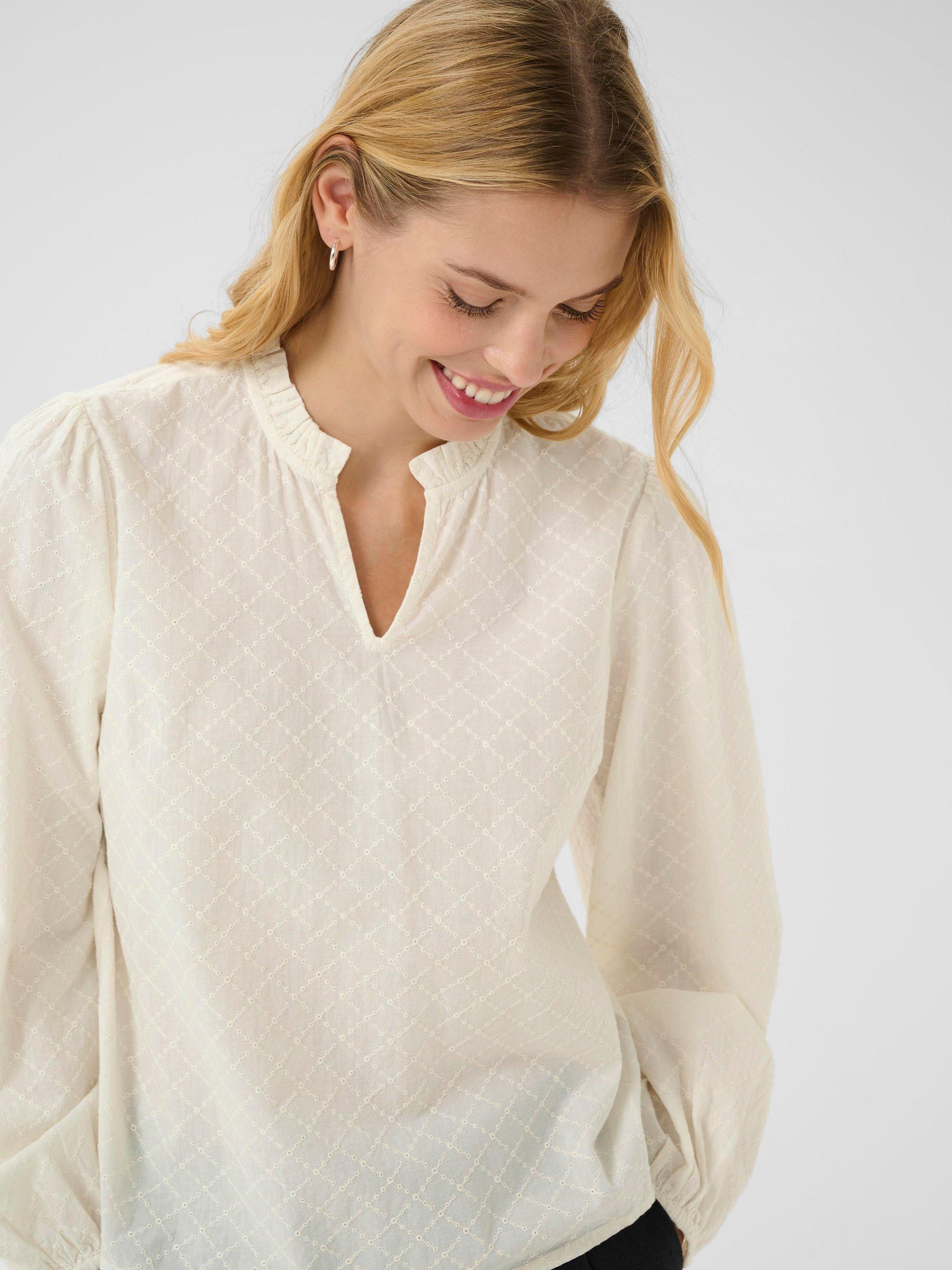 A blouse by Part Two is lightweight and breathable in pure organic cotton. Featuring a V-neck and long sleeves, it's decorated in a geometric print. A wear-everywhere essential.