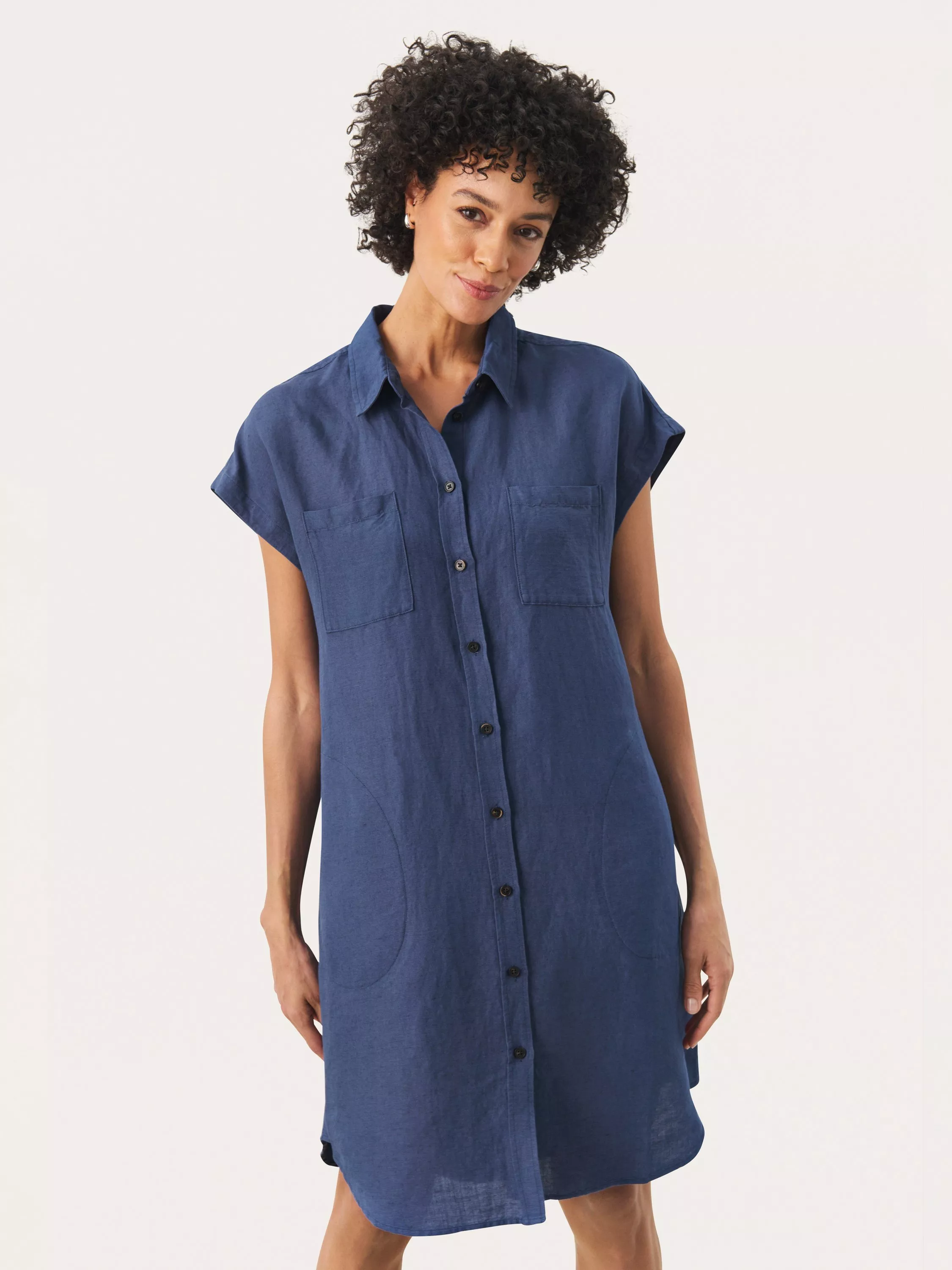 This Part Two shirt dress is a versatile choice for both everyday wear and casual occasions. Made from a lightweight, breathable linen blend, it ensures all-day comfort. The short sleeves and front button closure create a timeless look, ideal for layering or wearing on its own.