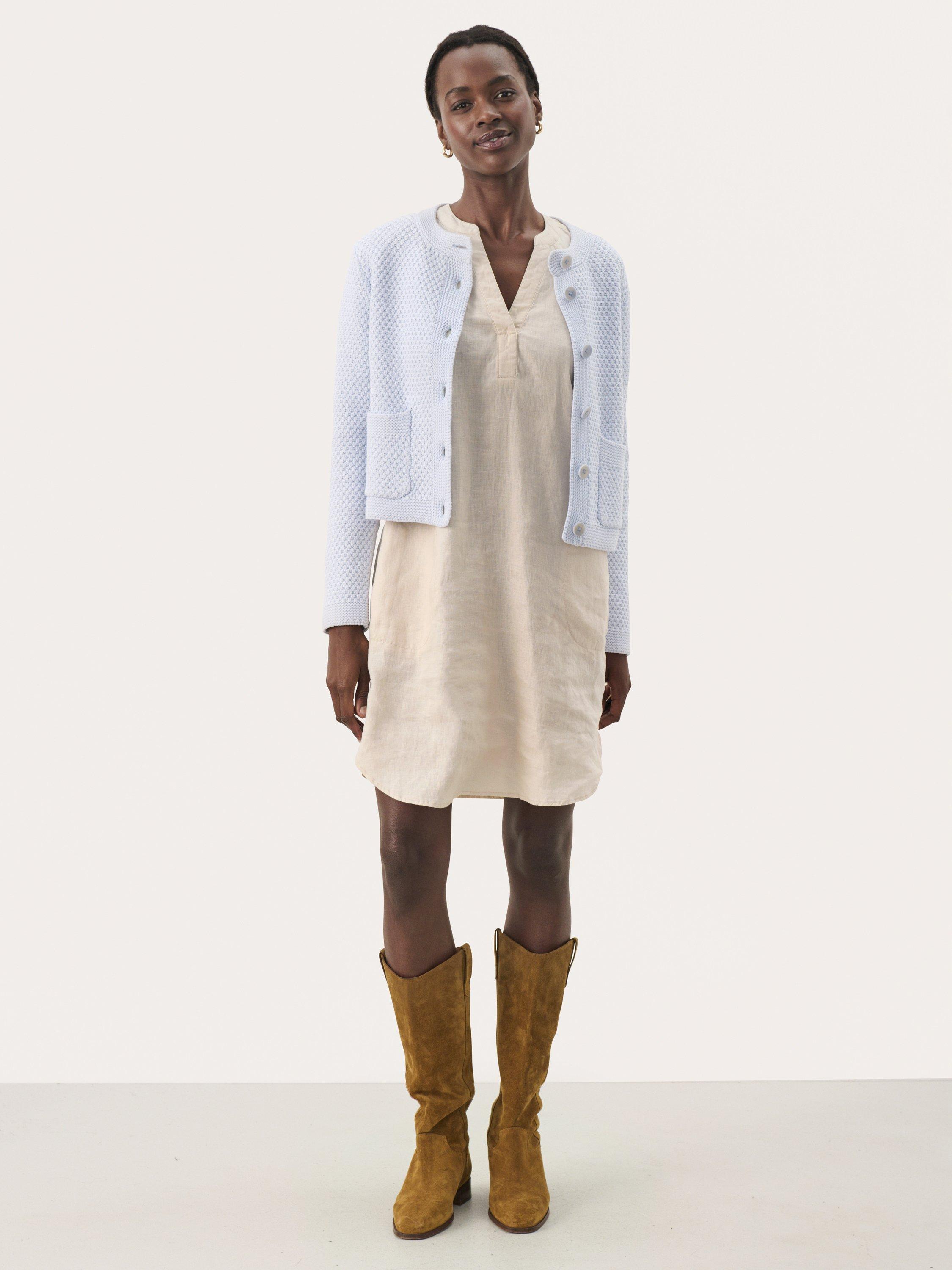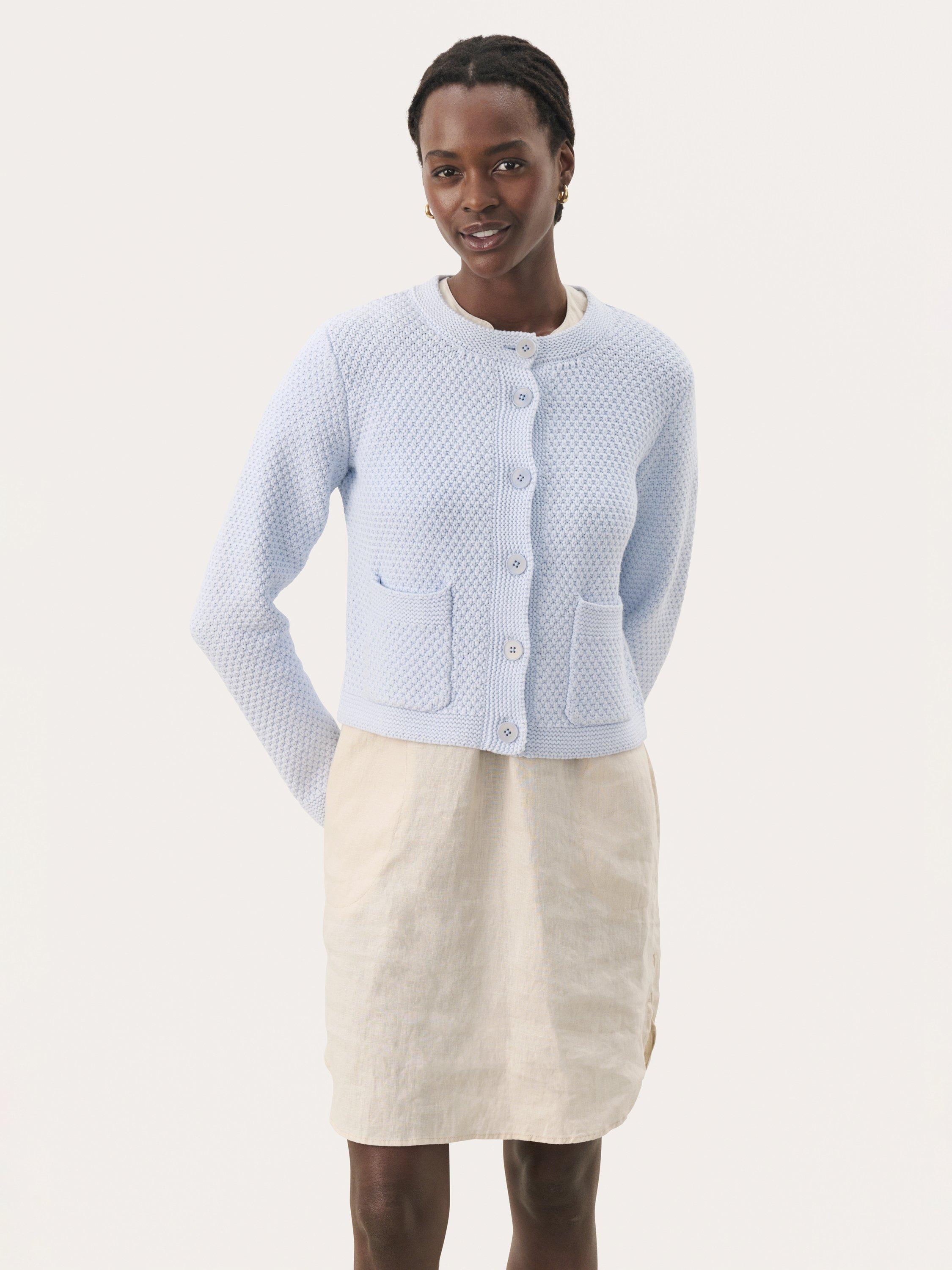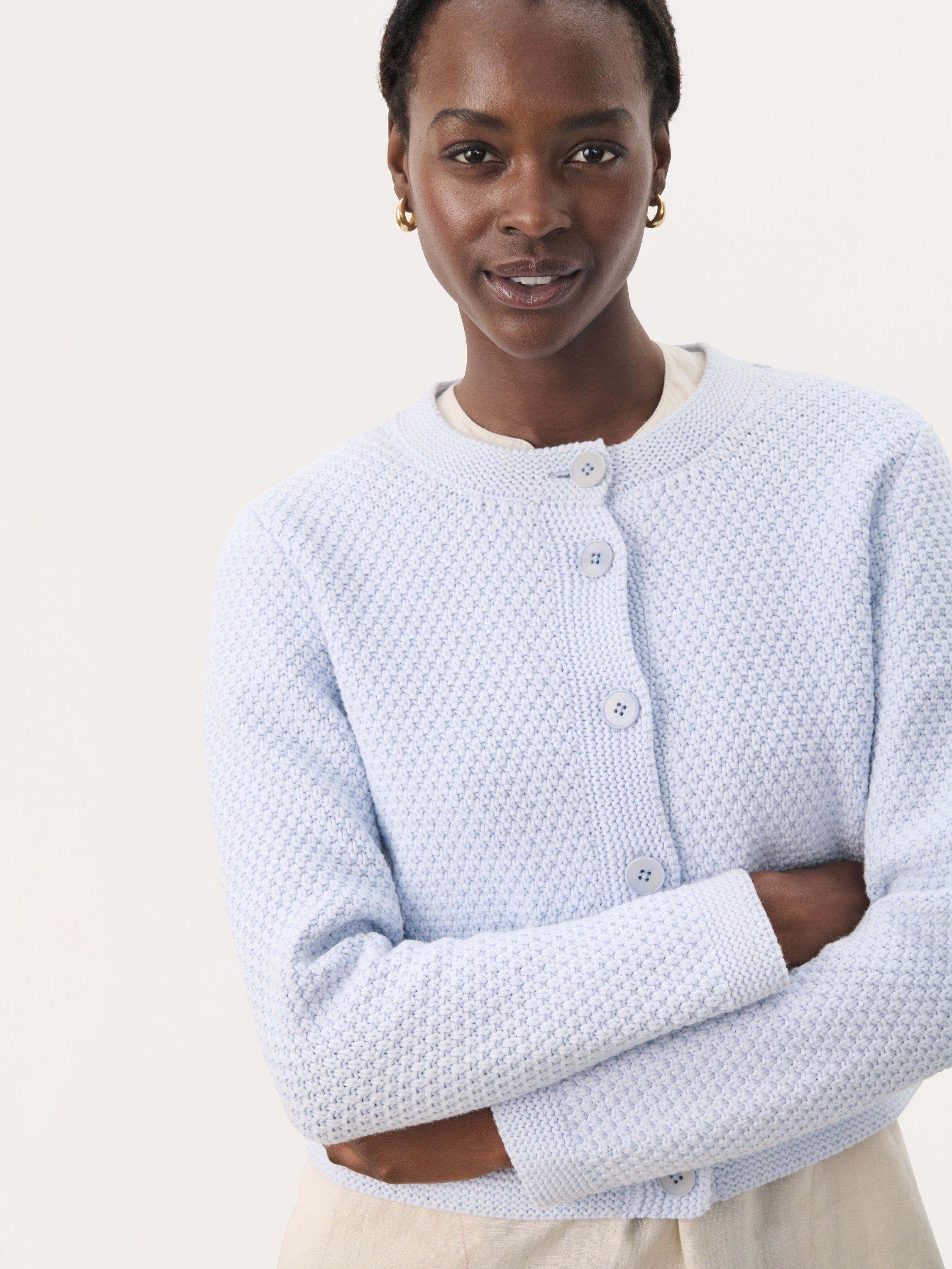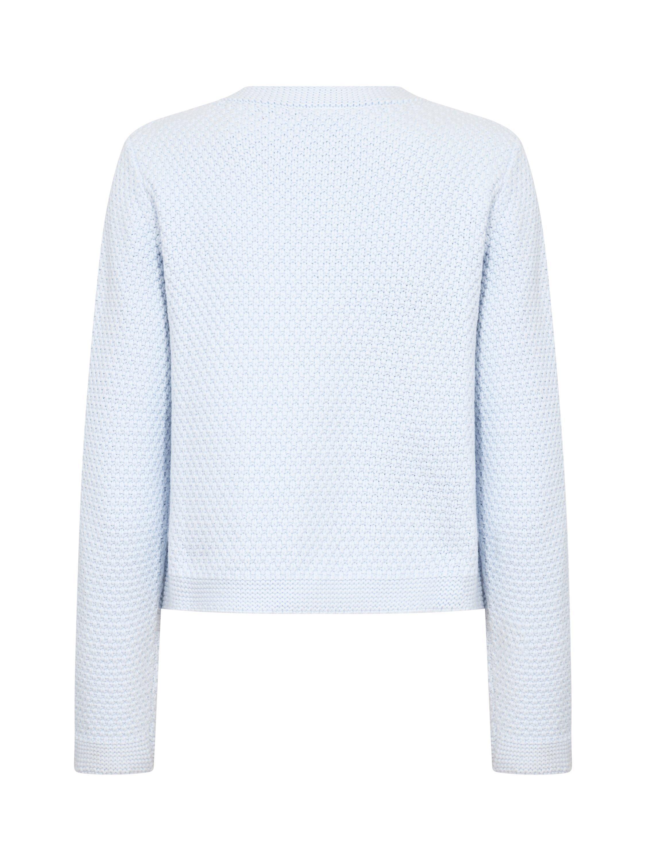 The Elmie textured cardigan with a round neckline is both feminine and versatile. With its classic fit and delicate button closure in the front, it's ideal for layering or as a stylish cover on cooler days. An elegant addition to your wardrobe.