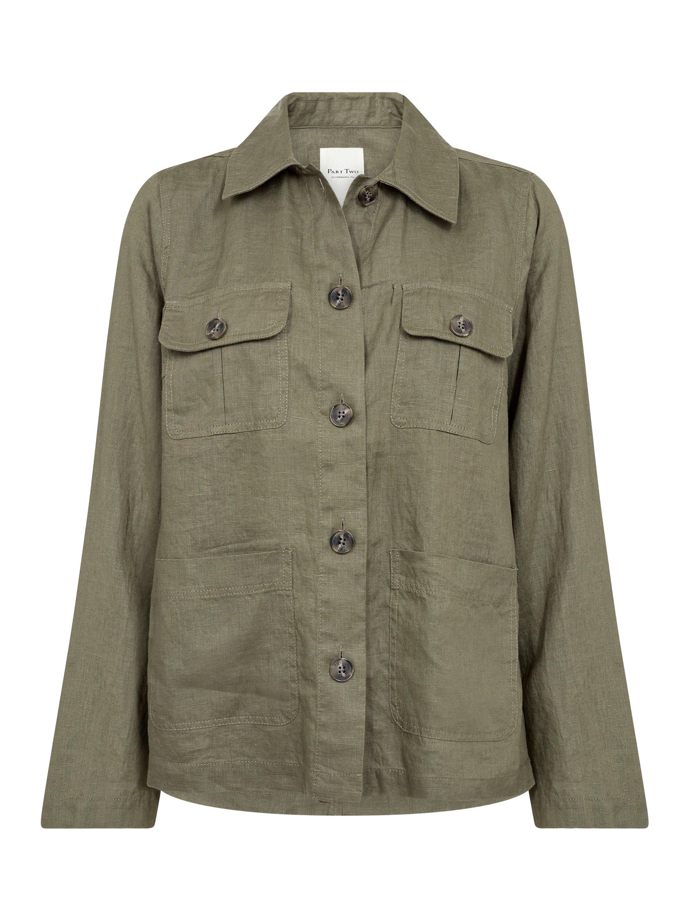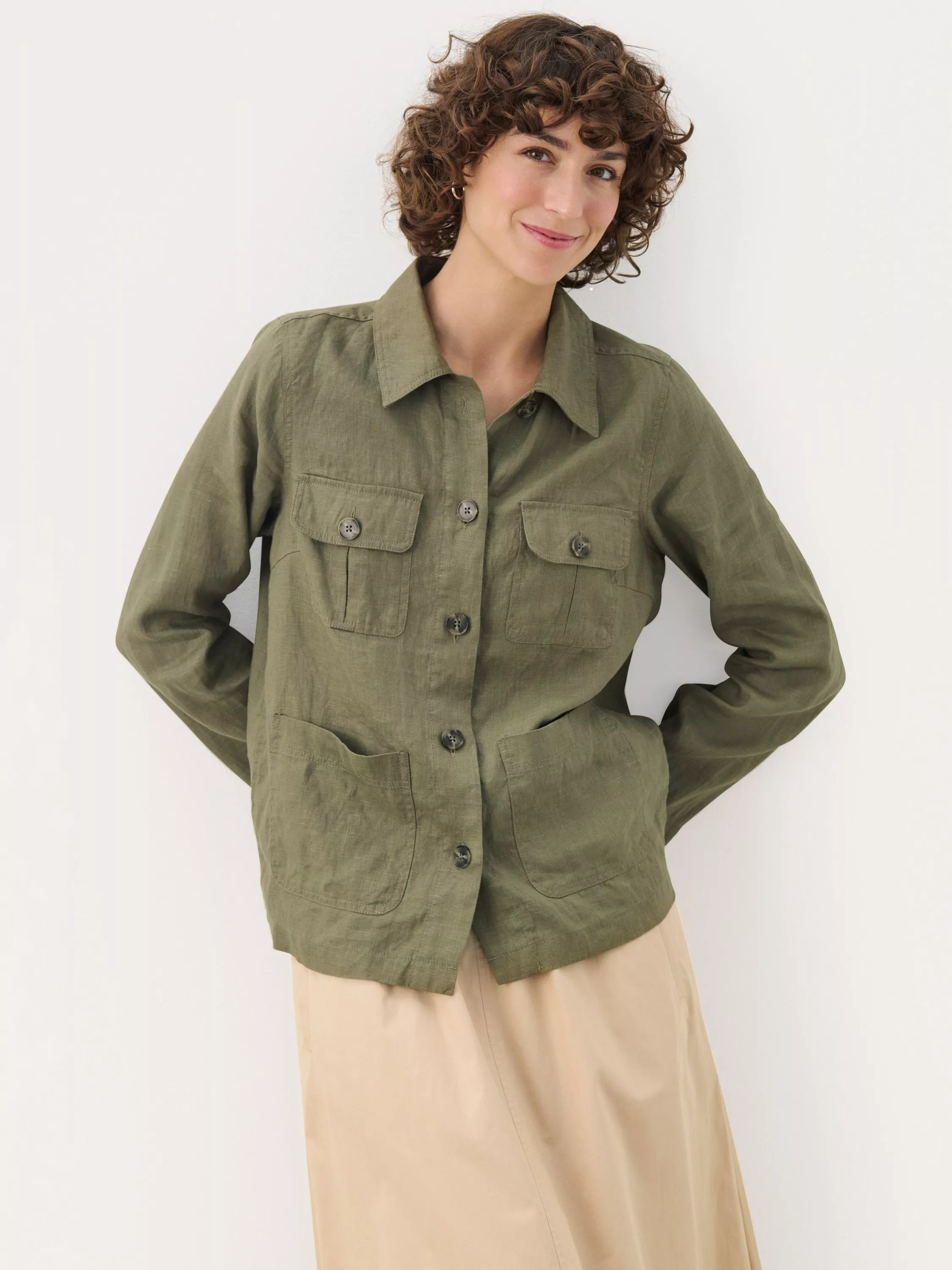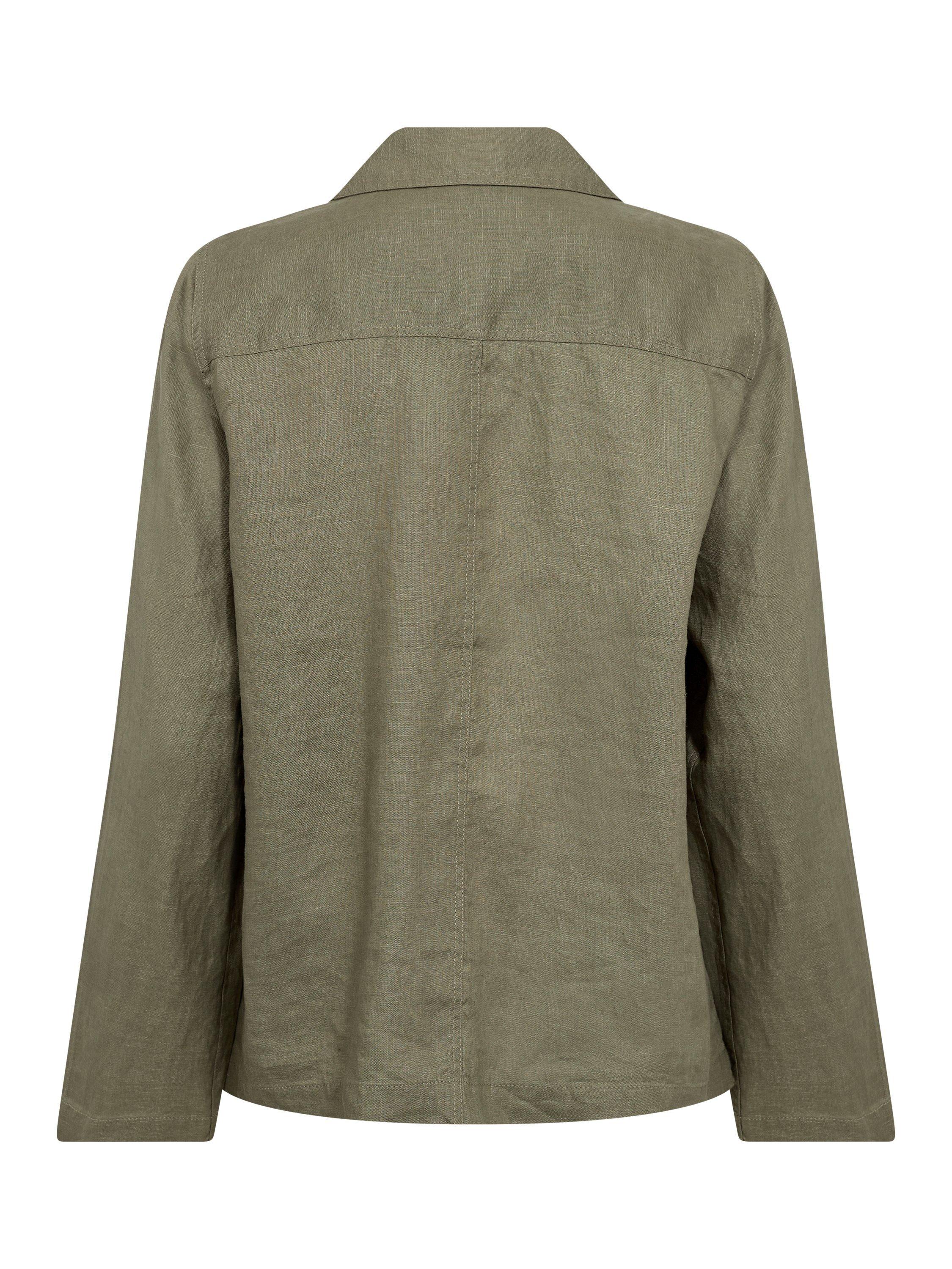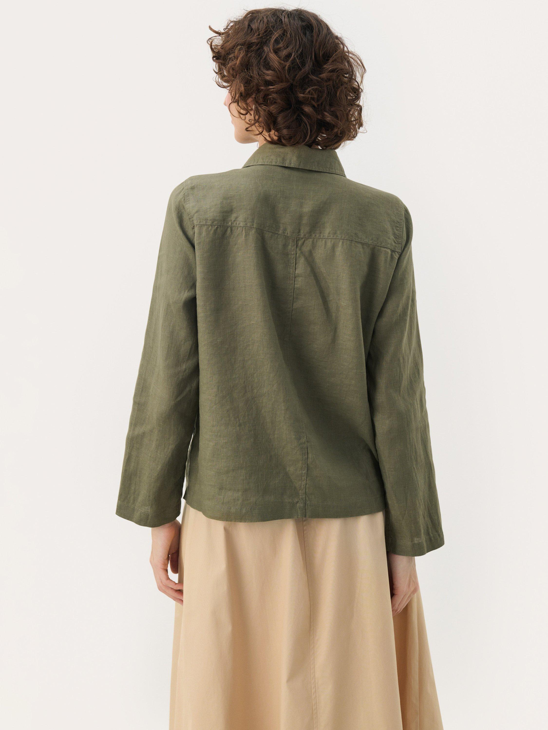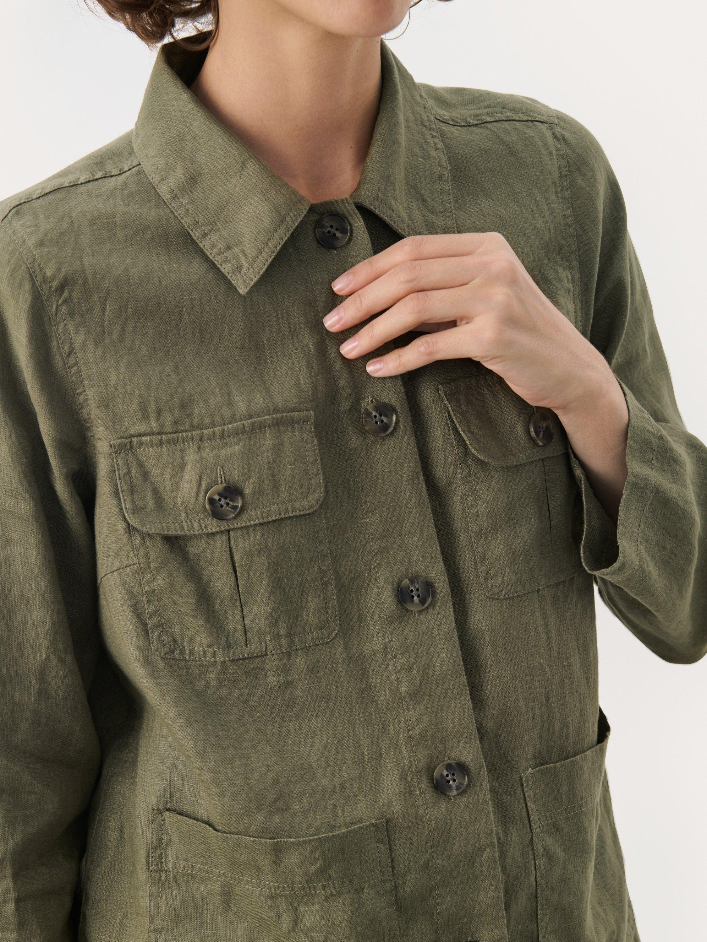 This relaxed Elnora shirt jacket in a soft, breathable linen blend is ideal for layering. Featuring button closure and practical chest pockets, it adds a rugged yet sophisticated touch to your wardrobe. Perfect over a T-shirt on cooler days or as a transitional jacket.