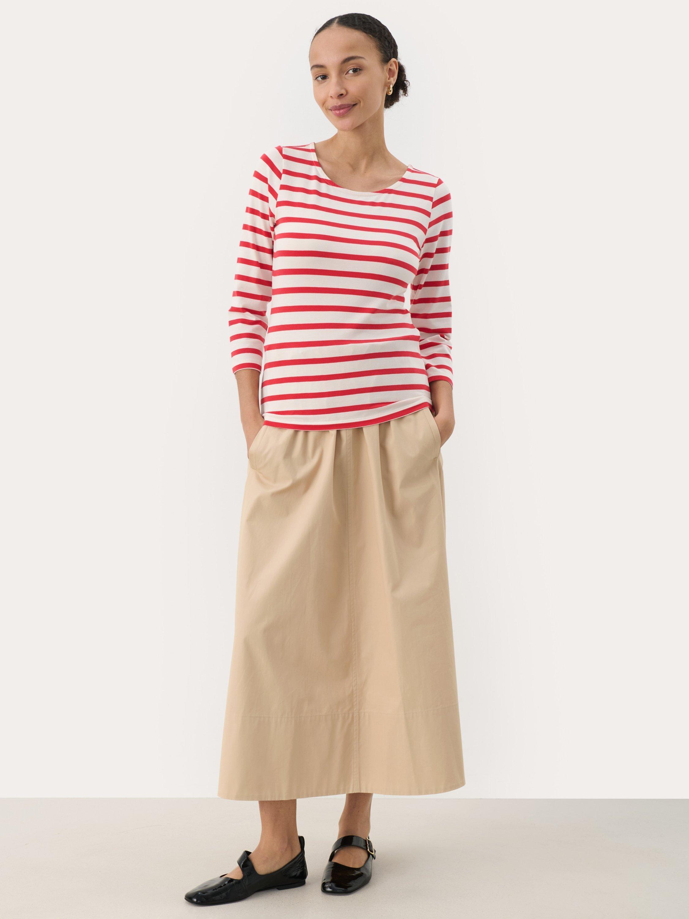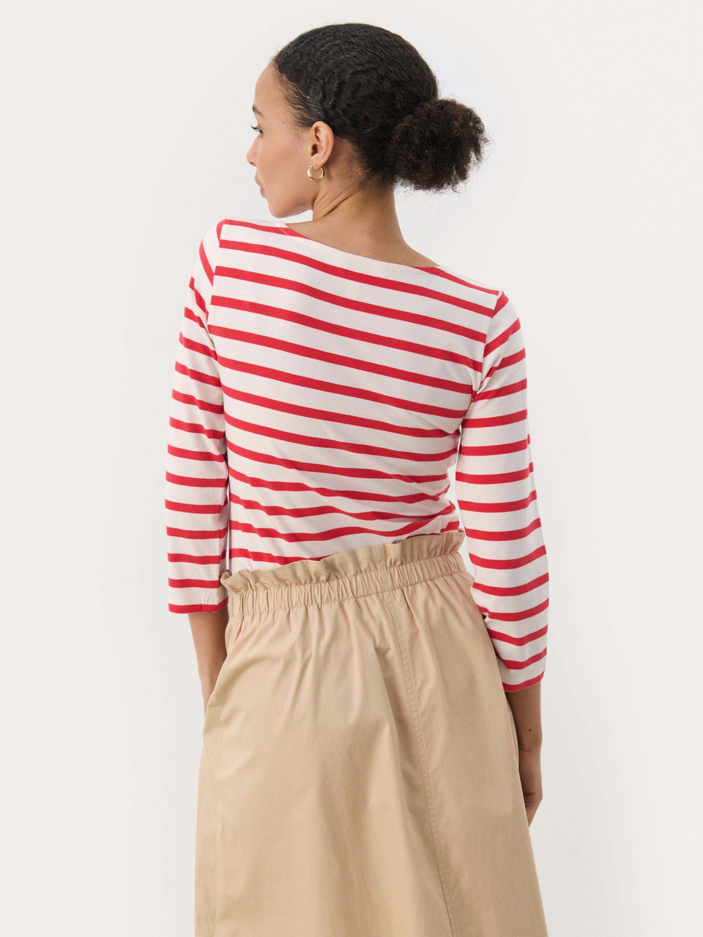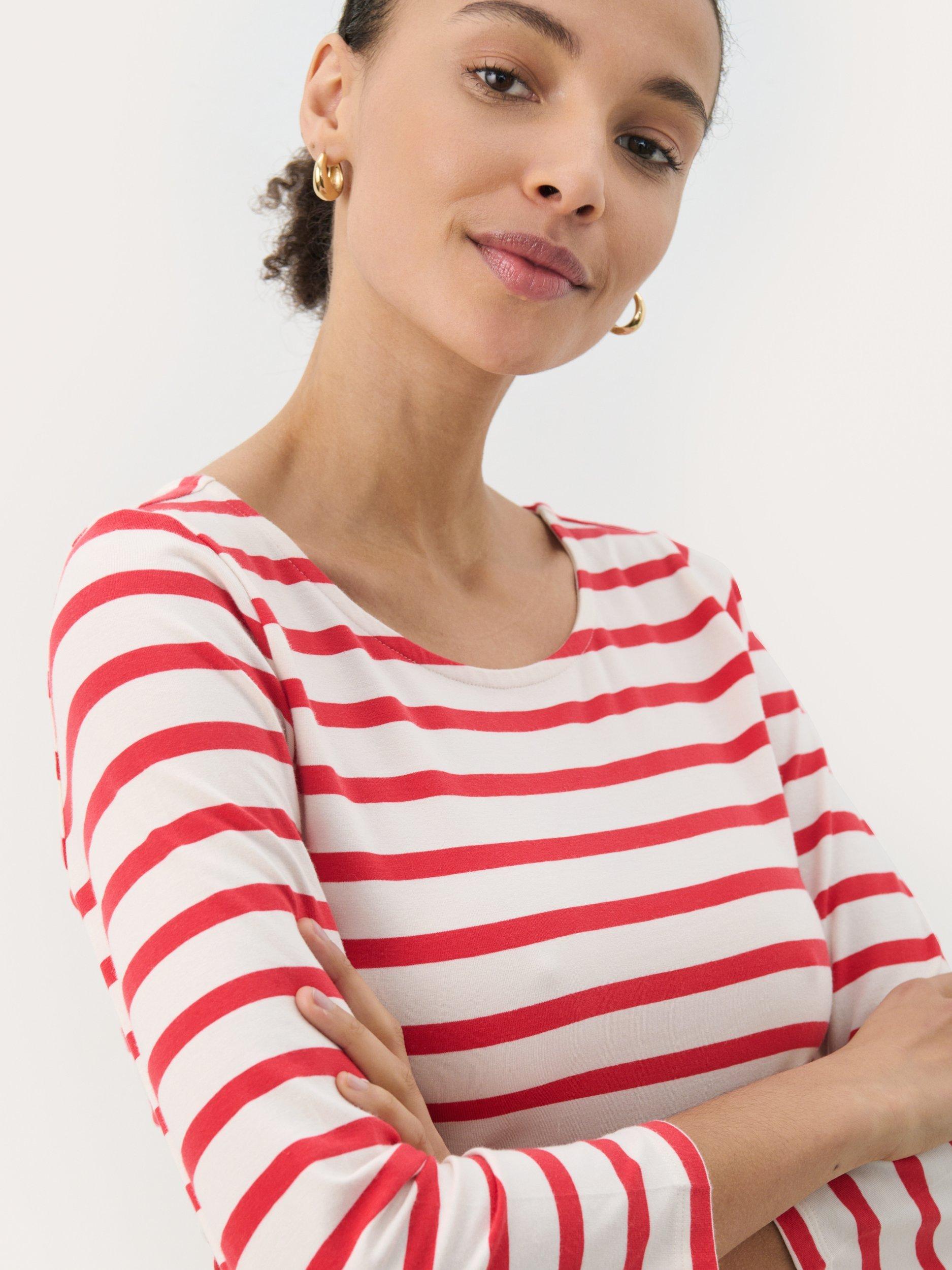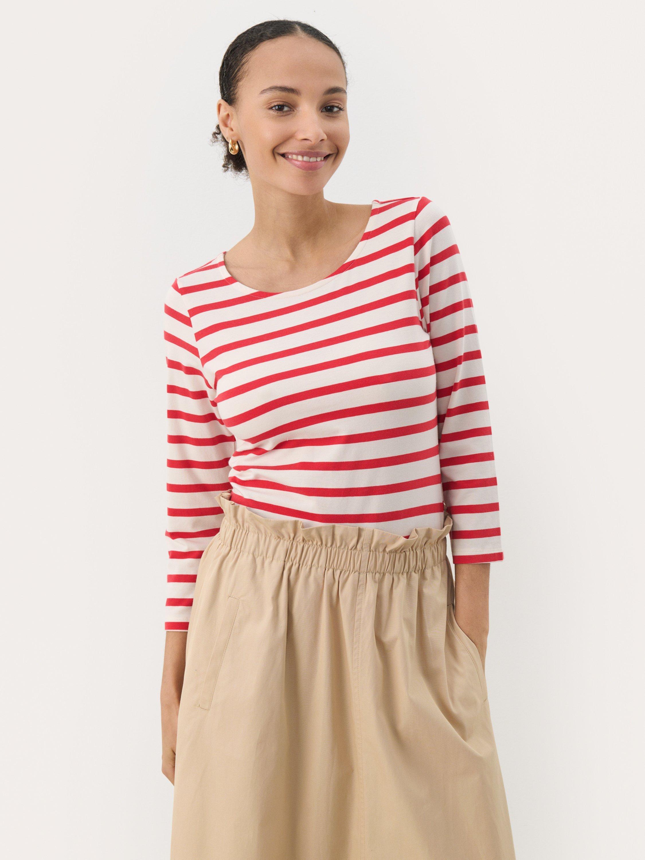 This Emel top with 3/4 sleeves and a round neckline is a timeless basic for any wardrobe. Made from a soft, stretchy fabric that ensures comfort and an elegant fit. Perfect for layering or wearing on its own for a simple, classic look.