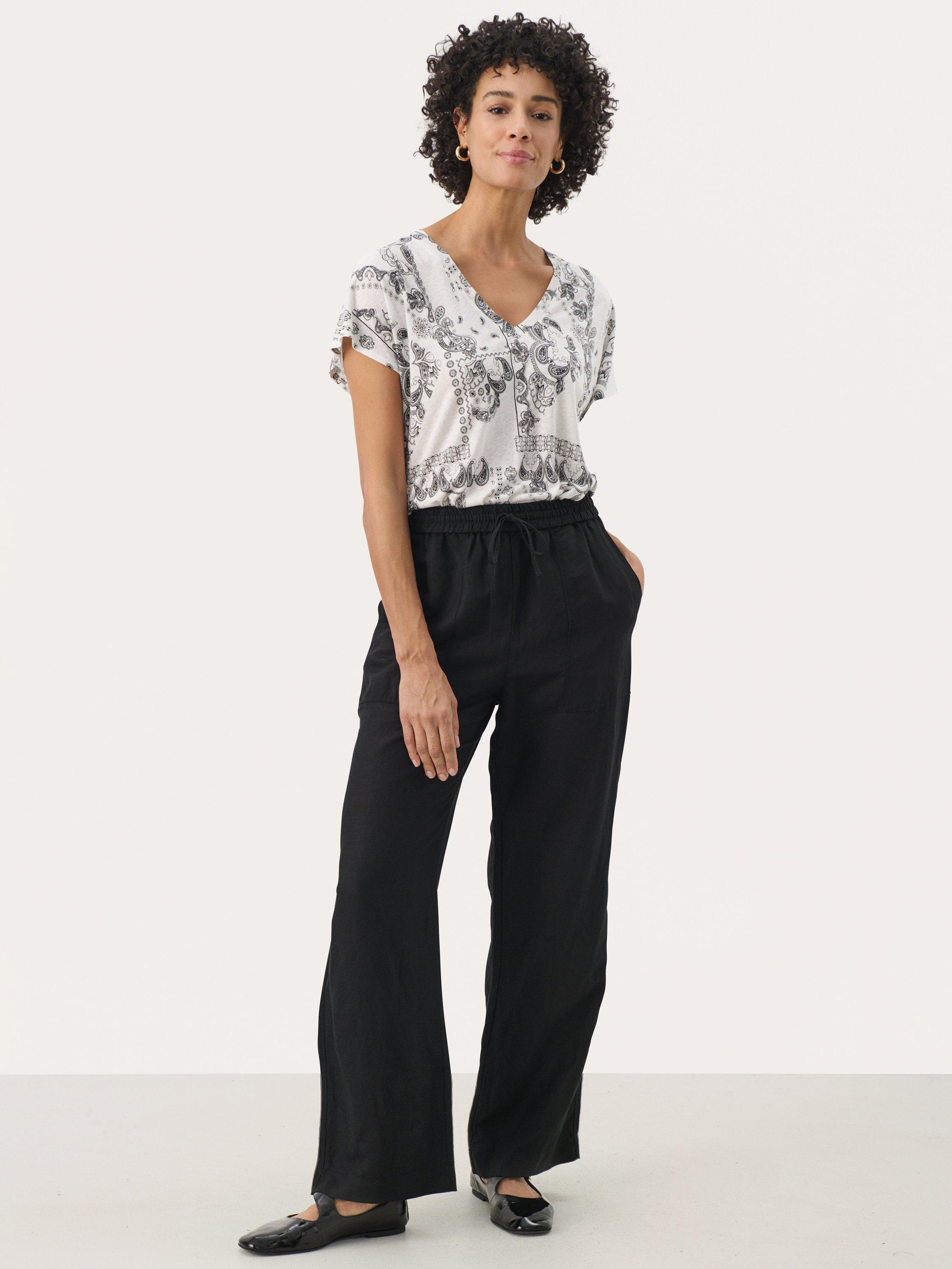 These Eniola trousers in a lightweight linen blend feature a relaxed fit with an elasticated waist and wide legs for maximum comfort. Practical side pockets and a timeless design make them ideal for everyday wear and casual outings. Style with a simple T-shirt for a natural look.