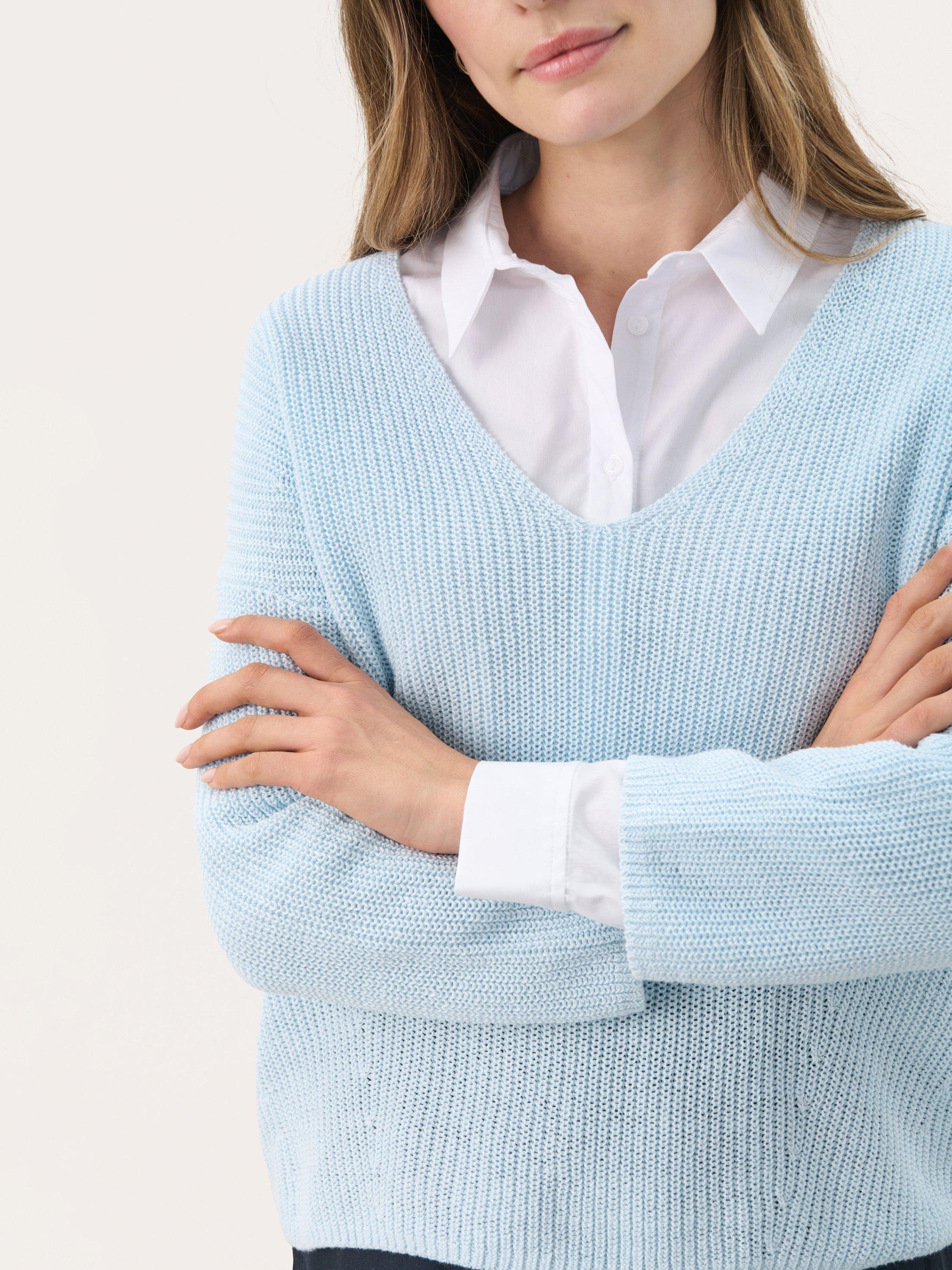 This Etrona knit with a lovely, relaxed fit and delicate V-neckline is perfect for cosy days. The lightweight fabric and three-quarter-length sleeves make it ideal for both spring and autumn. Style with jeans for a casual look or layer over a dress for added warmth.