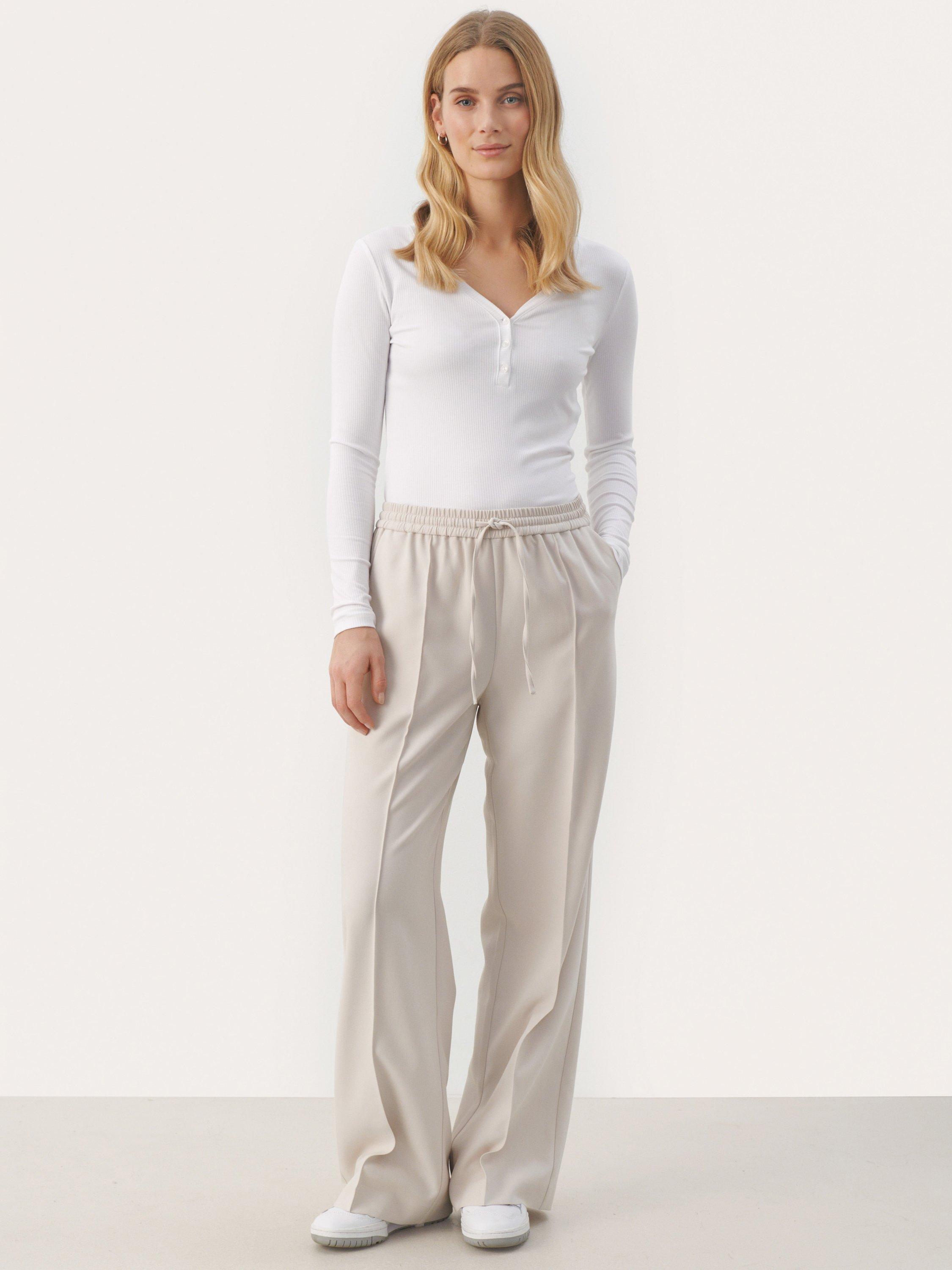 These Evalynn trousers combine style and comfort with their wide, relaxed fit and adjustable waist. The lightweight, airy fabric makes them perfect for both casual days and more sophisticated looks. A must-have for your wardrobe.
