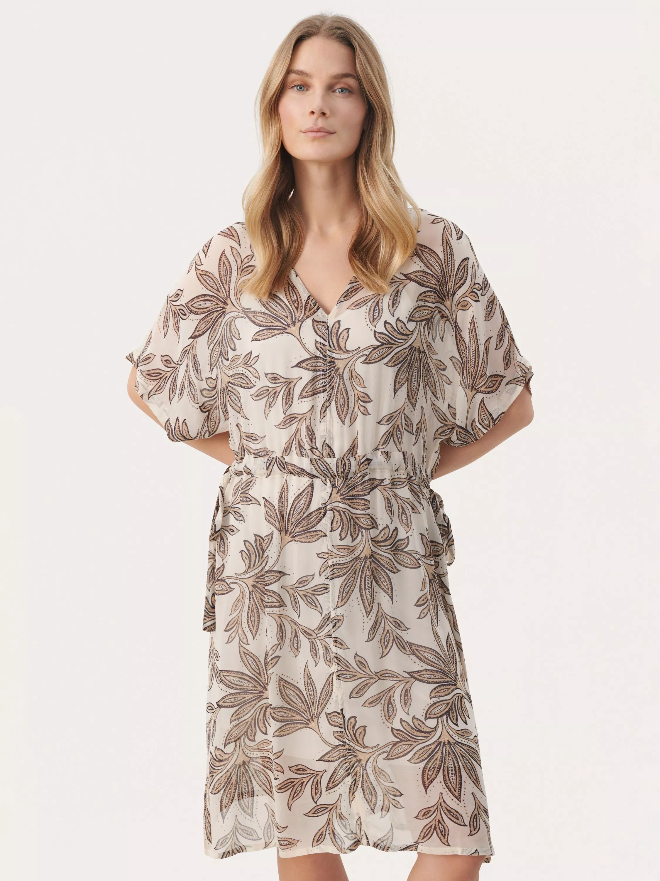 Opting for simplicity at its best, this midi dress from Part Two is crafted from an airy viscose fabric. With a fuss-free but smart v-neckline and short sleeves, it is scattered with a leafy print.