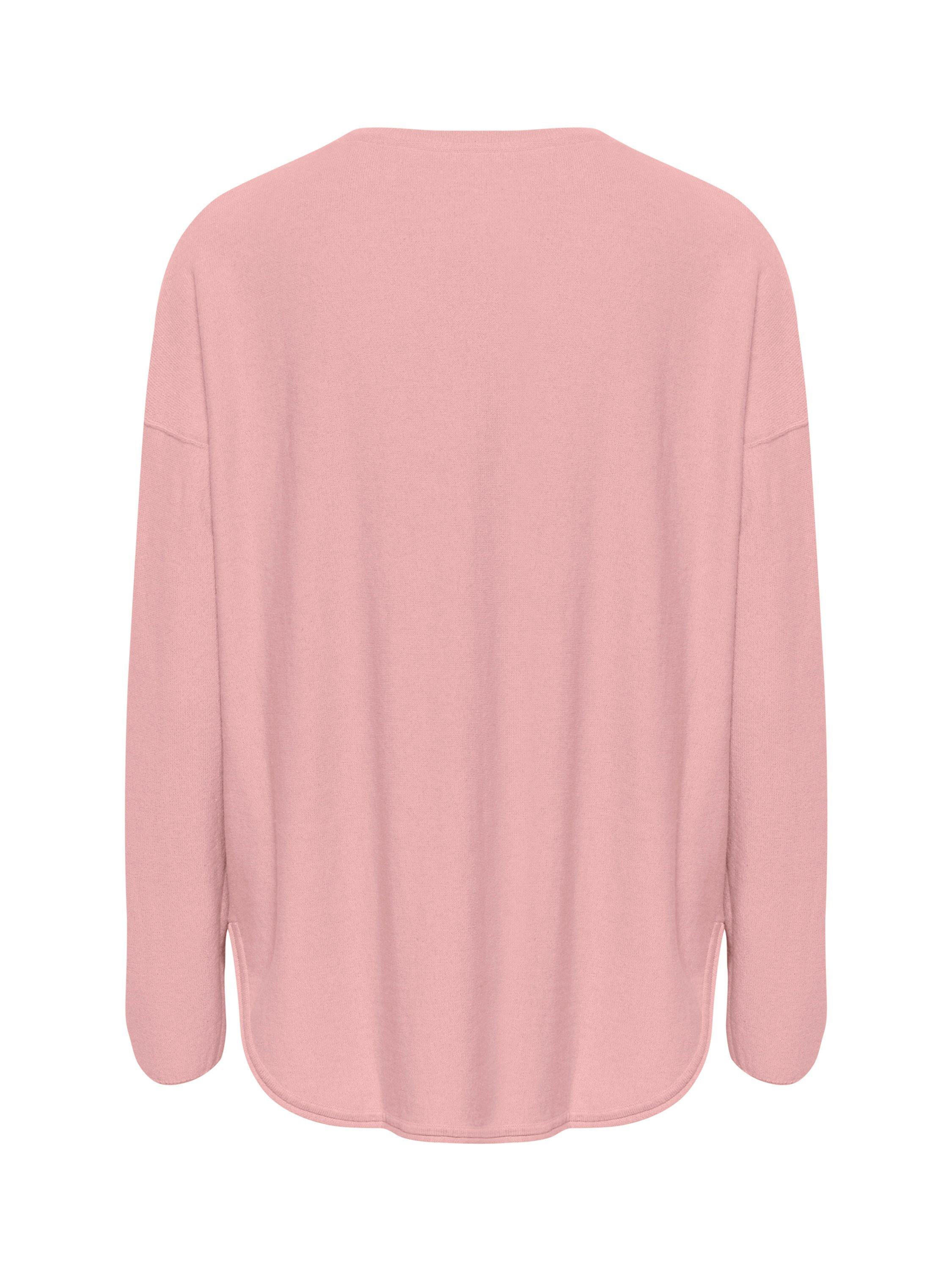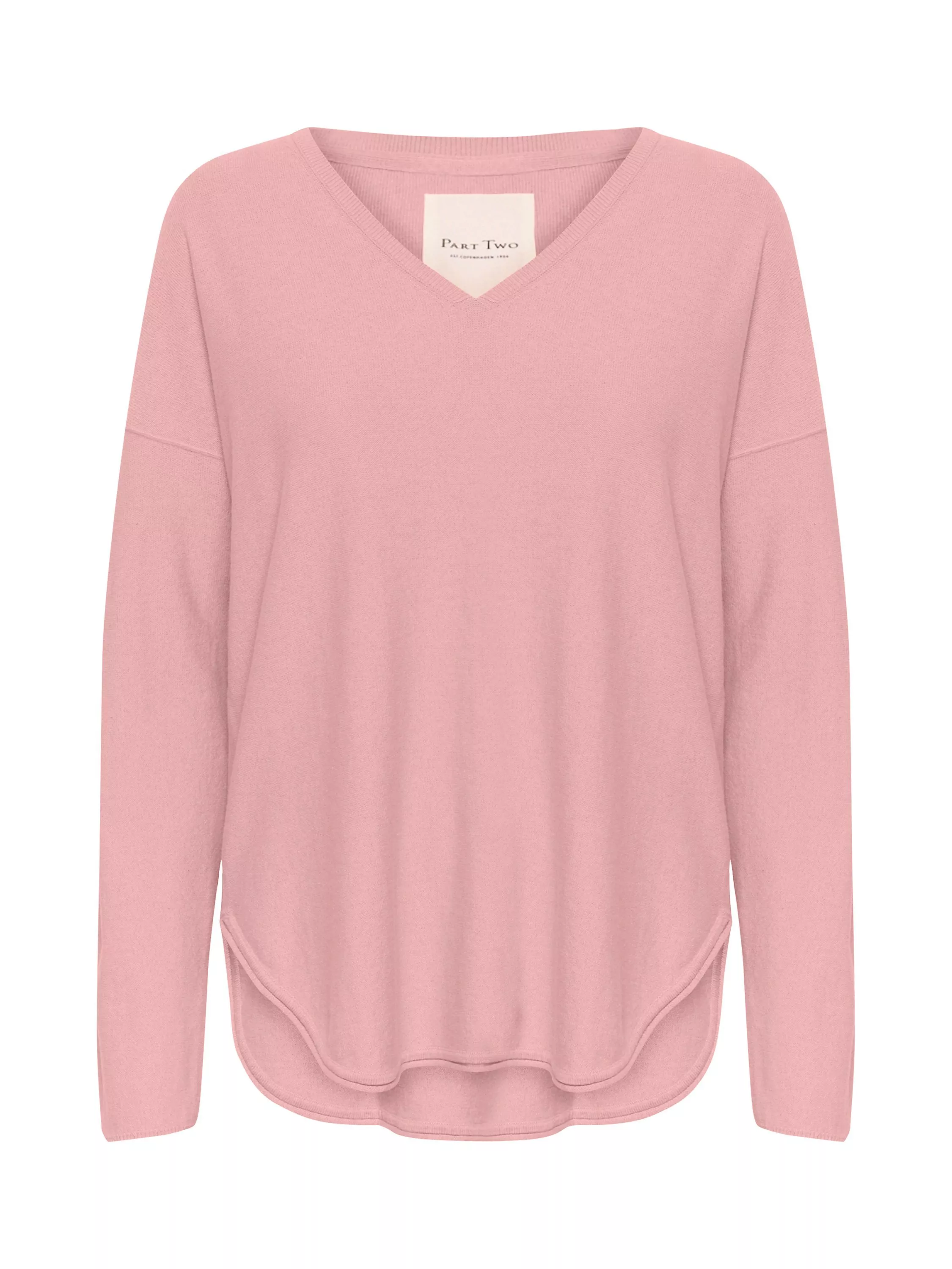 The Iliviasa pullover is a soft and simple style with lots of styling options. It has a wide V-neck and a casual fit with drop shoulders, and it is made in a light and tight knit. The sleeves are long, and the pullover is cut at the hips and has a rounded split hem.