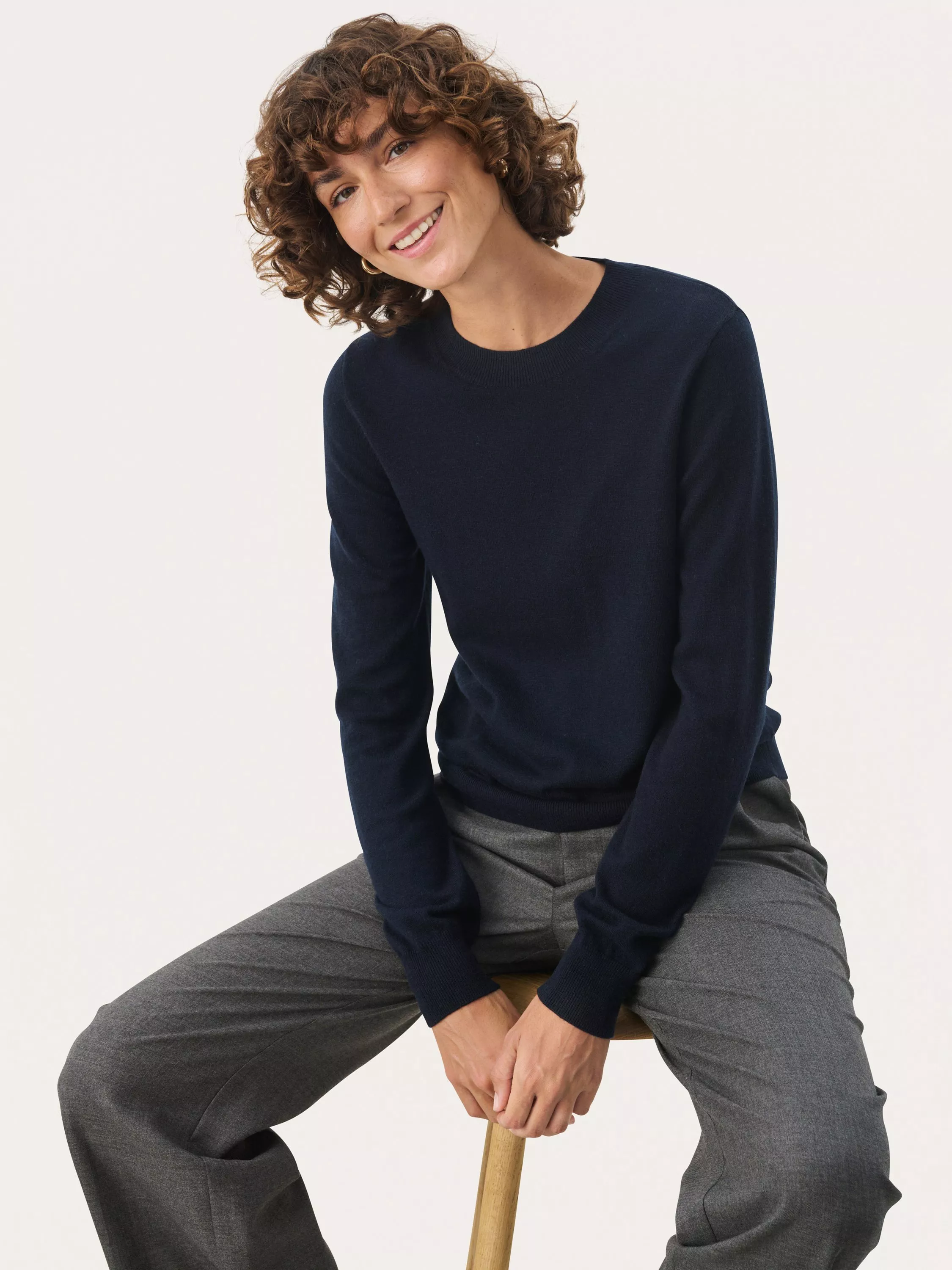The Jaylyn pullover is a simple and casual everyday style and a great match with both trousers, jeans, and a skirt. It has a round neck and a casual fit, and it has rib edges. The sleeves are long with a tapered fit, and the pullover is cut at the hips.
