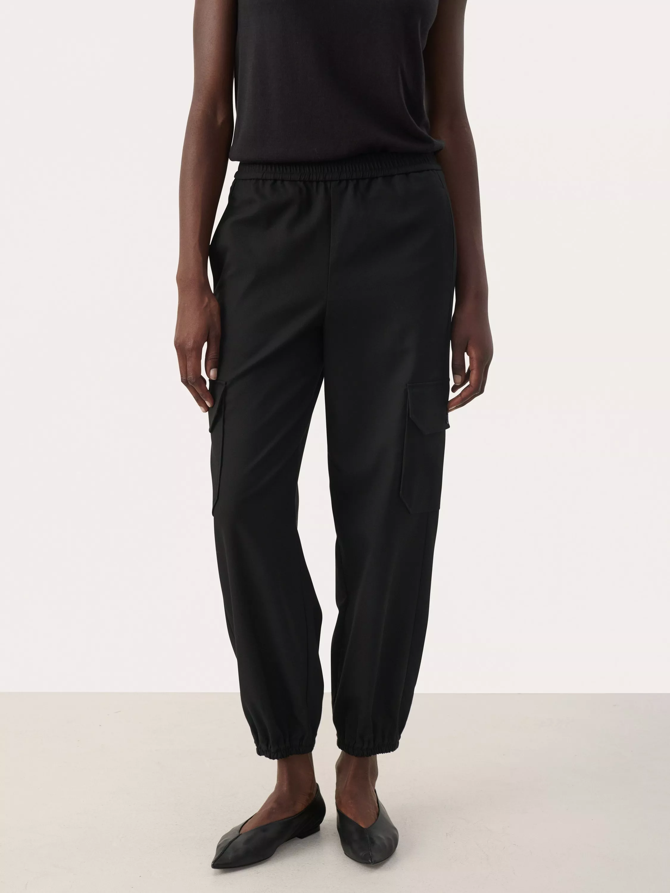 The Jenine comfortable cargo pants with a relaxed fit and practical side pockets. The soft material and elastic waist and ankles provide a sporty look and high comfort. Perfect for everyday wear - pair them with a T-shirt or sweatshirt for a casual style.
