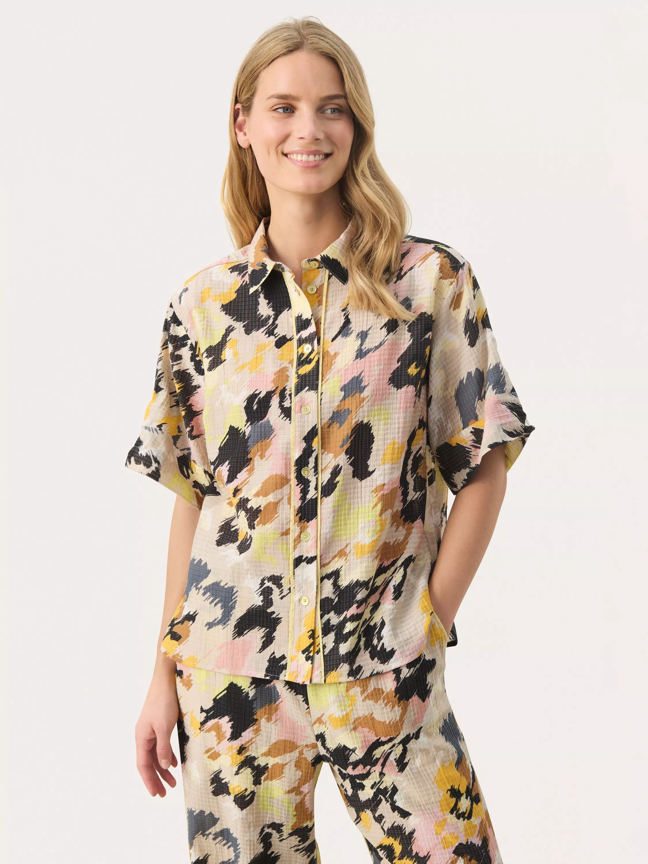 Bringing a neat addition to your wardrobe, this blouse from Part Two adds impact with its eye-catching abstract pattern. Framed with a collar neckline and short sleeves, it is made from a light yet durable fabric and is ideal for relaxed daytime wear.