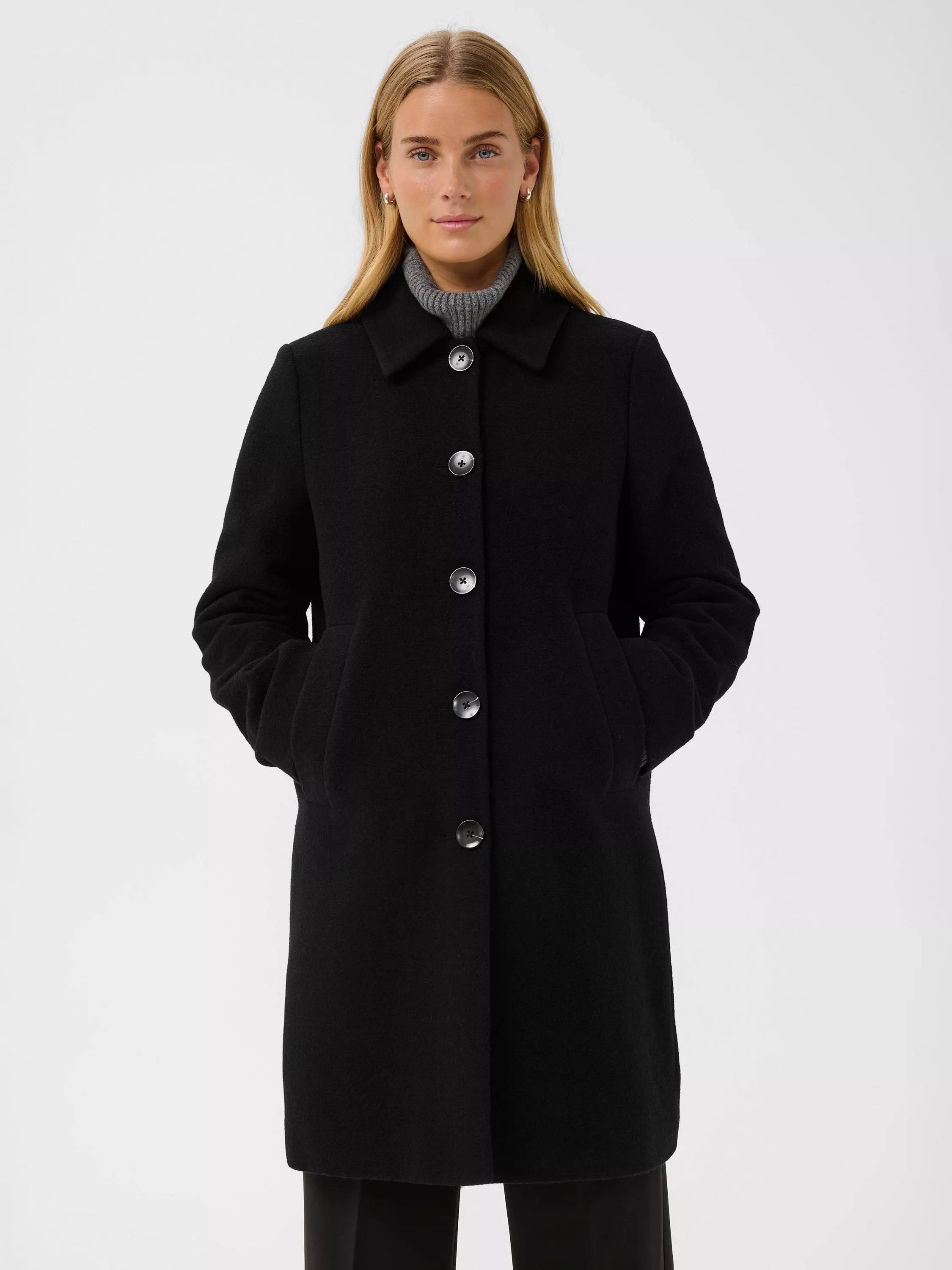 The Kamillas Coat is the perfect choice for a refined and timeless style. The elegant, clean lines, classic collar, and discreet button closures give it a sophisticated look that easily transitions from the office to the city. Wear it with anything from jeans to a dress to complete your outfit.