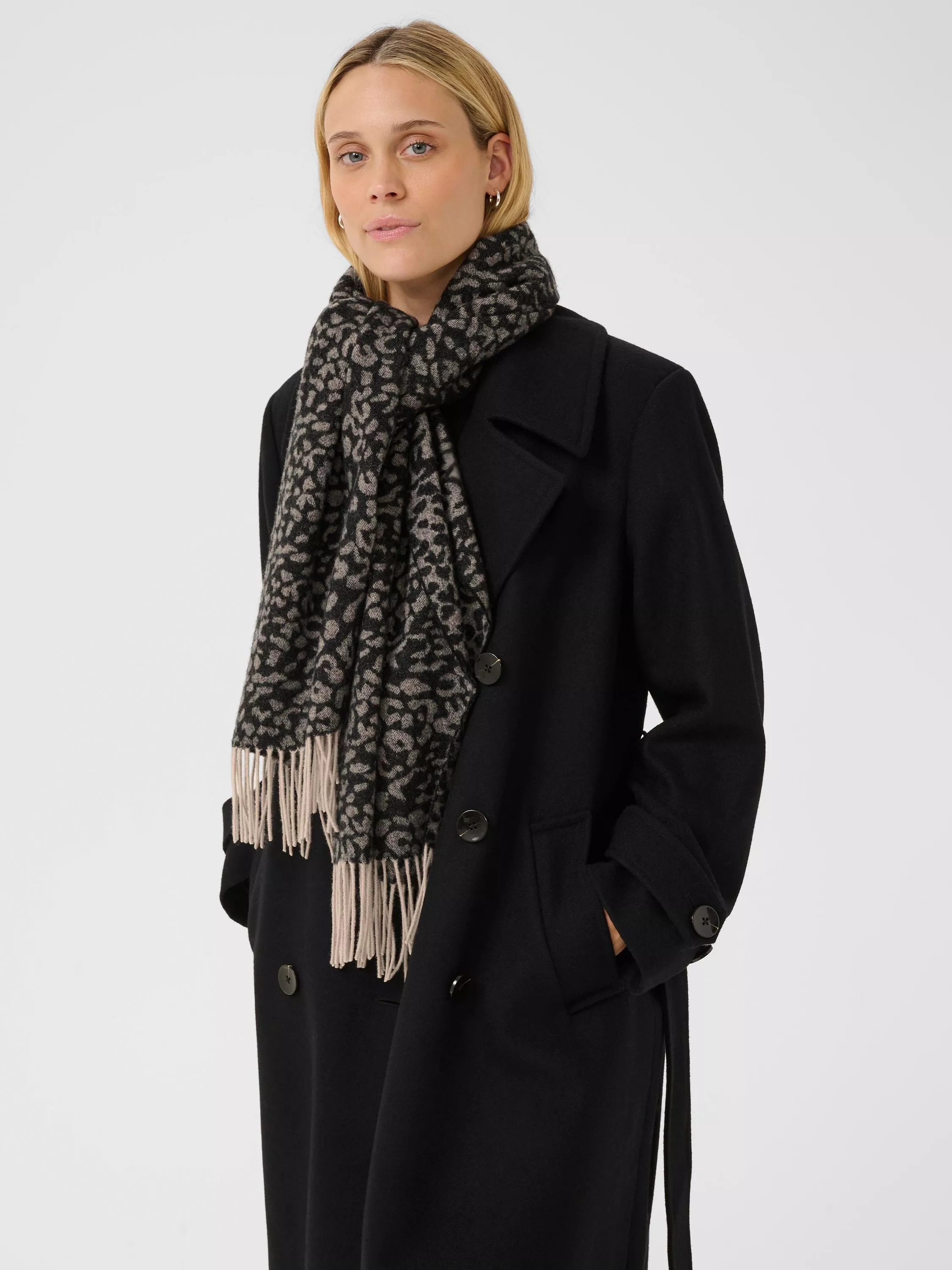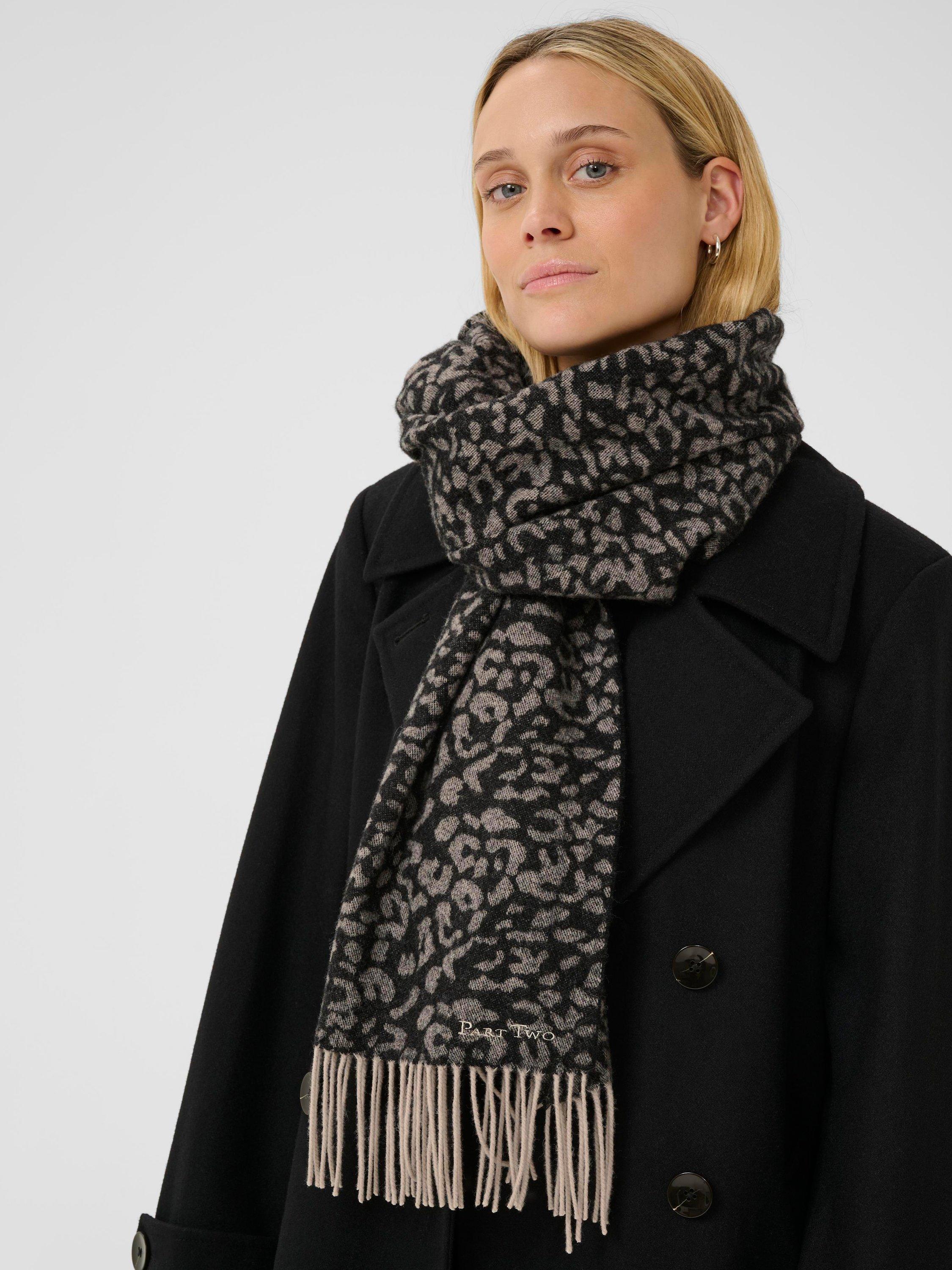 The perfect way to beat the chill, this woollen scarf from Part Two features a striking animal print.