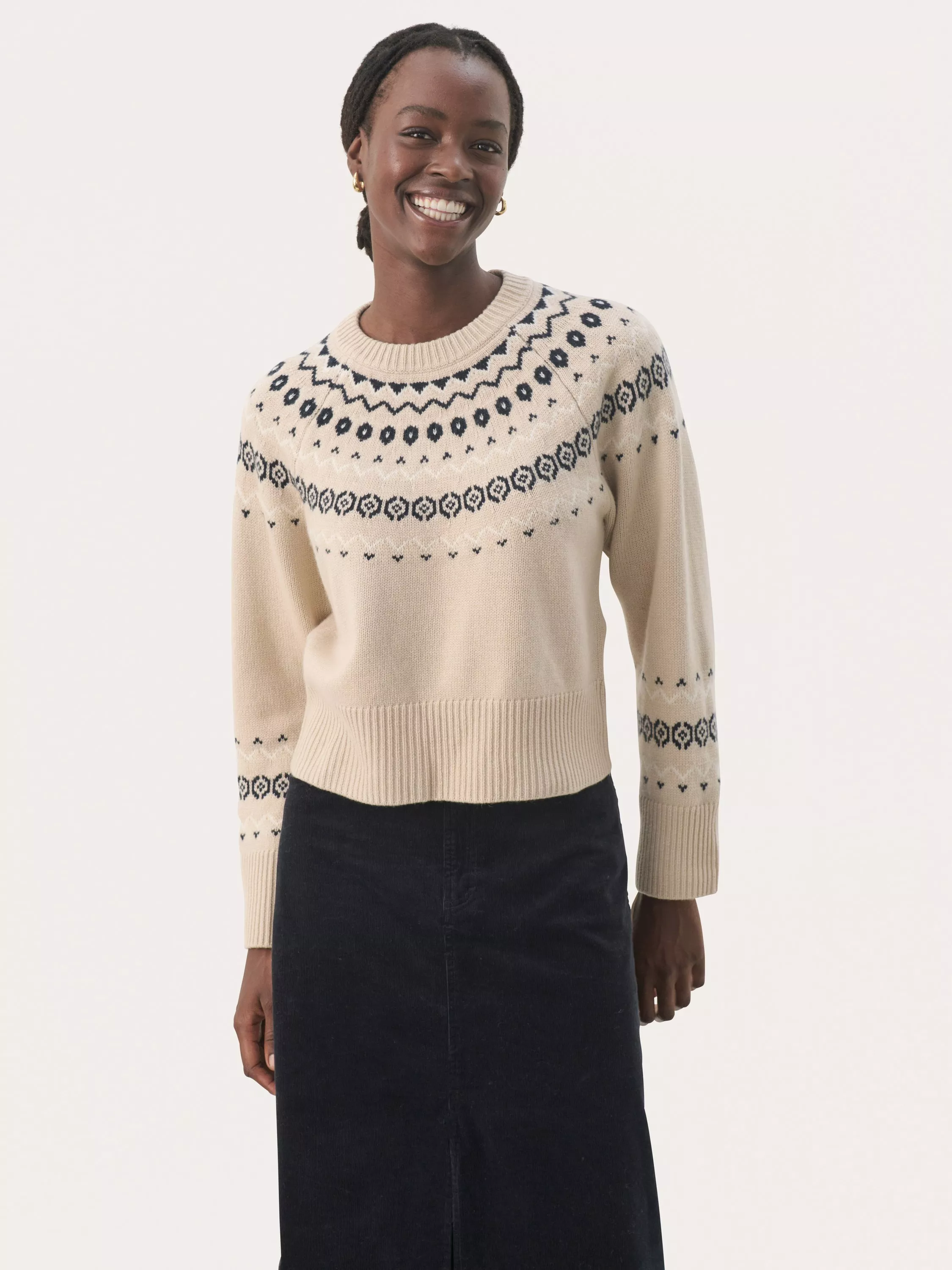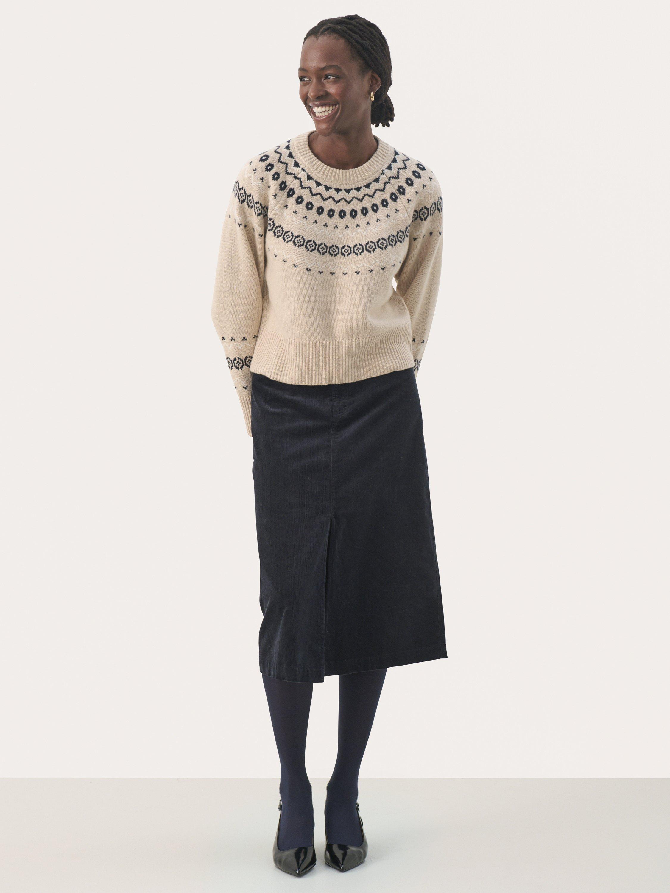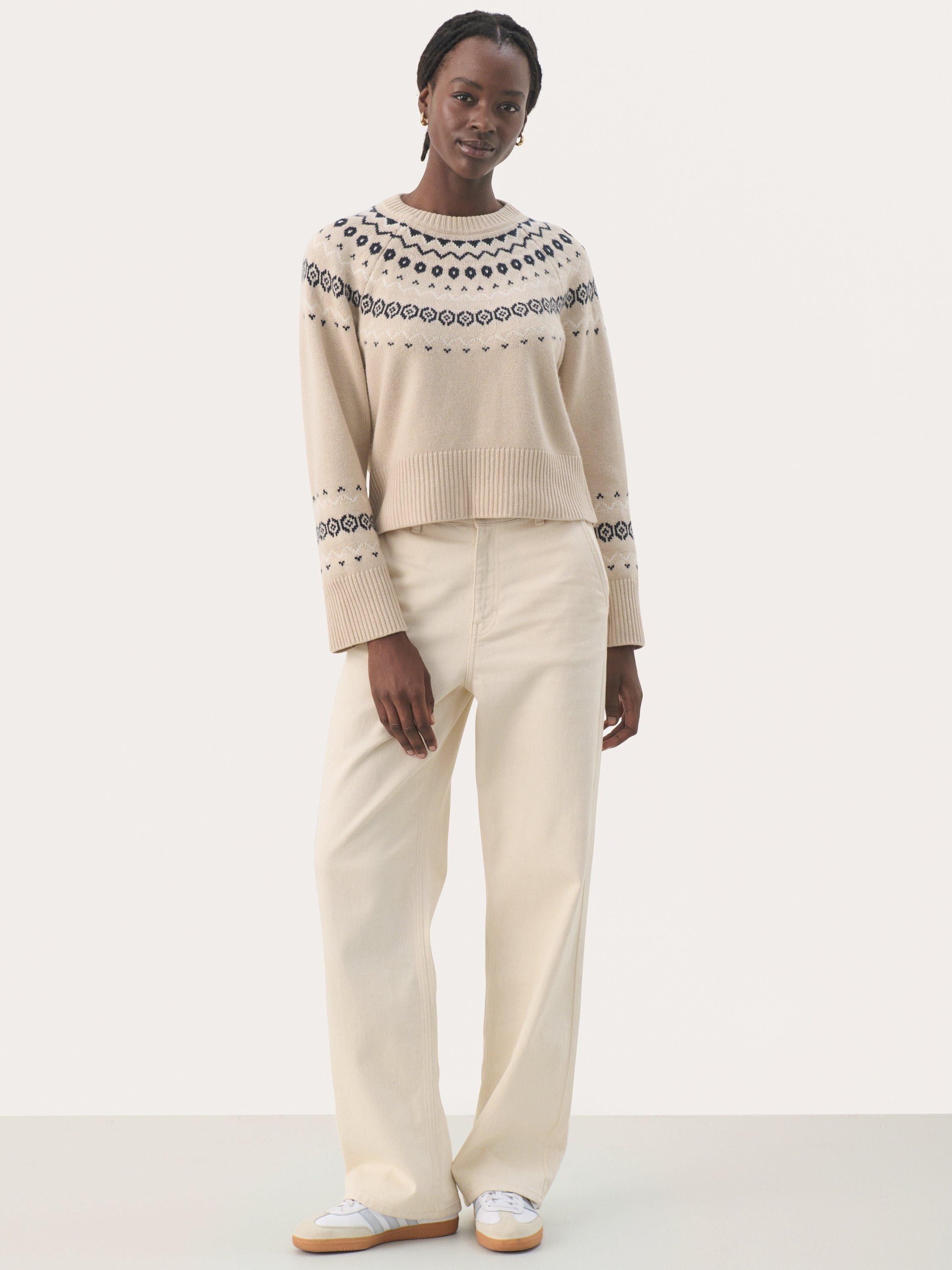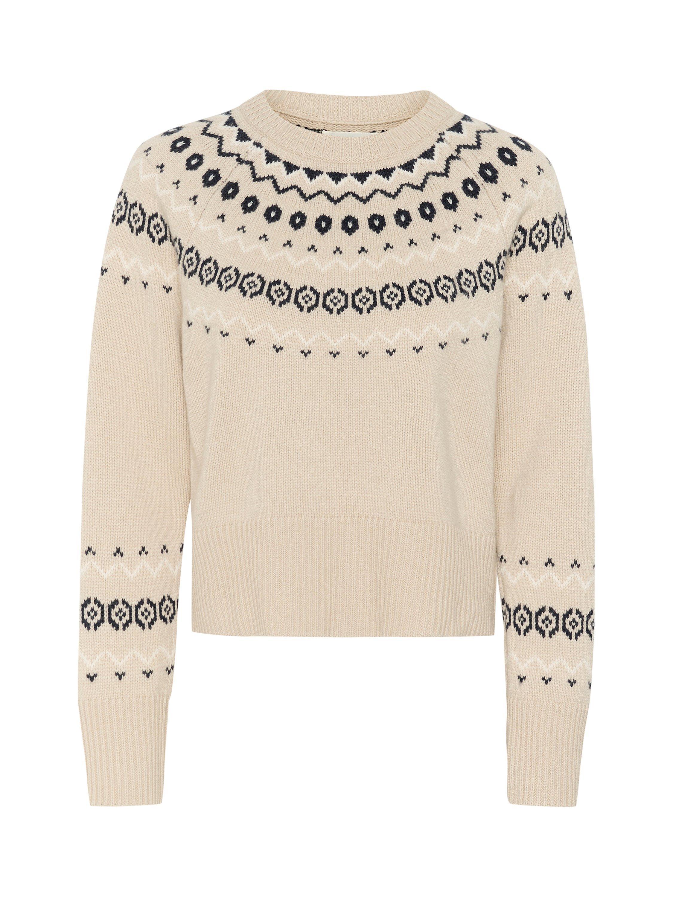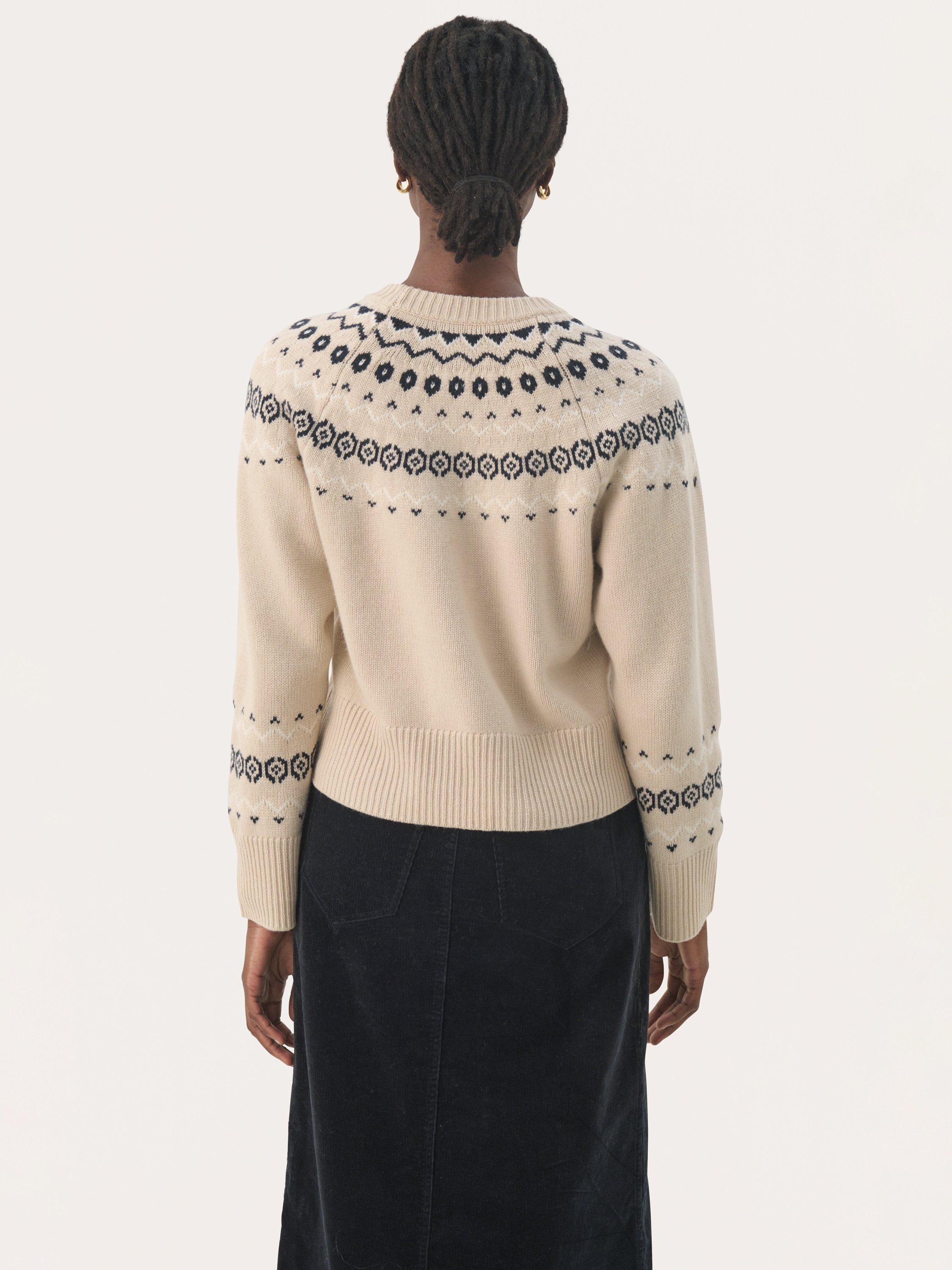 The Laney pullover is a casual and cosy style, and it is the perfect addition to your wardrobe this season. It has a round neck and a loose fit, and it is made with a lovely argyle print. The sleeves are long and wide raglan sleeves, and the pullover has rib knit edges.