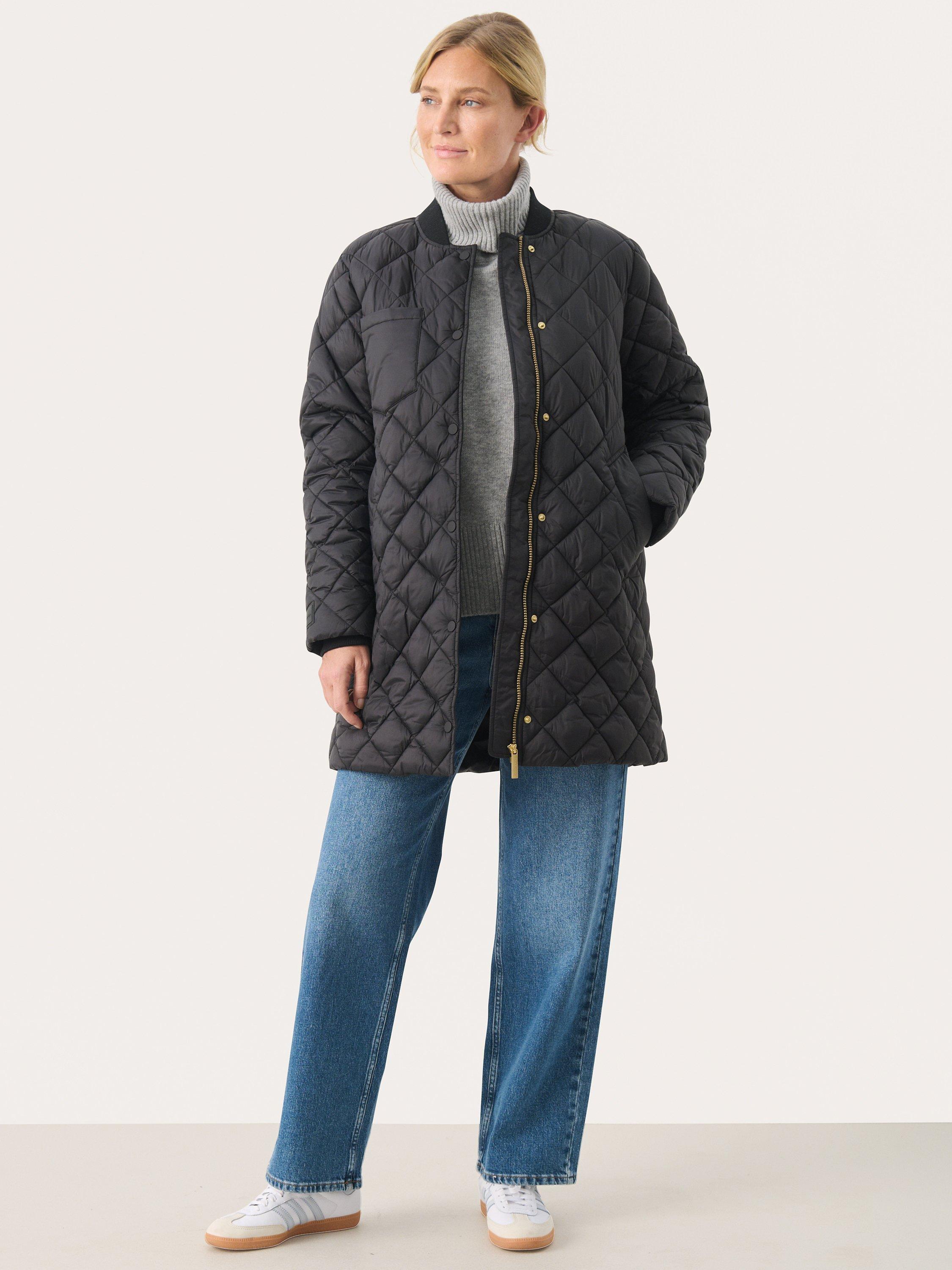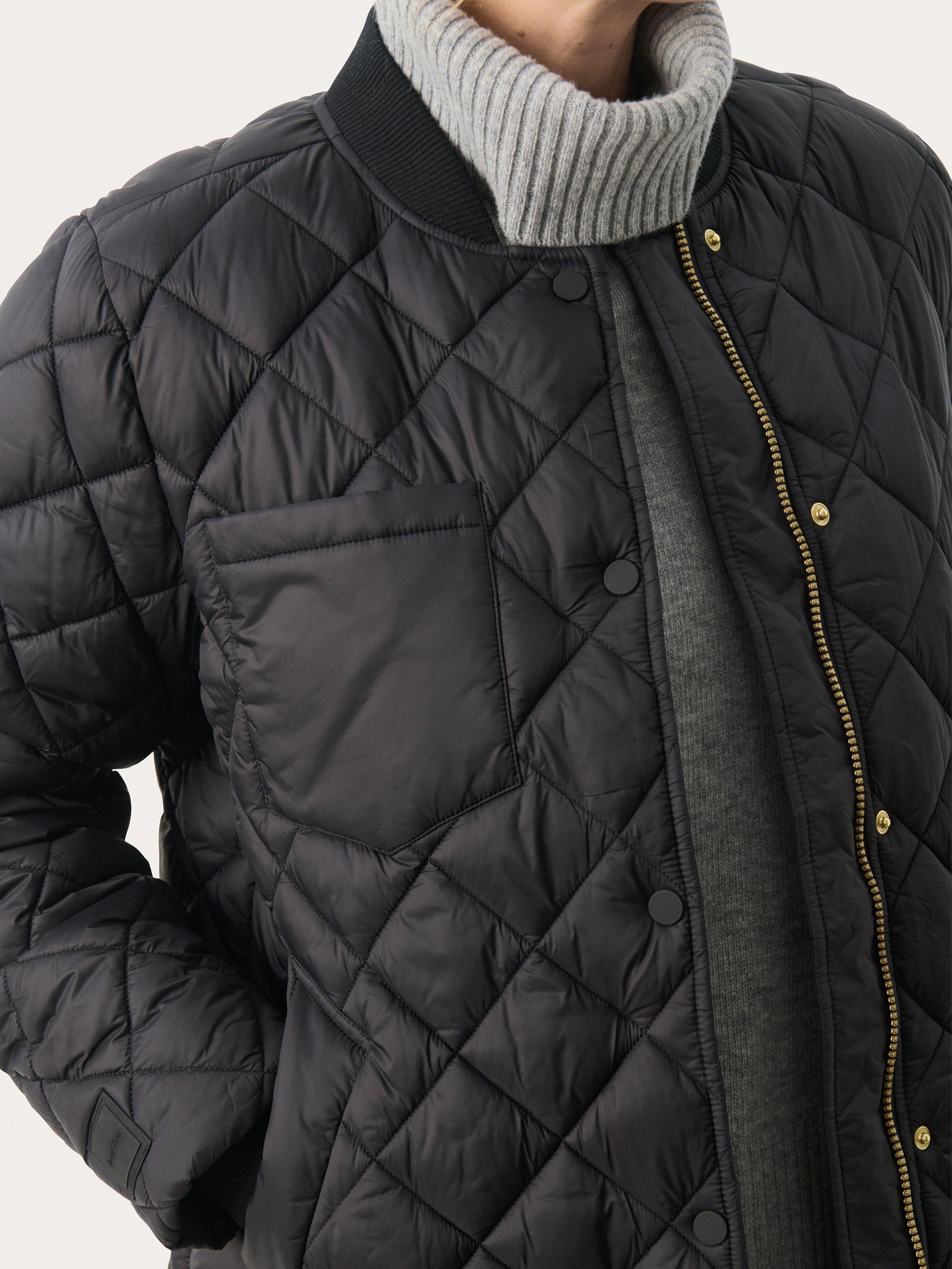 The Lucca jacket is a simple and casual piece of outerwear. It is quilted in a classic, diamond shaped pattern, and it has button fastening. The sleeves are long and gathered in a rib cuff, and the jacket has a rib collar. It is cut below the hips, and it has slanted front pocket and a patch chest pocket.